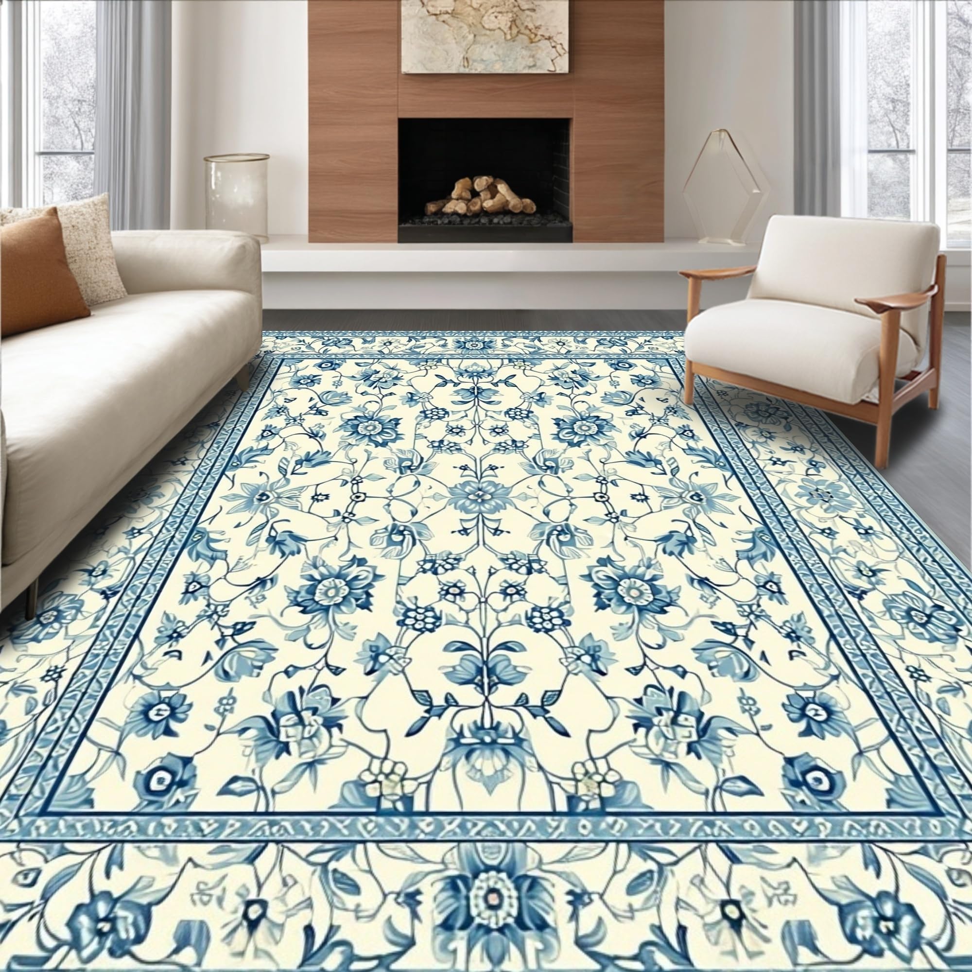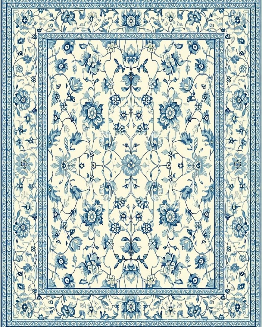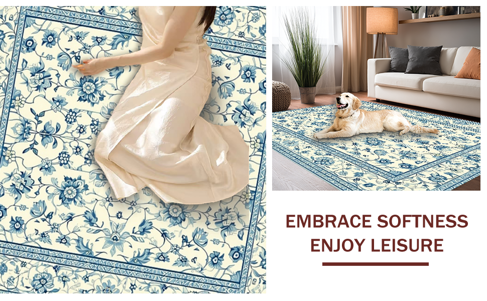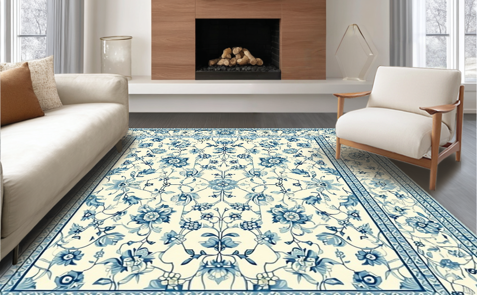 Ultra Soft Area Rug, Non Slip, Stain Resistant, Washable Area Rugs for Living Room, Bedroom, Cozy Floral Ogee Inspiration(Beige) Overview: