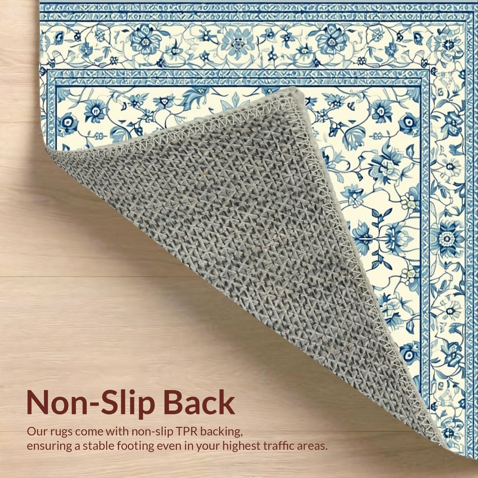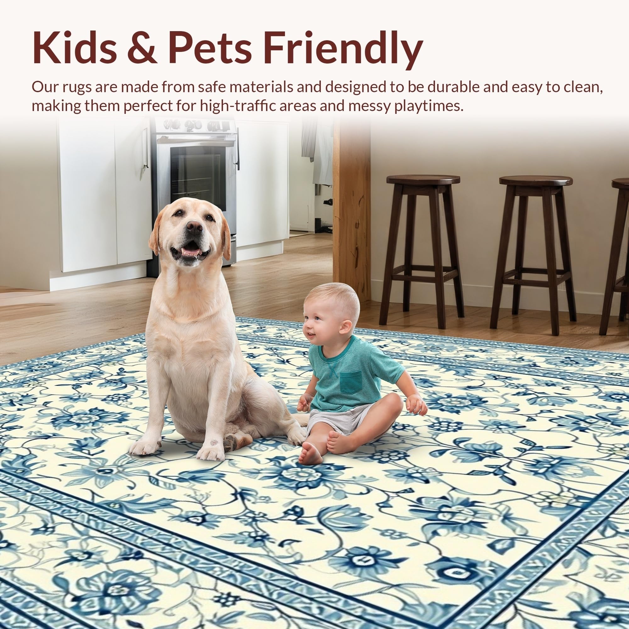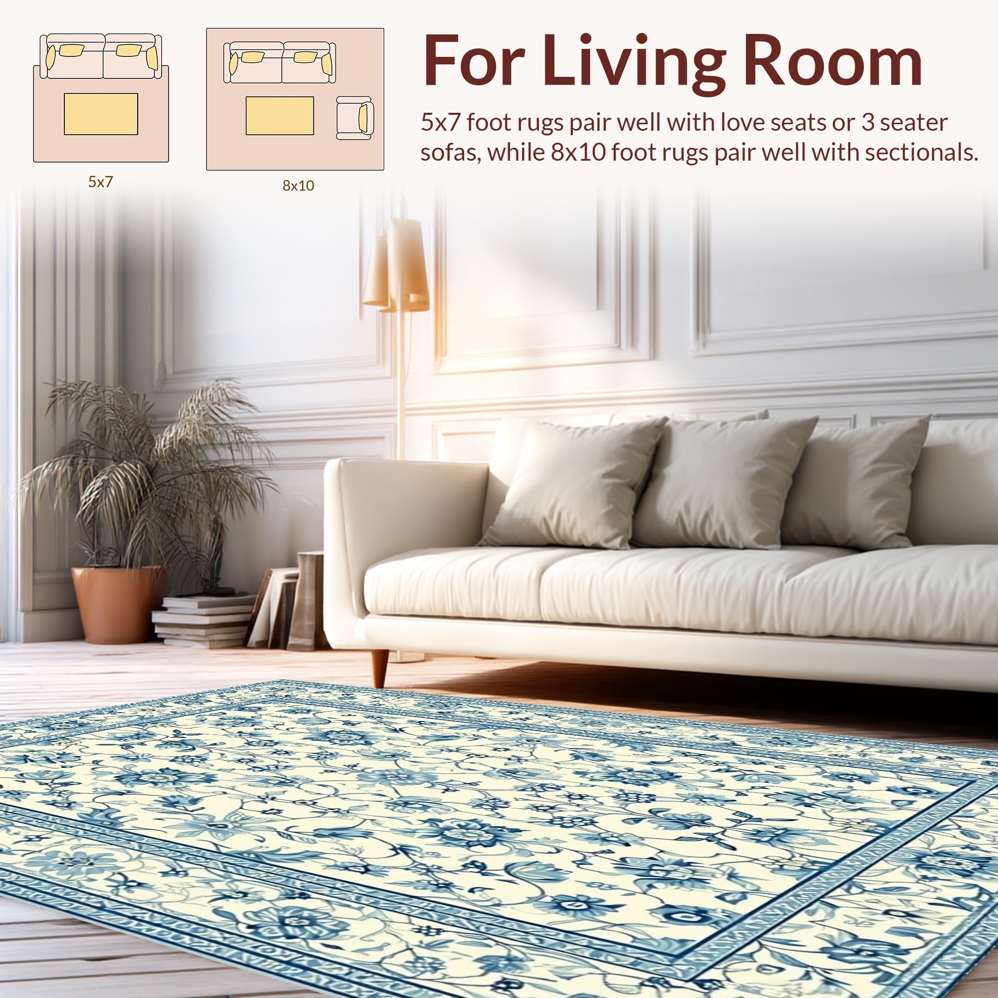 Ultra Soft Area Rug, Non Slip, Stain Resistant, Washable Area Rugs for Living Room, Bedroom, Cozy Floral Ogee Inspiration(Beige) Overview: