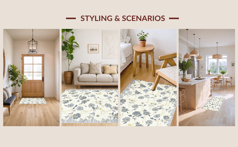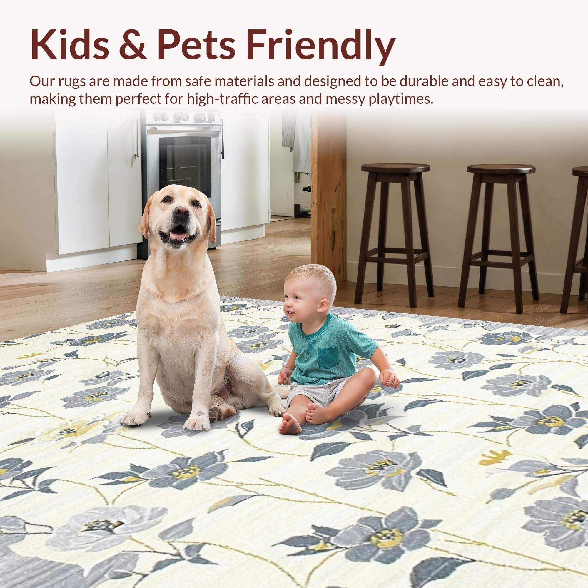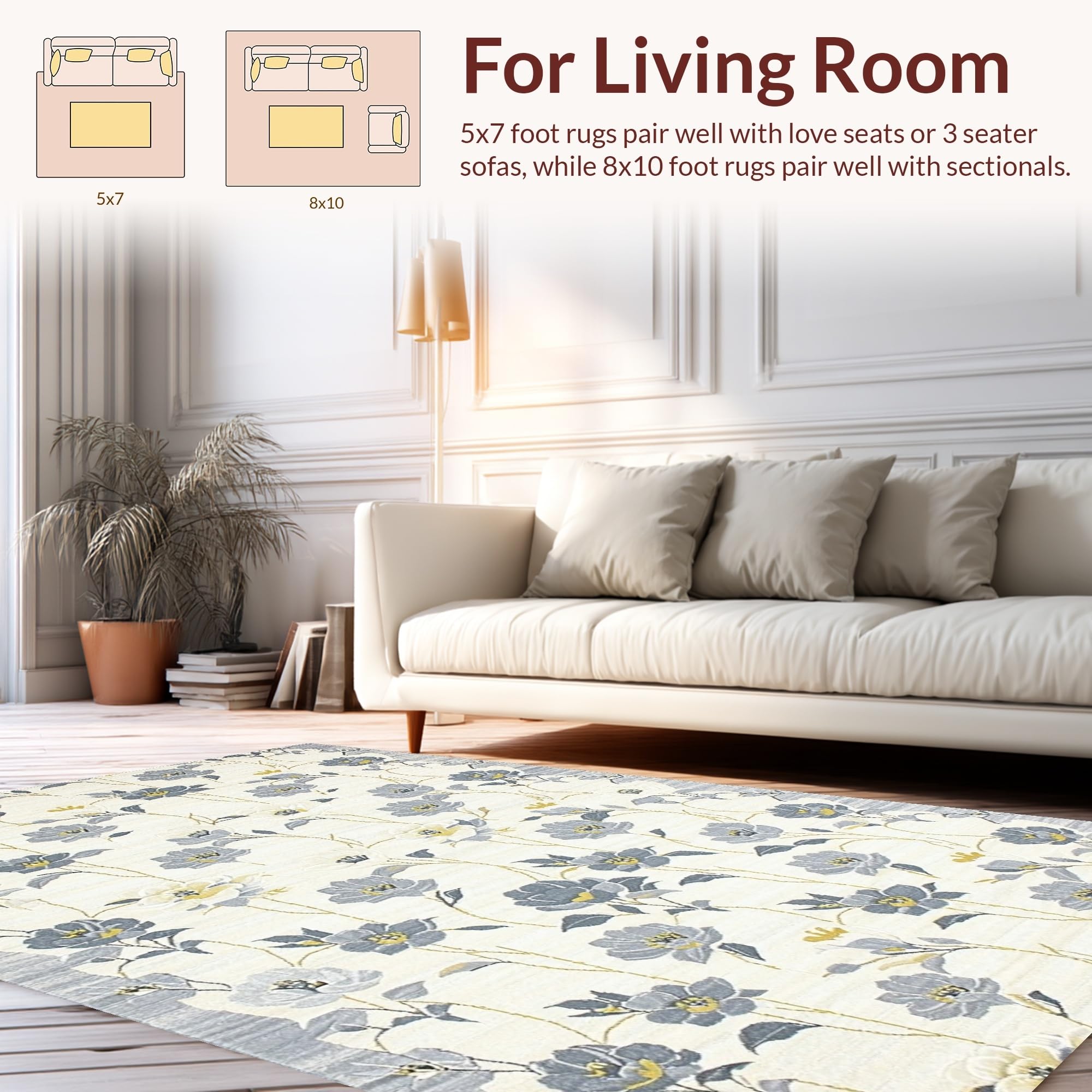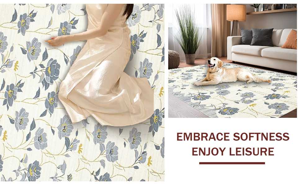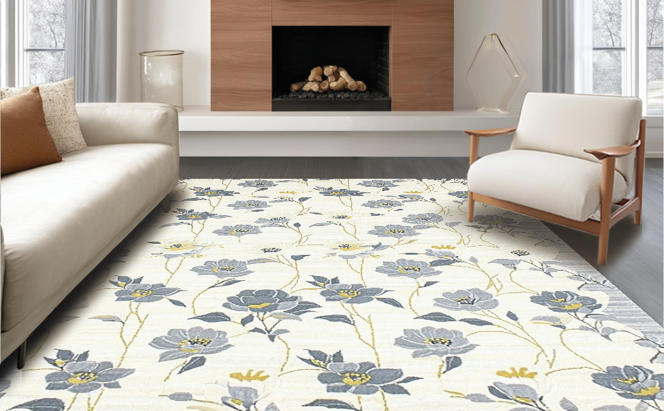 Ultra Soft Area Rug, Non Slip, Stain Resistant, Washable Area Rugs for Living Room, Bedroom, Cozy Floral Texture Display(Beige) Overview: