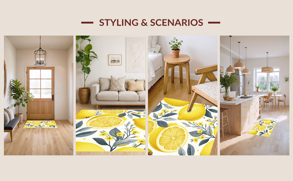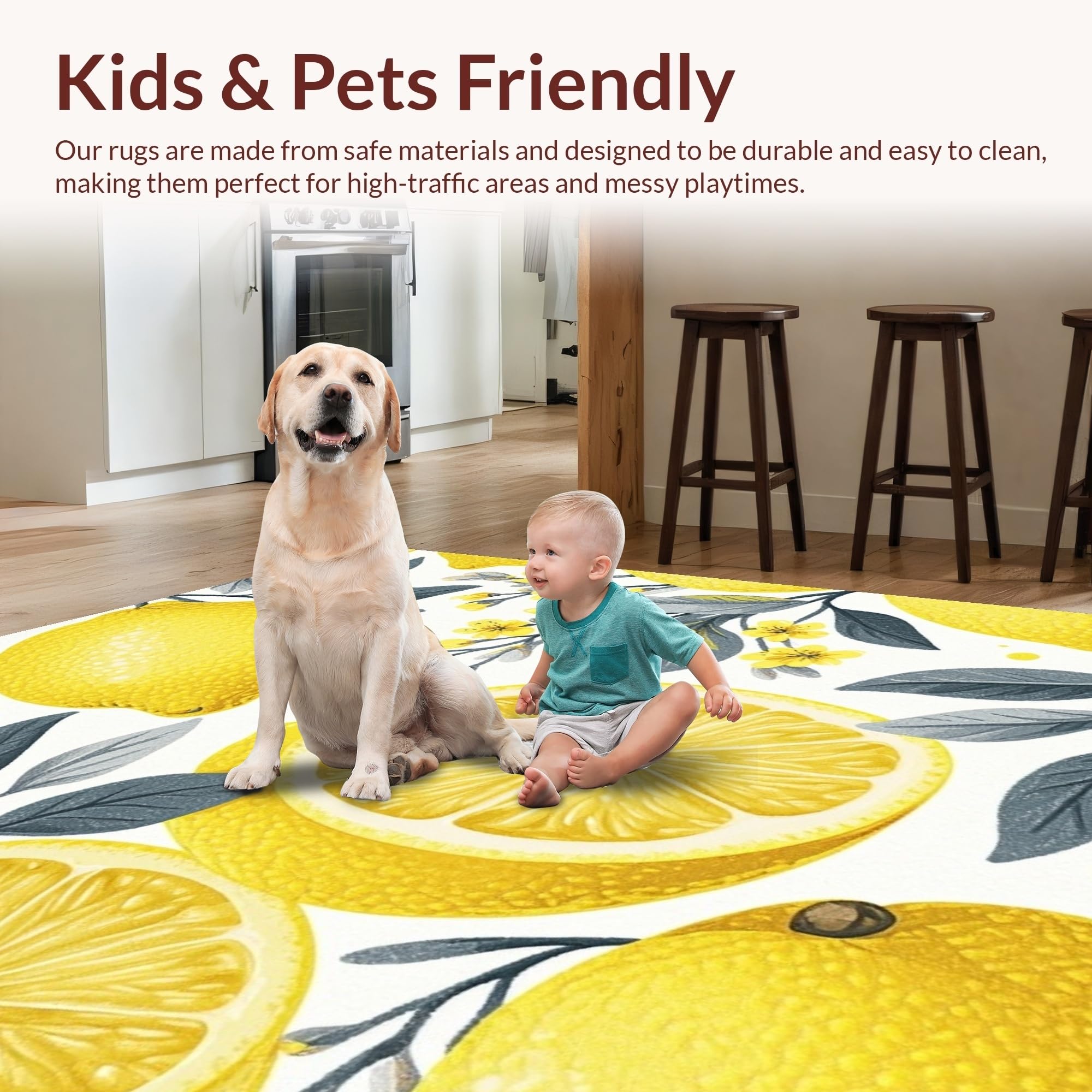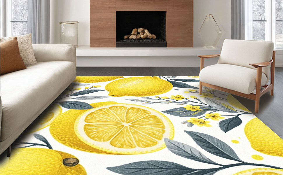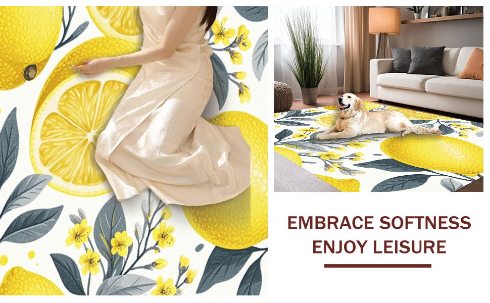 Ultra Soft Area Rug, Non Slip, Stain Resistant, Washable Area Rugs for Living Room, Bedroom, Cozy Gather Together Motif(Yellow) Overview: