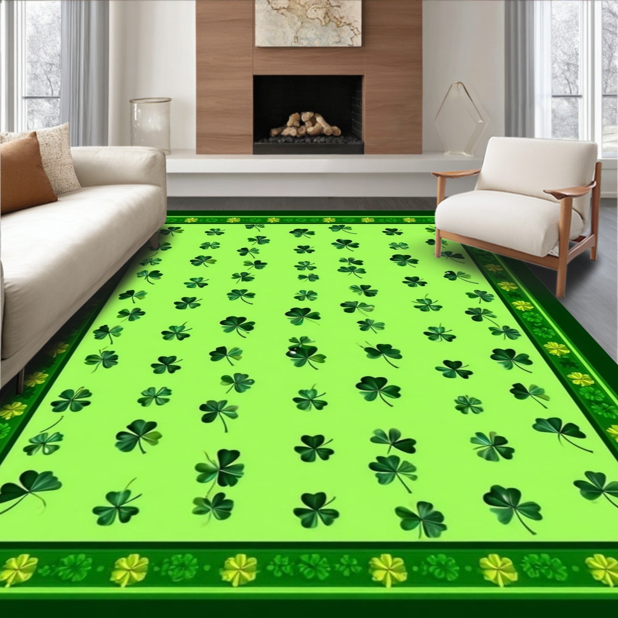 Flatwoven High Traffic Area Rug, Gnome Festive Arrangement, Non Slip, Stain Resistant, Washable Area Rugs for Living Room, Bedroom (Green) Overview: