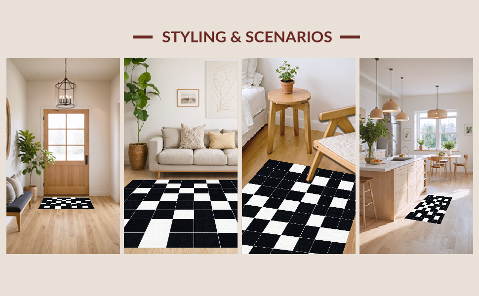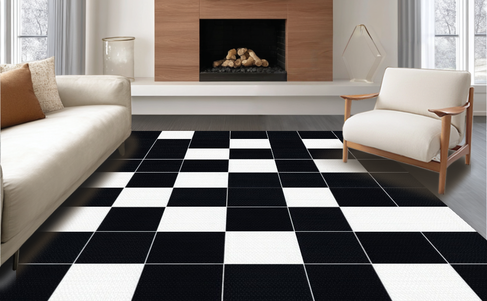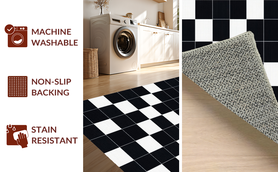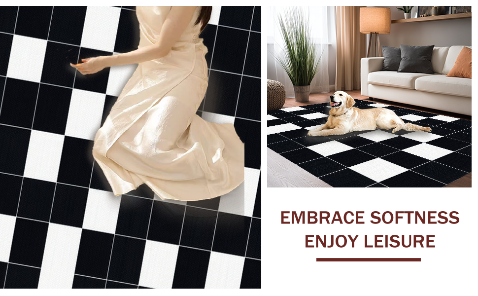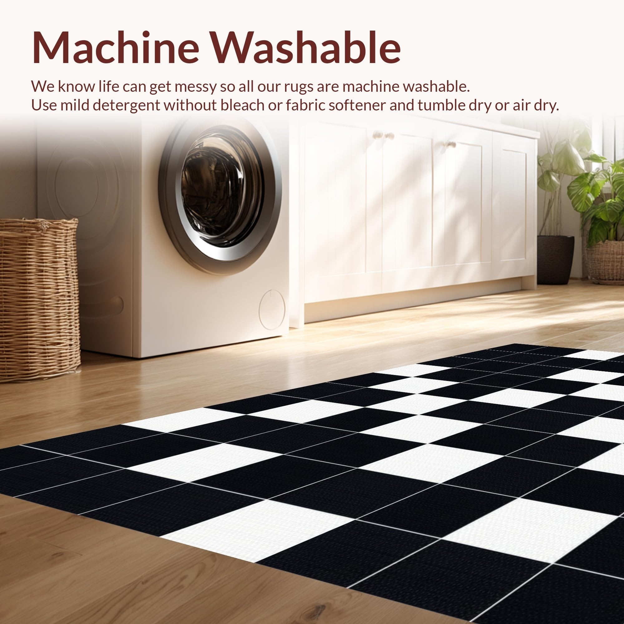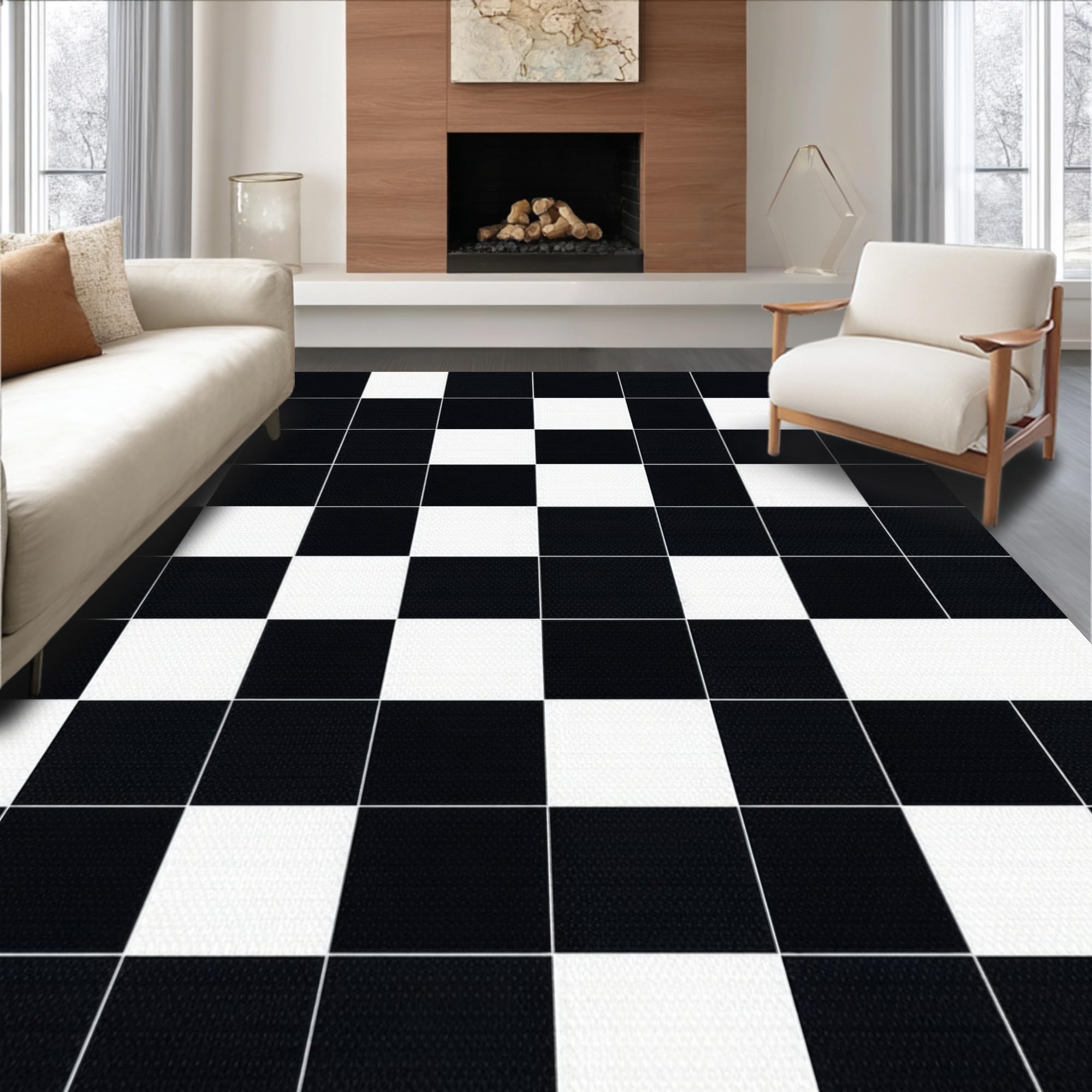 Ultra Soft Area Rug, Non Slip, Stain Resistant, Washable Area Rugs for Living Room, Bedroom, Cozy Gray and White Checker Design(Black) Overview: