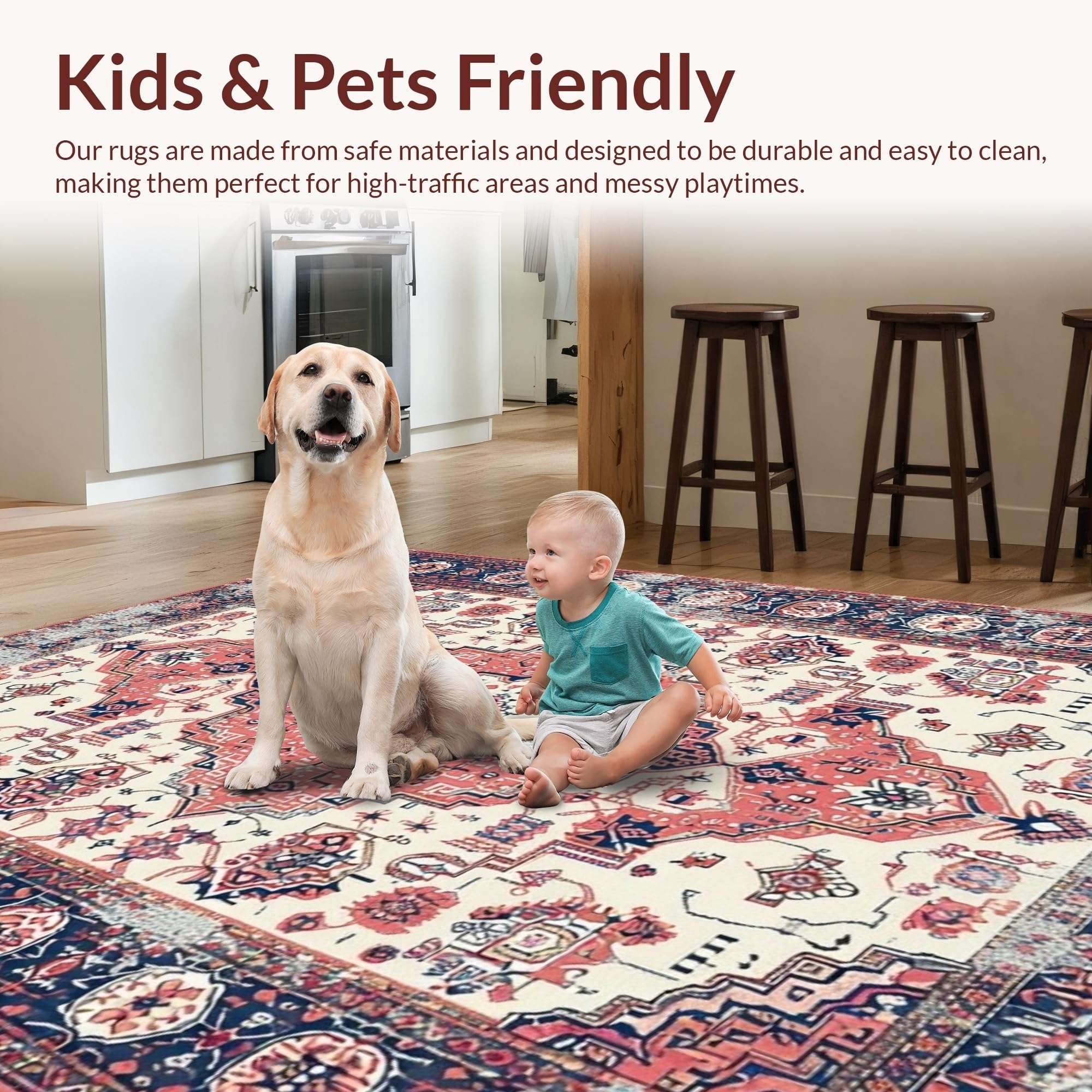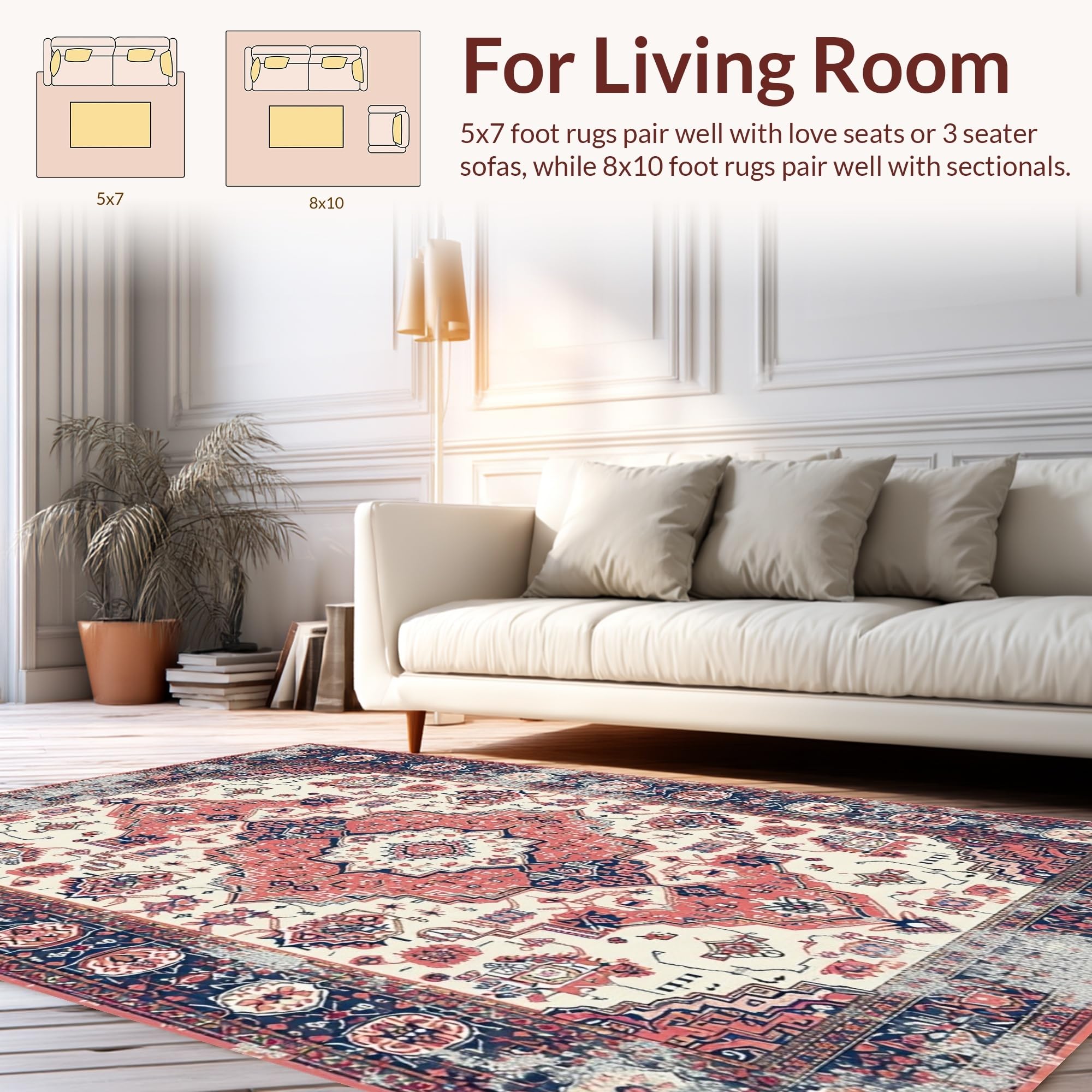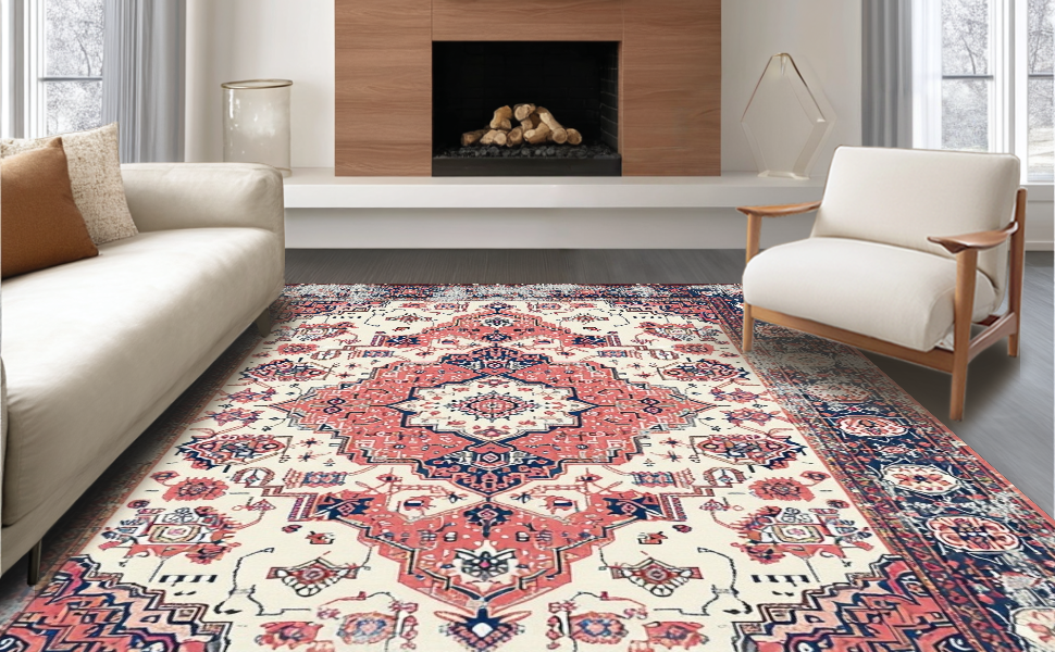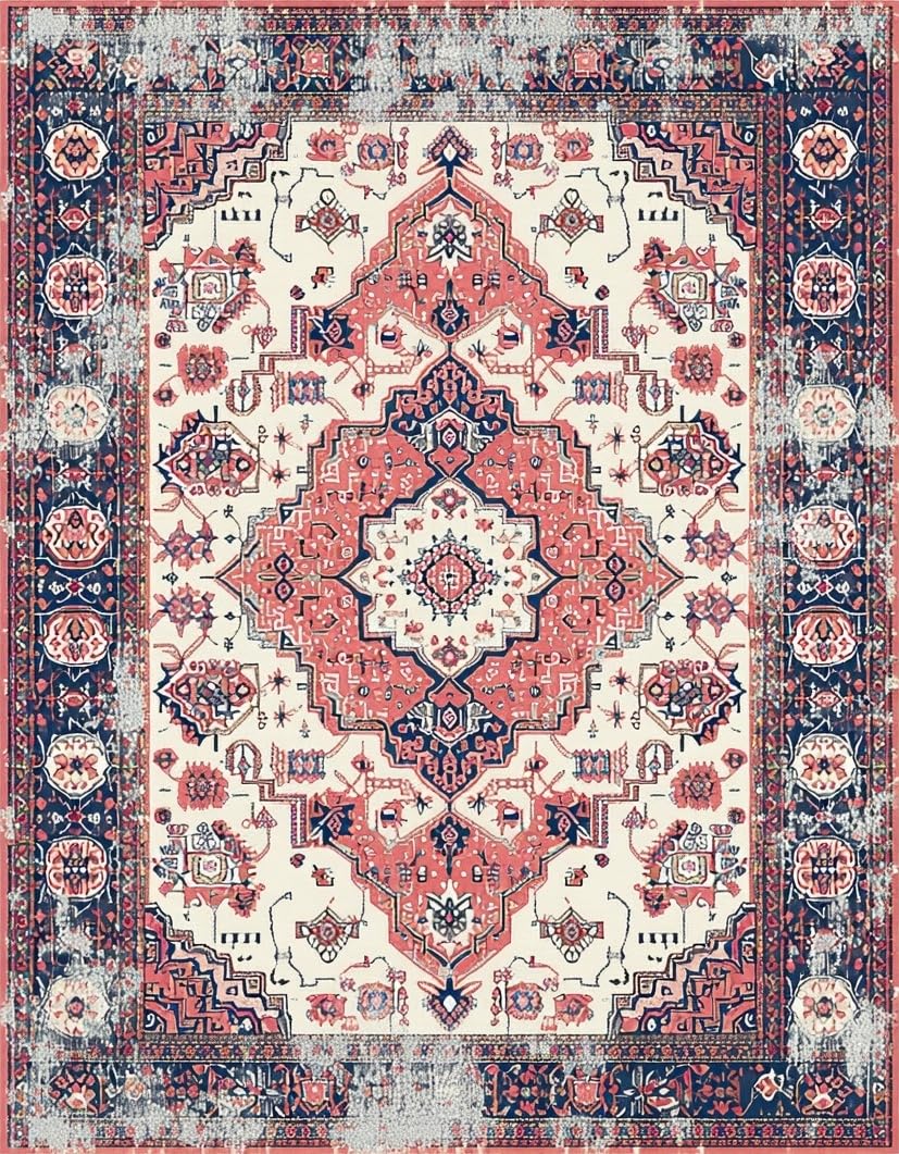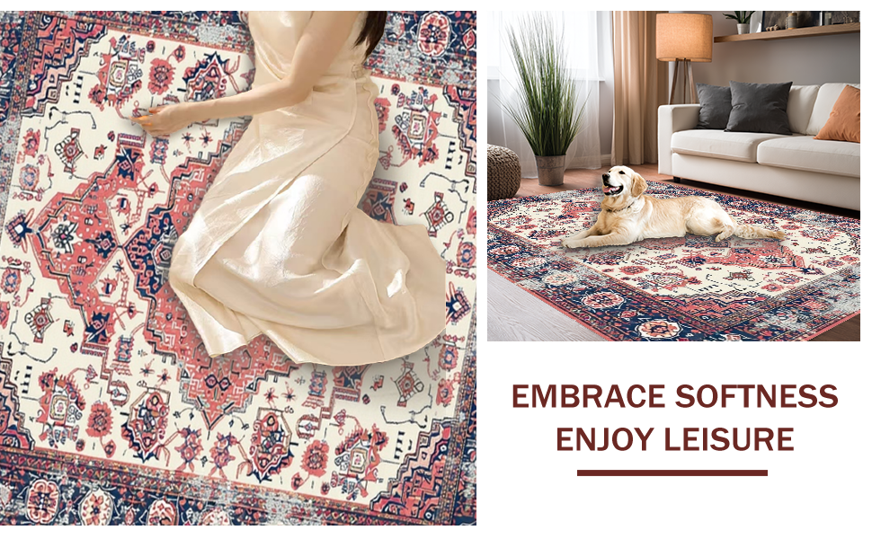 Ultra Soft Area Rug, Non Slip, Stain Resistant, Washable Area Rugs for Living Room, Bedroom, Cozy Ink and Salmon Visual Harmony(Red) Overview: