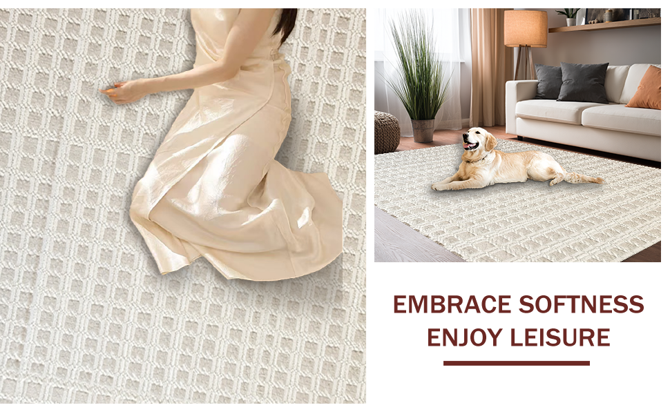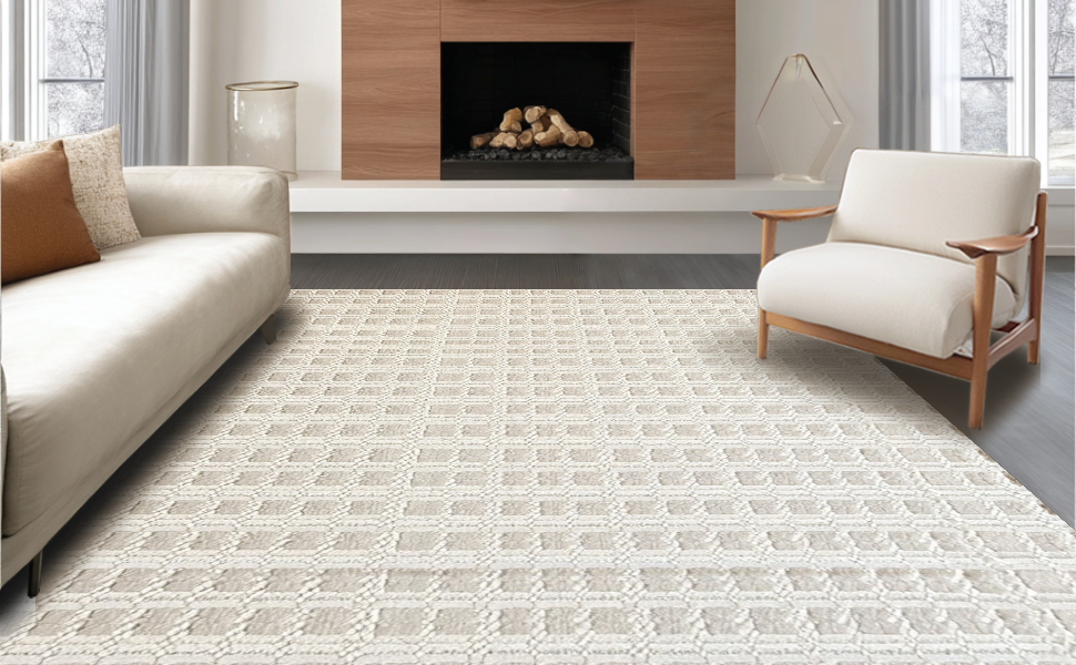 Ultra Soft Area Rug, Non Slip, Stain Resistant, Washable Area Rugs for Living Room, Bedroom, Cozy Ivory Trellis Pattern(Beige) Overview: