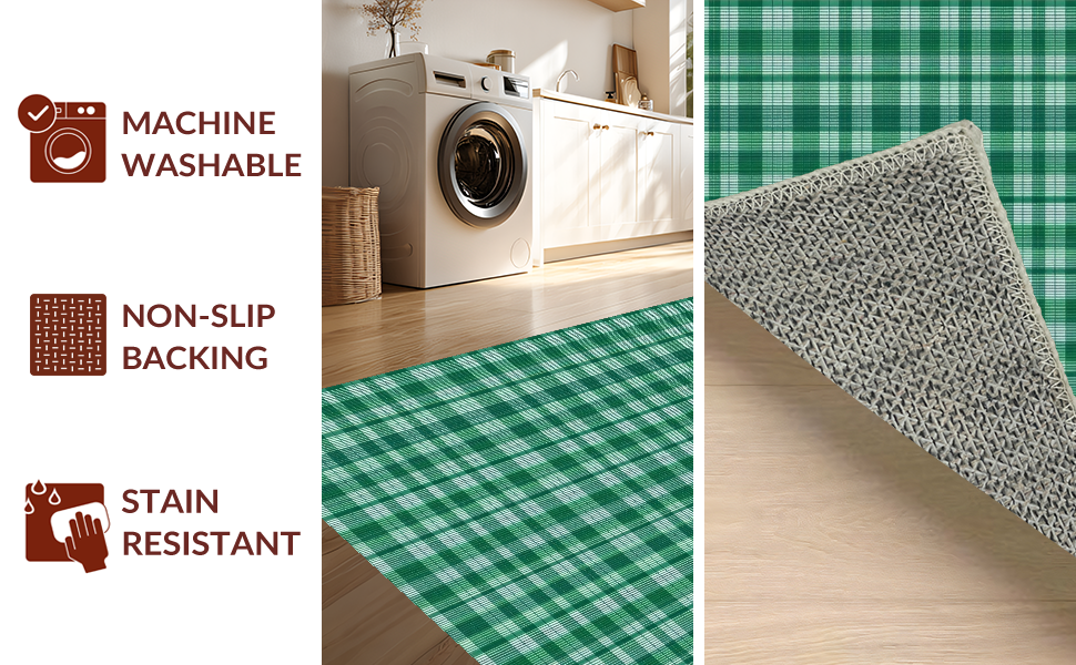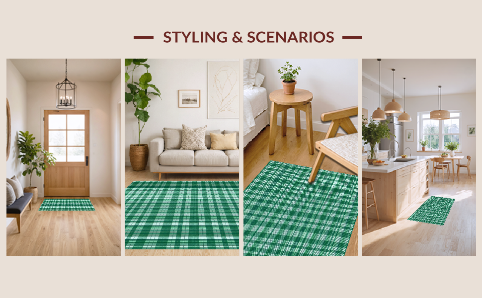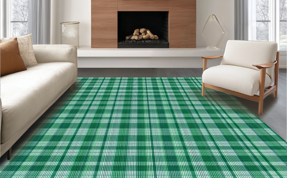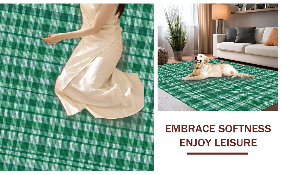 Ultra Soft Area Rug, Non Slip, Stain Resistant, Washable Area Rugs for Living Room, Bedroom, Cozy Layered Check Pattern(Green) Overview: