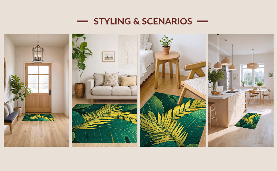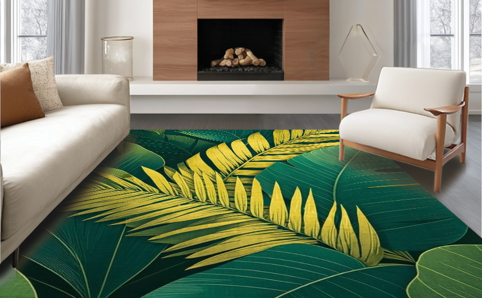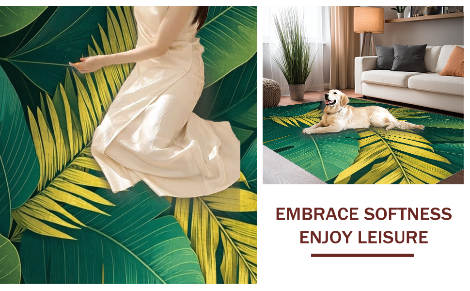 Ultra Soft Area Rug, Non Slip, Stain Resistant, Washable Area Rugs for Living Room, Bedroom, Cozy Leafy Decorative Accent(Green) Overview: