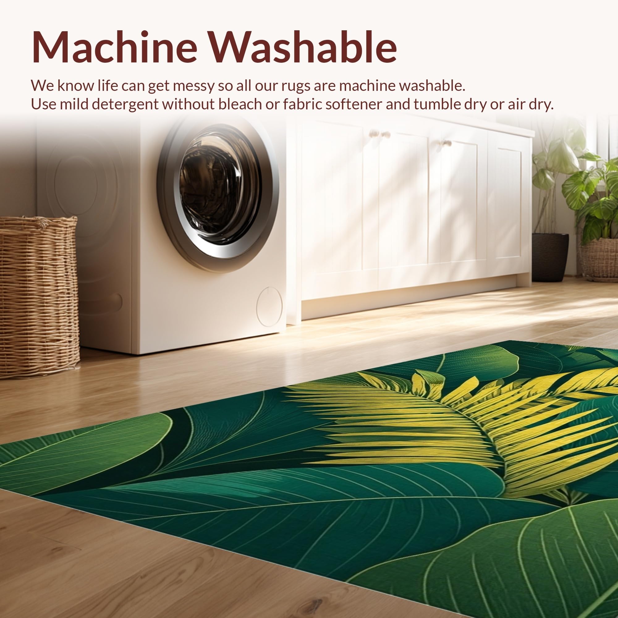 - Machine Washable: Our rugs can be easily thrown in the wash machine.