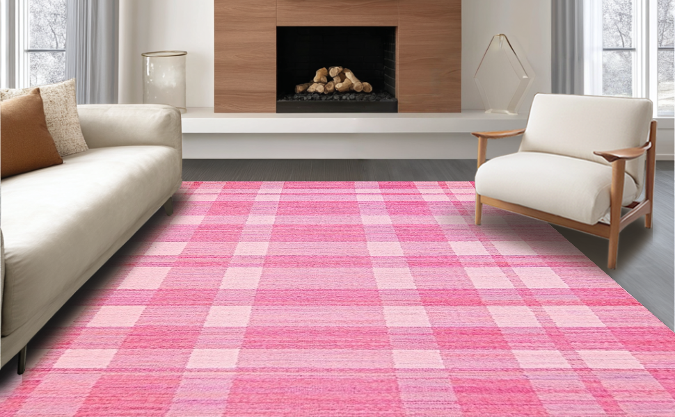 Ultra Soft Area Rug, Non Slip, Stain Resistant, Washable Area Rugs for Living Room, Bedroom, Cozy Light Pink Lattice Appeal(Pink) Overview: