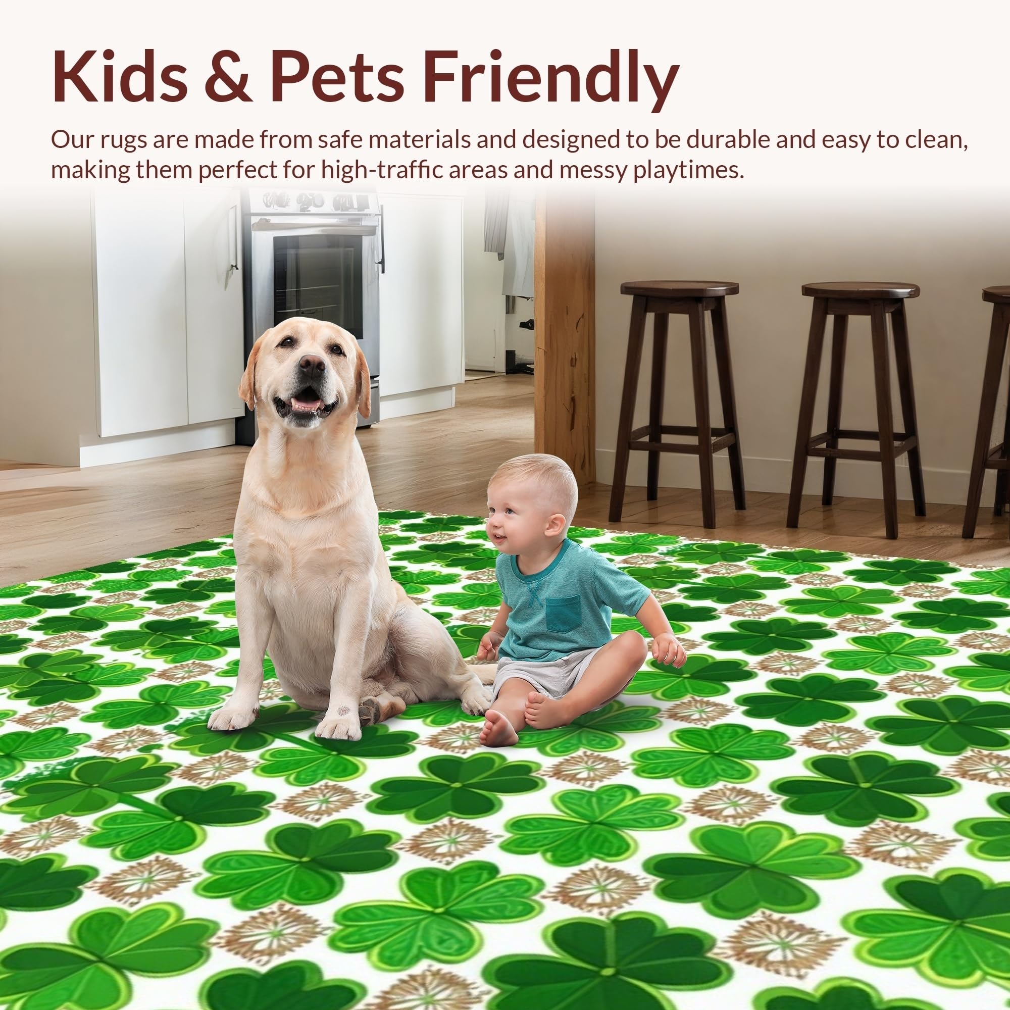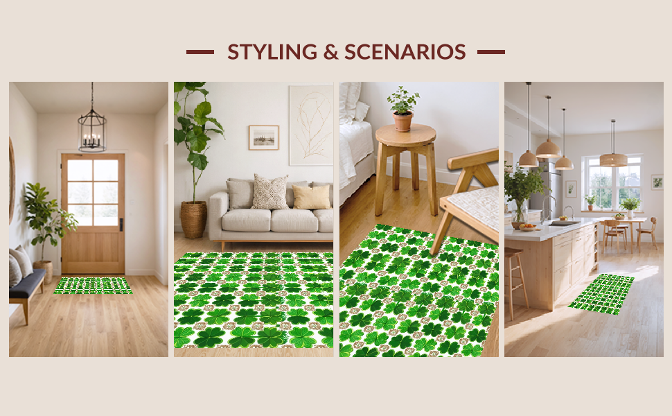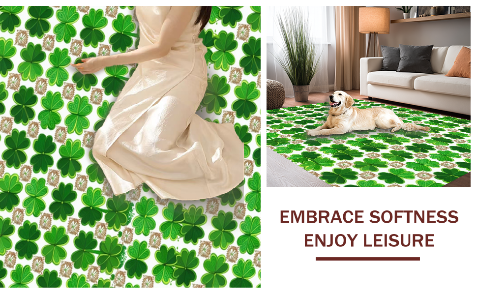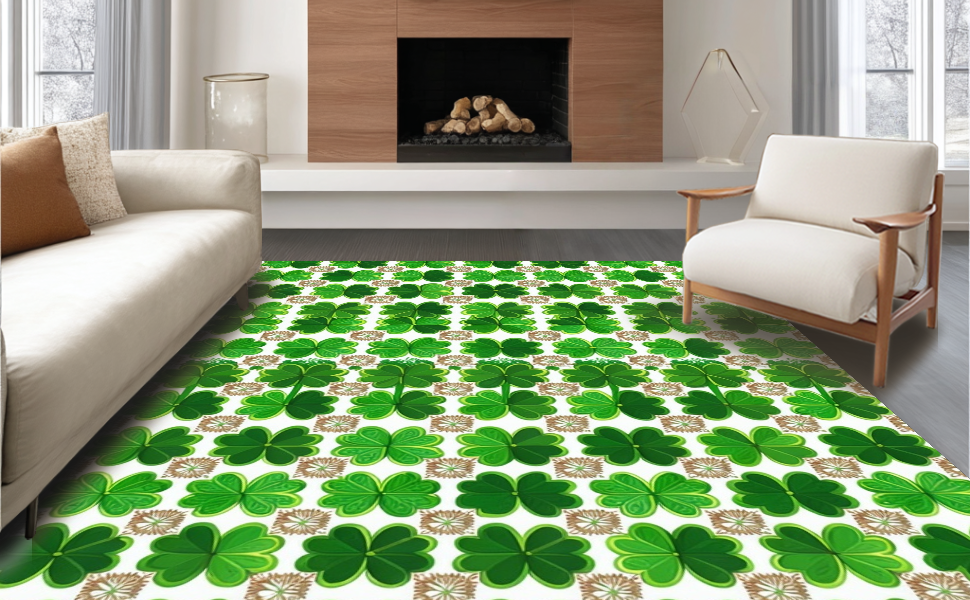 Ultra Soft Area Rug, Non Slip, Stain Resistant, Washable Area Rugs for Living Room, Bedroom, Cozy Lucky Clover Pattern(Green) Overview: