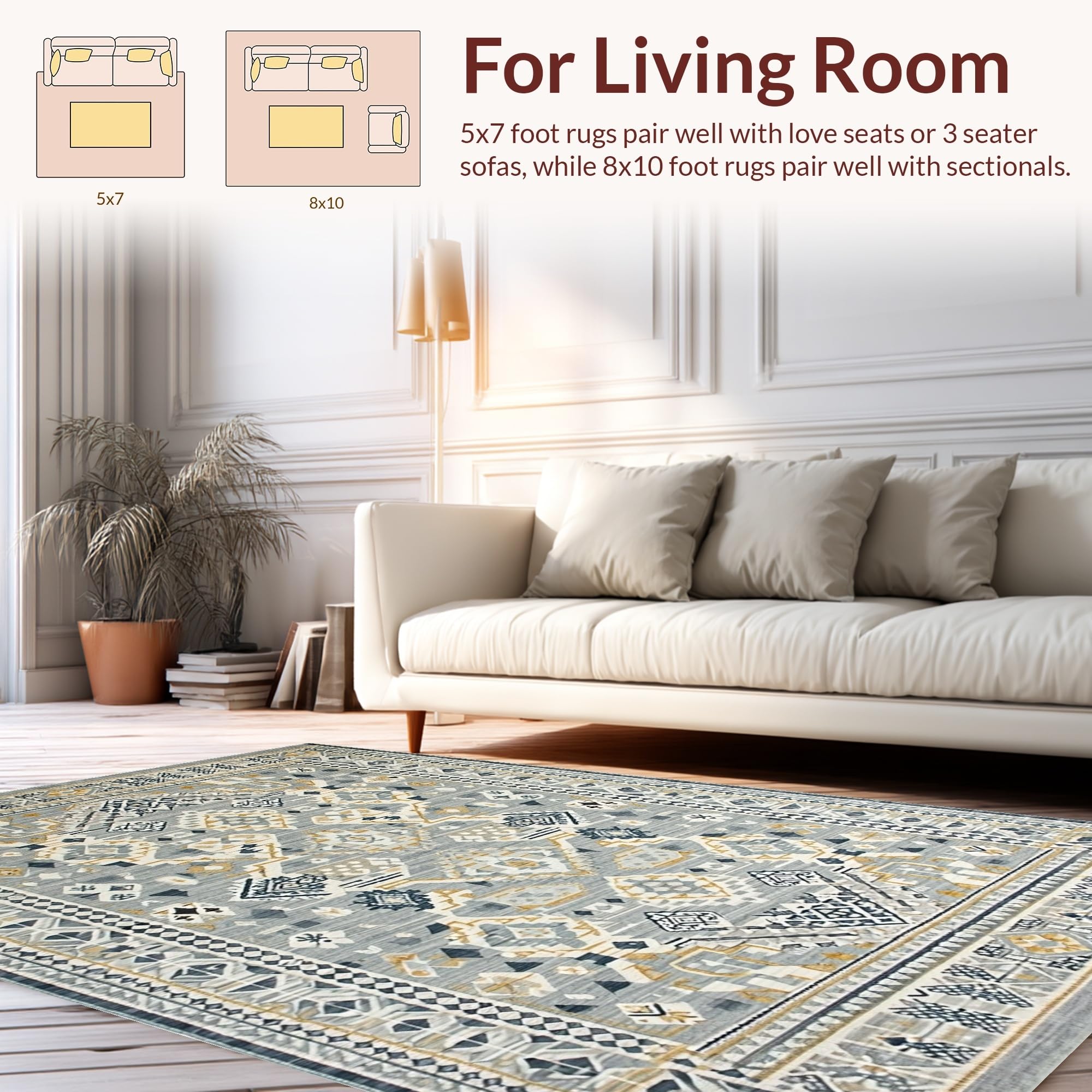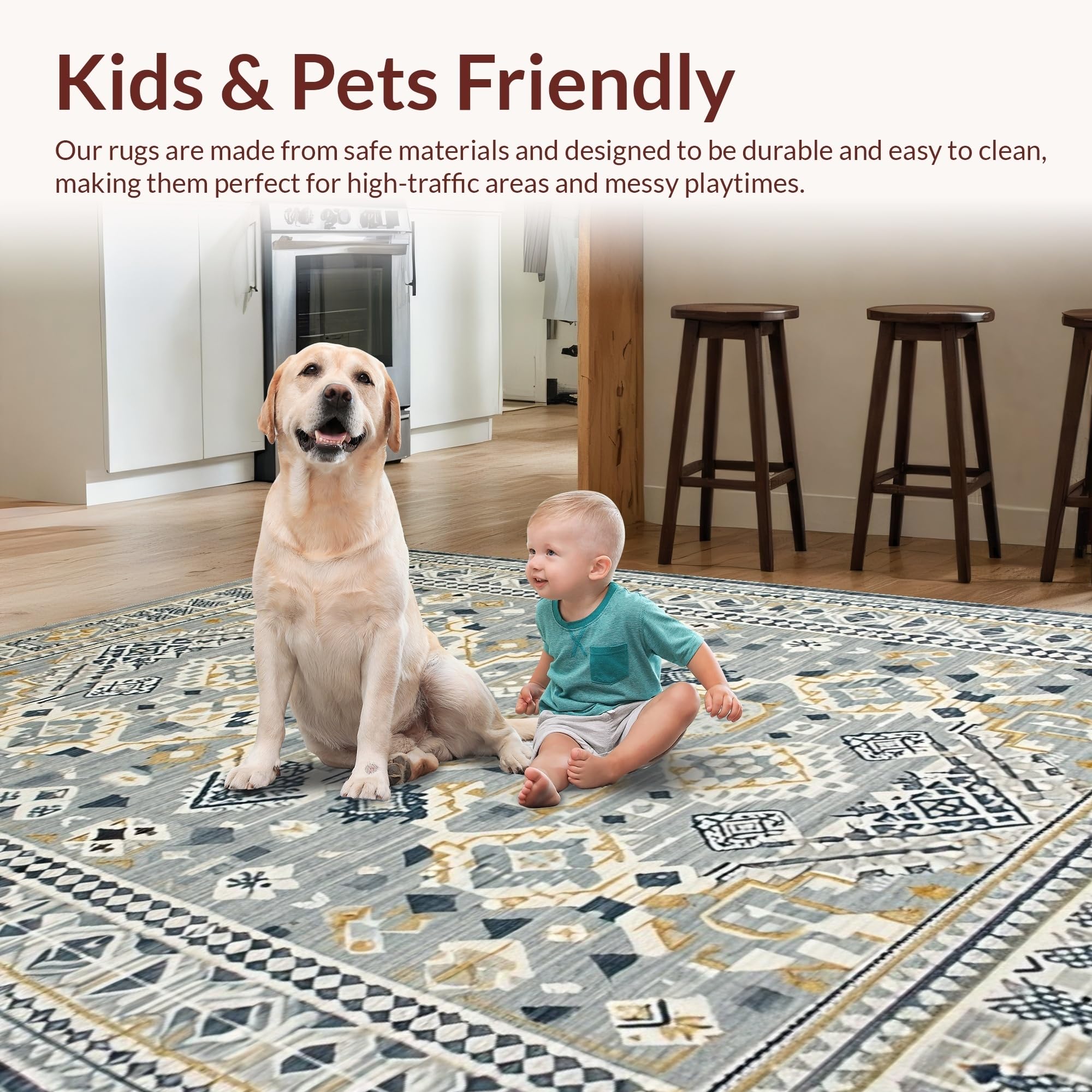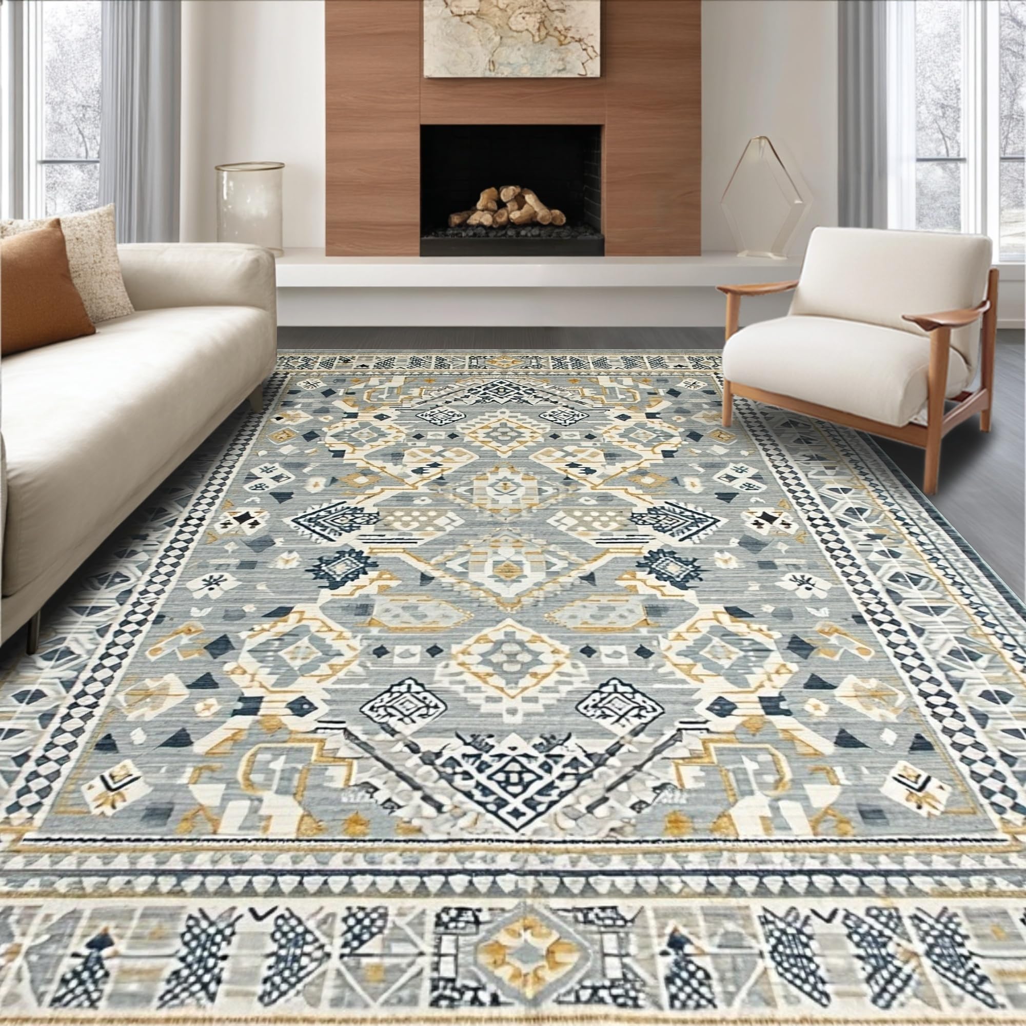 Ultra Soft Area Rug, Non Slip, Stain Resistant, Washable Area Rugs for Living Room, Bedroom, Cozy Minimalist Grey Layers(Gray) Overview: