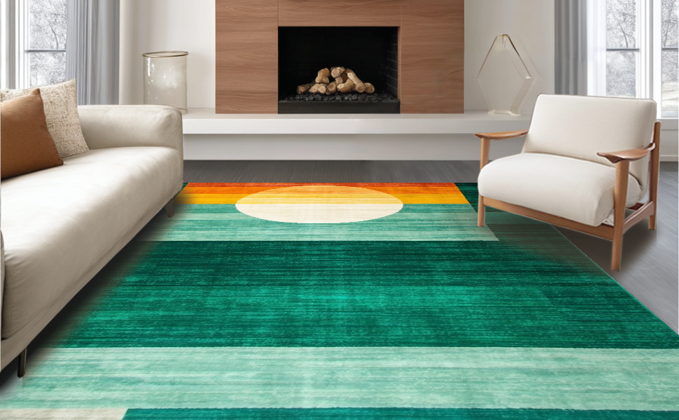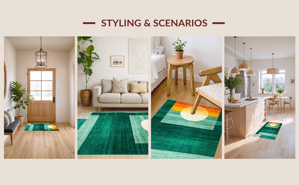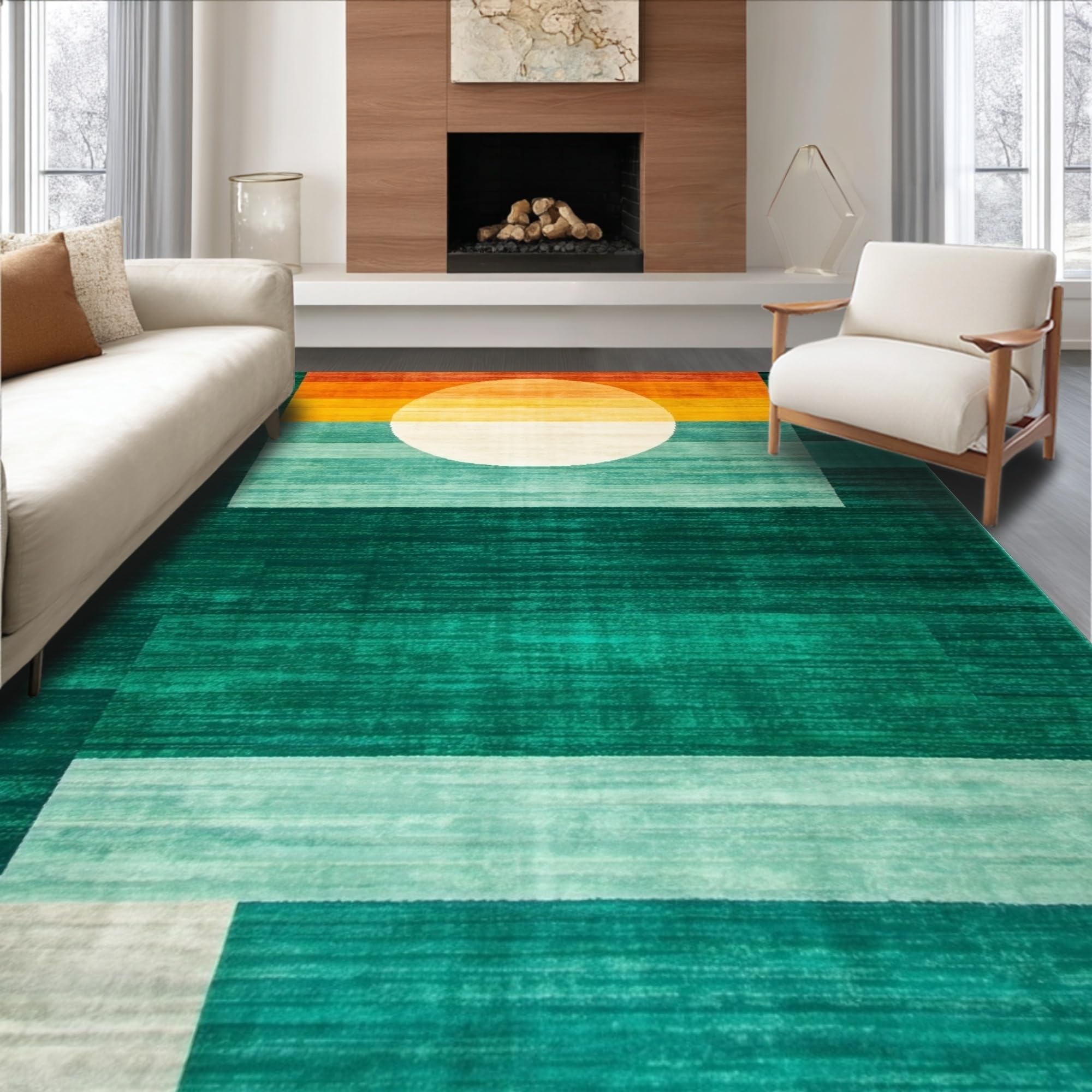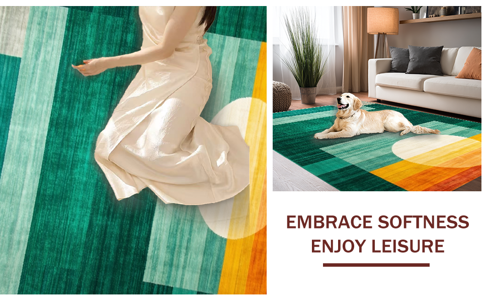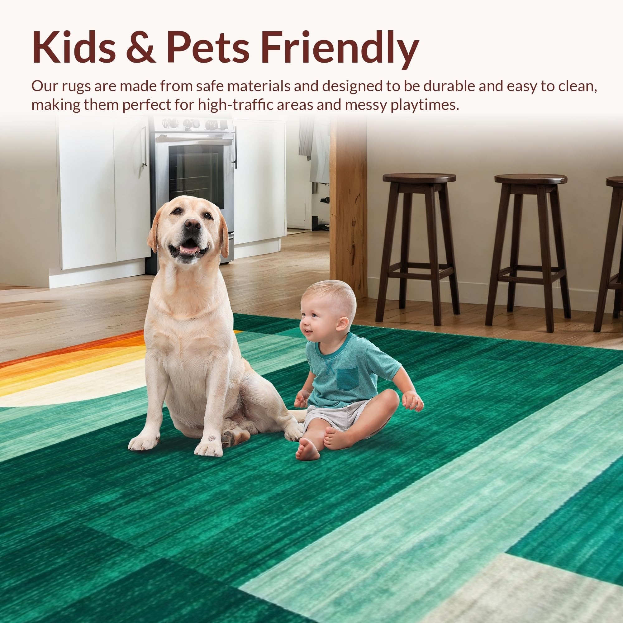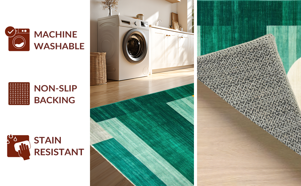 Ultra Soft Area Rug, Non Slip, Stain Resistant, Washable Area Rugs for Living Room, Bedroom, Cozy Minimalist Tiled Motif(Green) Overview: