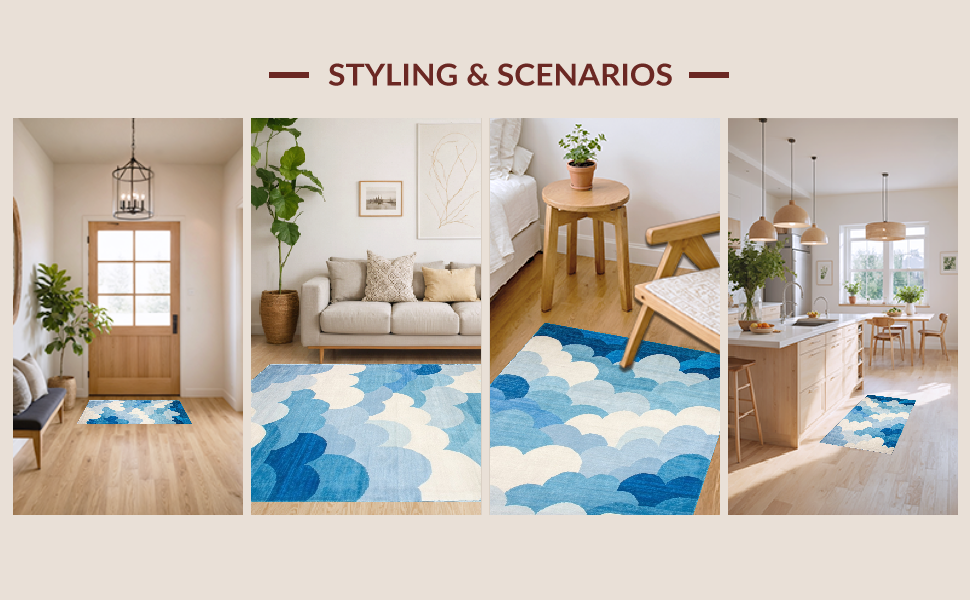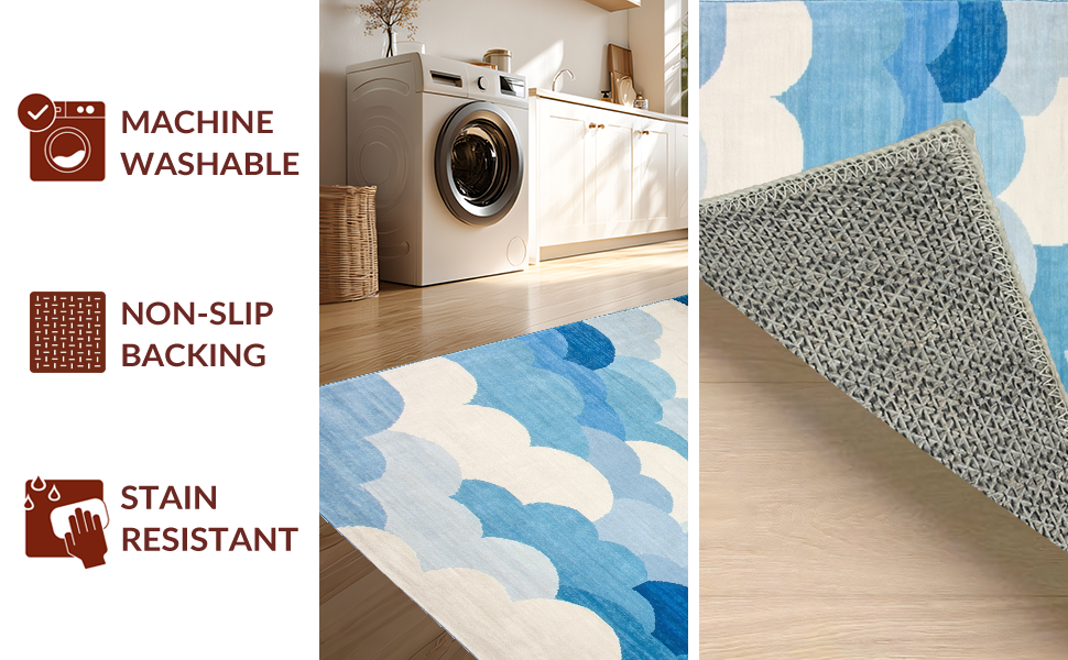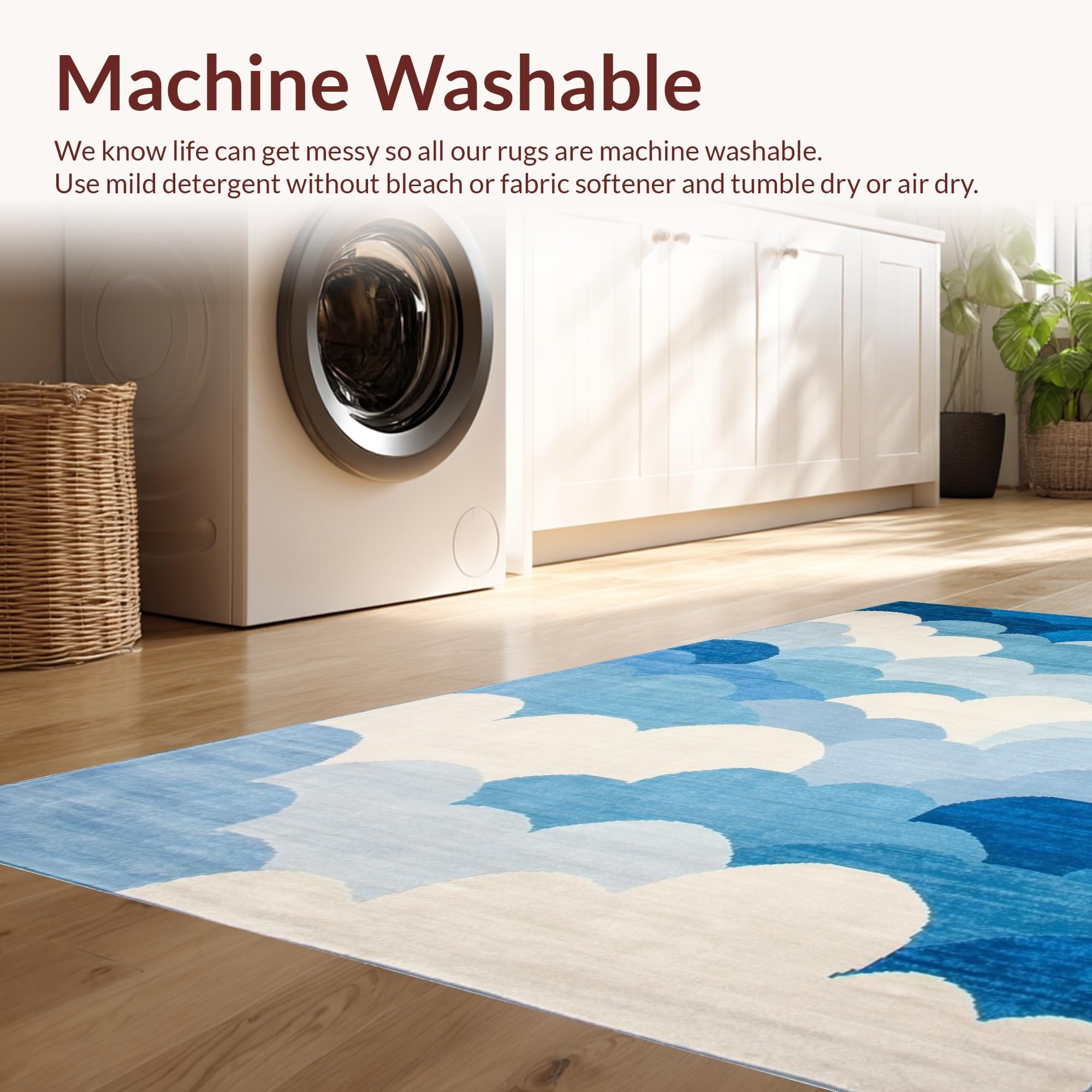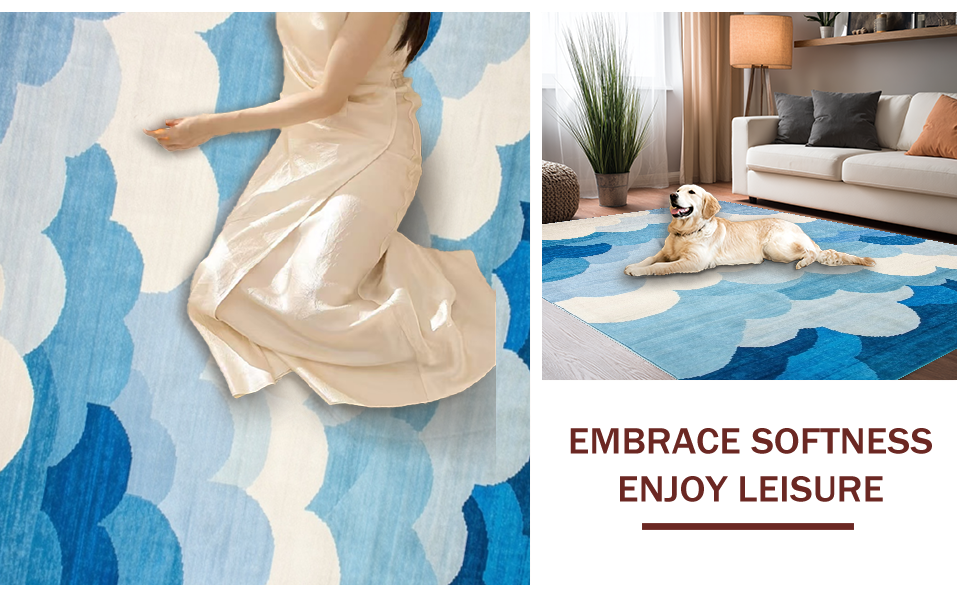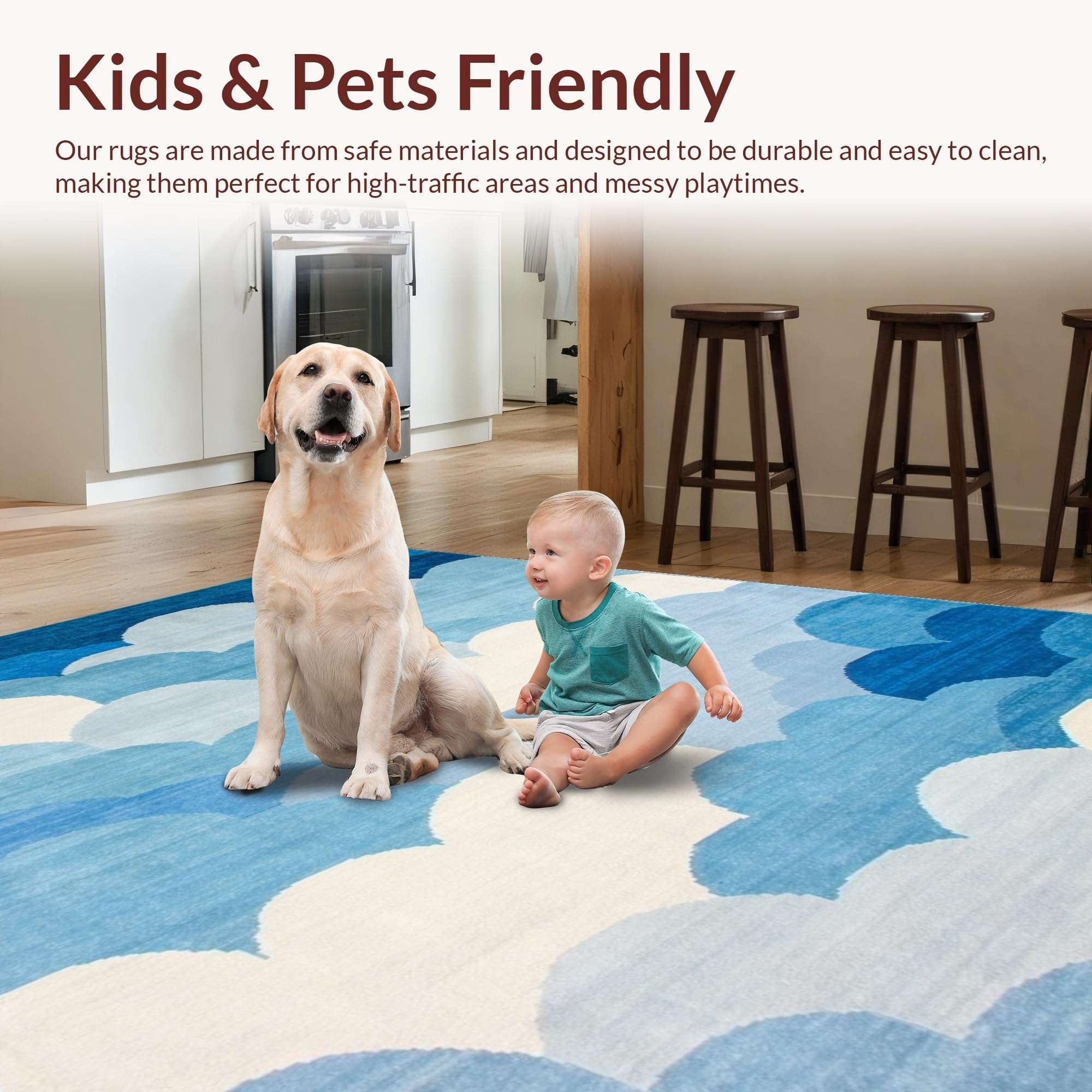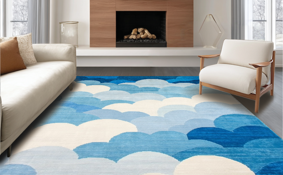 Ultra Soft Area Rug, Non Slip, Stain Resistant, Washable Area Rugs for Living Room, Bedroom, Cozy Modern Abstract Cloudscape(Blue) Overview: