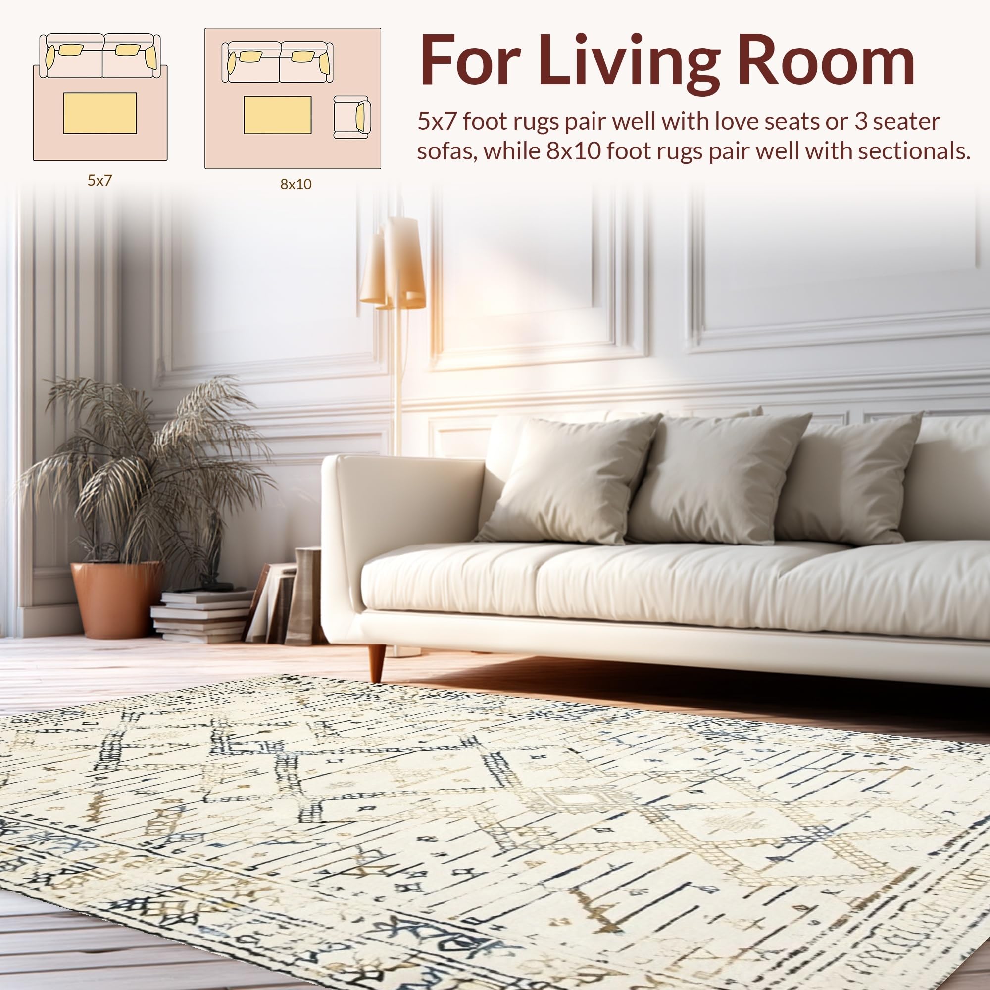 Ultra Soft Area Rug, Non Slip, Stain Resistant, Washable Area Rugs for Living Room, Bedroom, Cozy Modern Diamond Pattern(Beige) Overview: