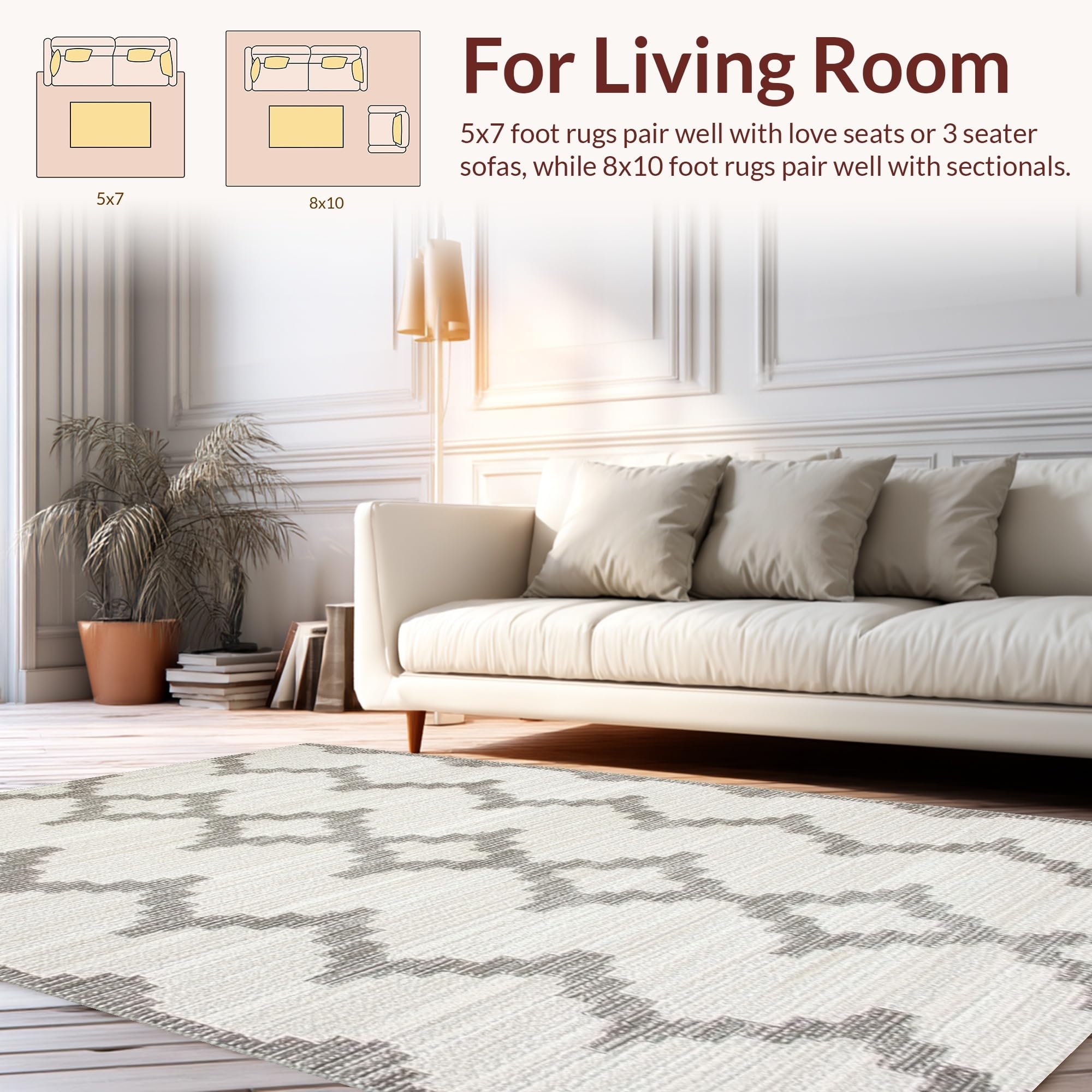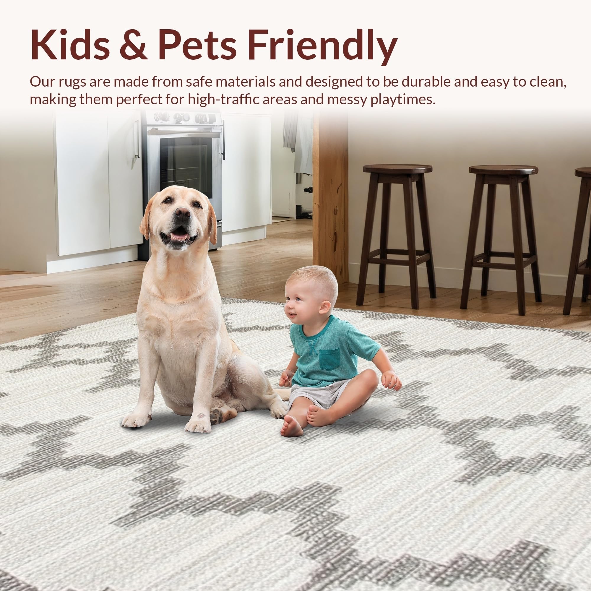 Ultra Soft Area Rug, Non Slip, Stain Resistant, Washable Area Rugs for Living Room, Bedroom, Cozy Modern Geometric Composition(Beige) Overview: