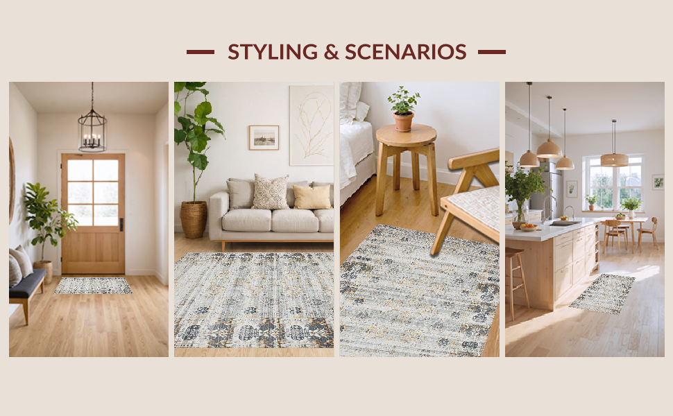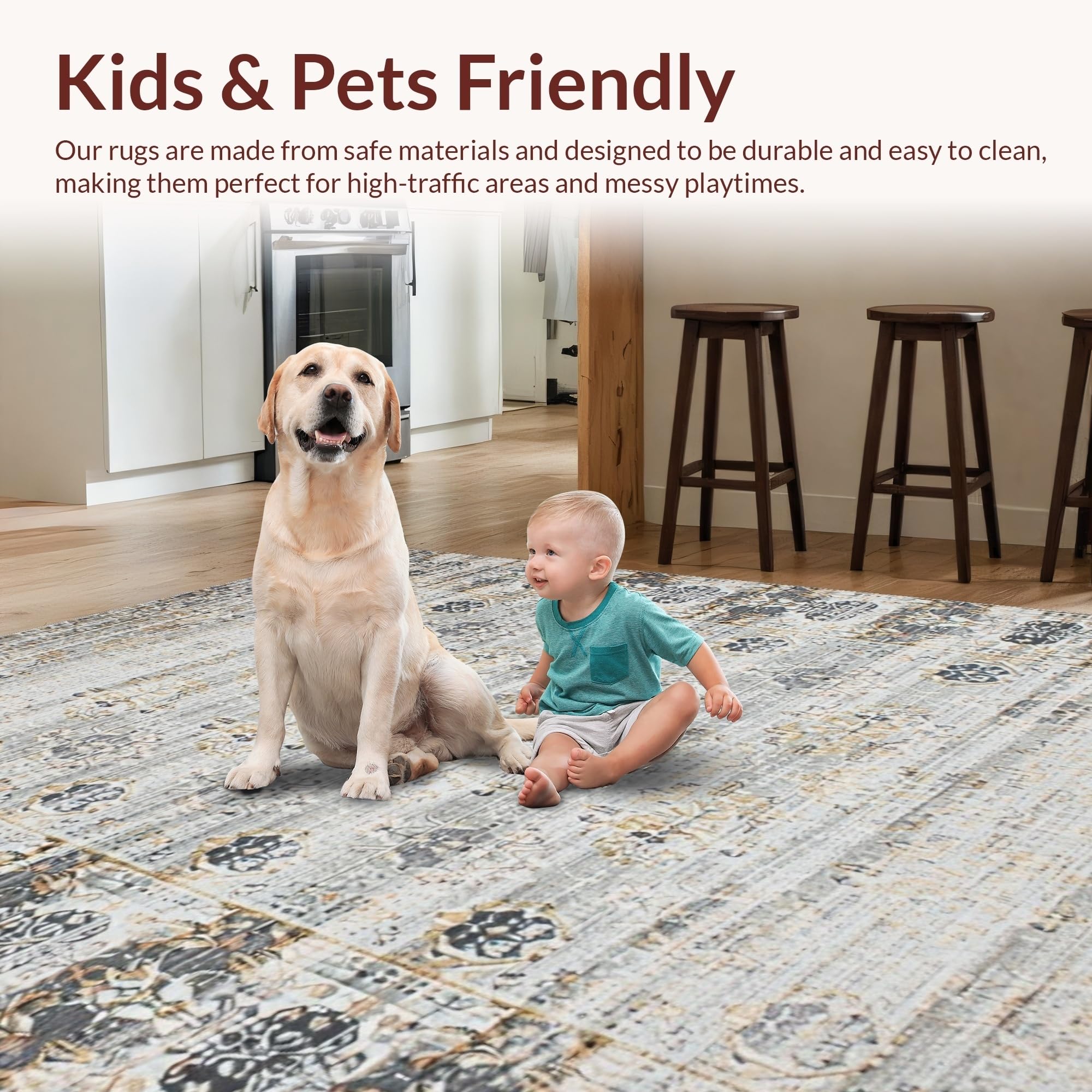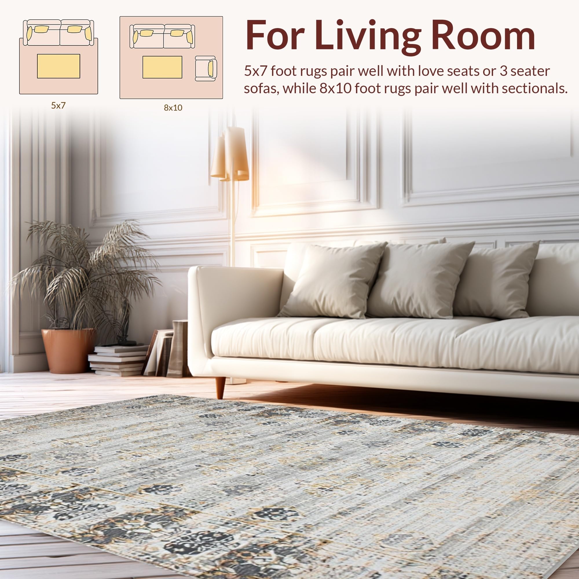 Ultra Soft Area Rug, Non Slip, Stain Resistant, Washable Area Rugs for Living Room, Bedroom, Cozy Modern Tiled Motif(Beige) Overview: