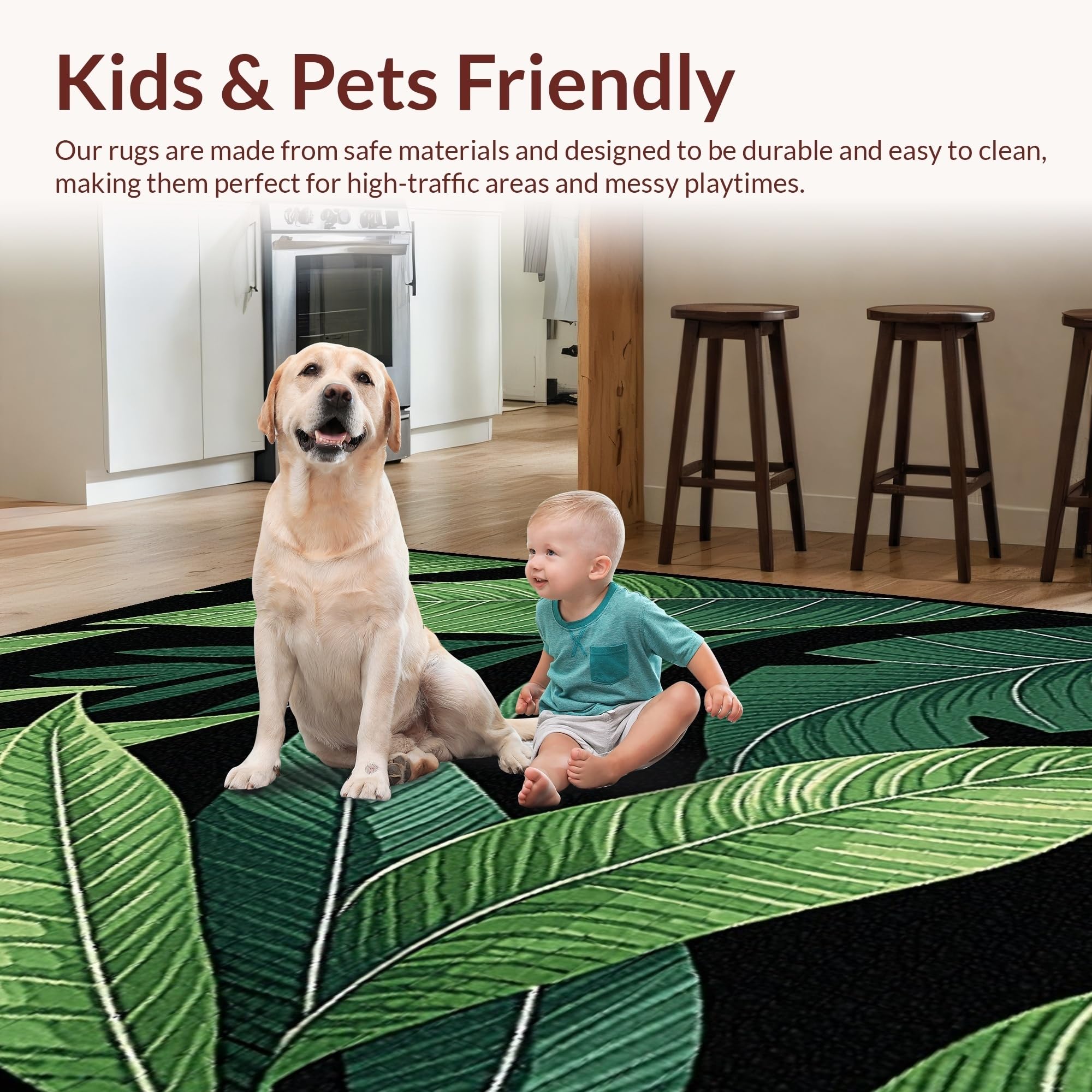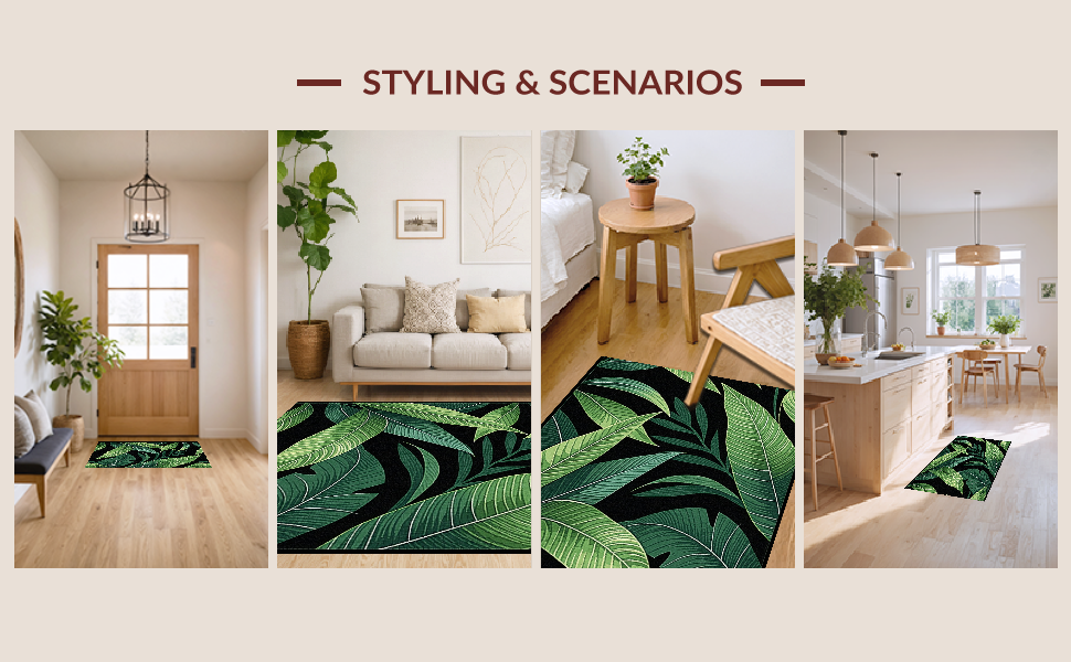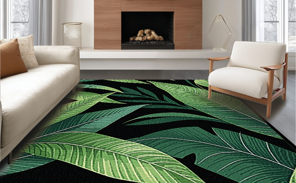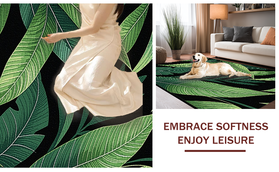 Ultra Soft Area Rug, Non Slip, Stain Resistant, Washable Area Rugs for Living Room, Bedroom, Cozy Nature-Inspired Print(Green) Overview: