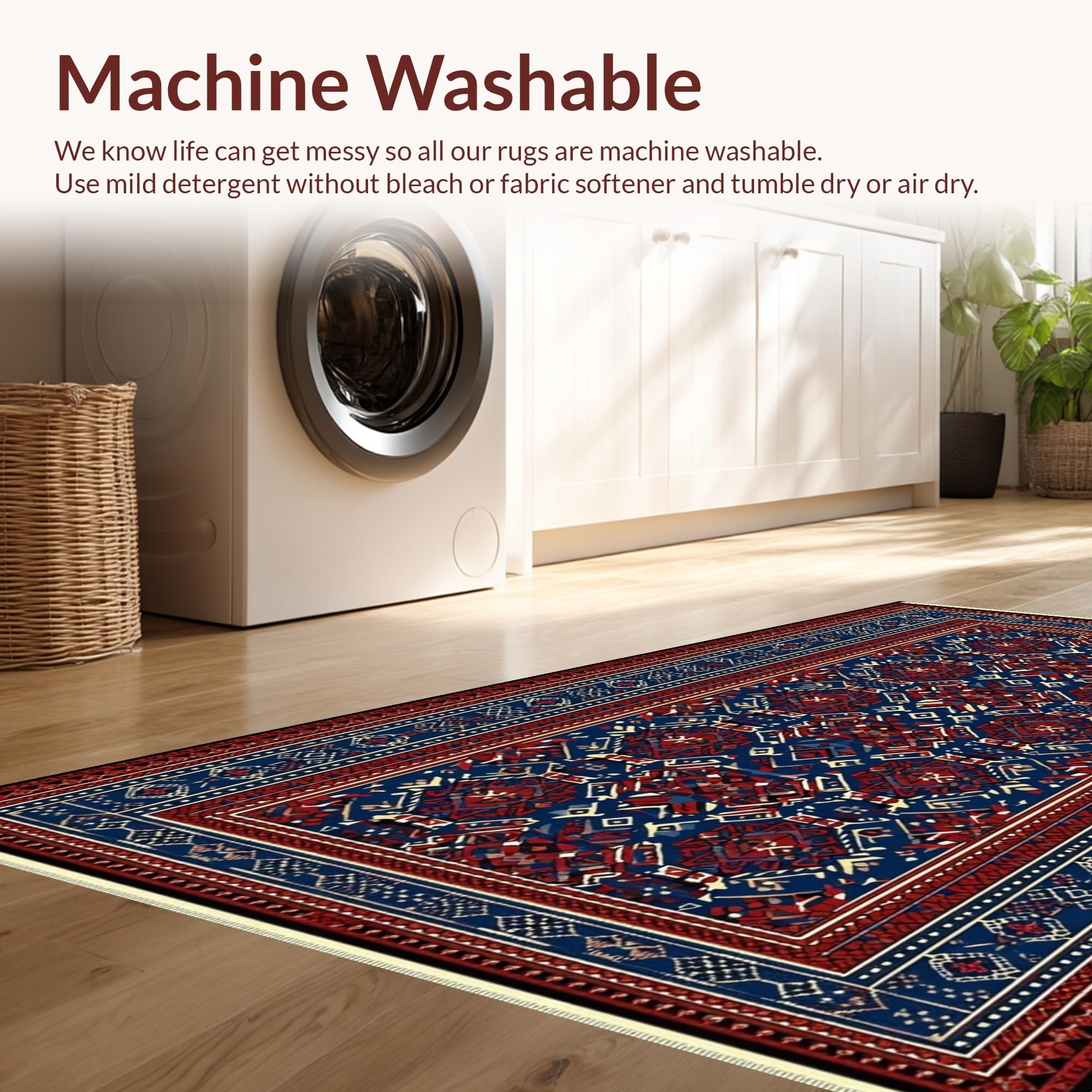 - Machine Washable: Our rugs can be easily thrown in the wash machine.