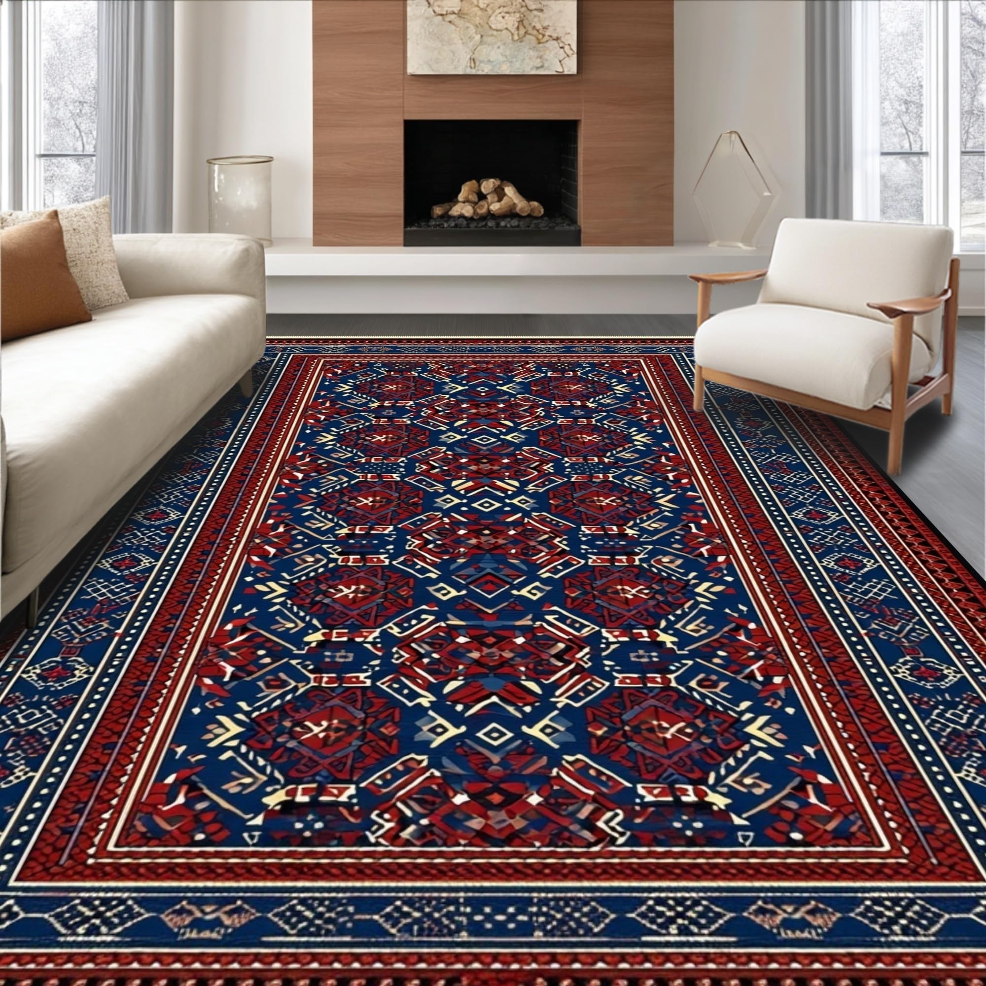 Ultra Soft Area Rug, Non Slip, Stain Resistant, Washable Area Rugs for Living Room, Bedroom, Cozy Pastel Patterned Touch(Blue) Overview: