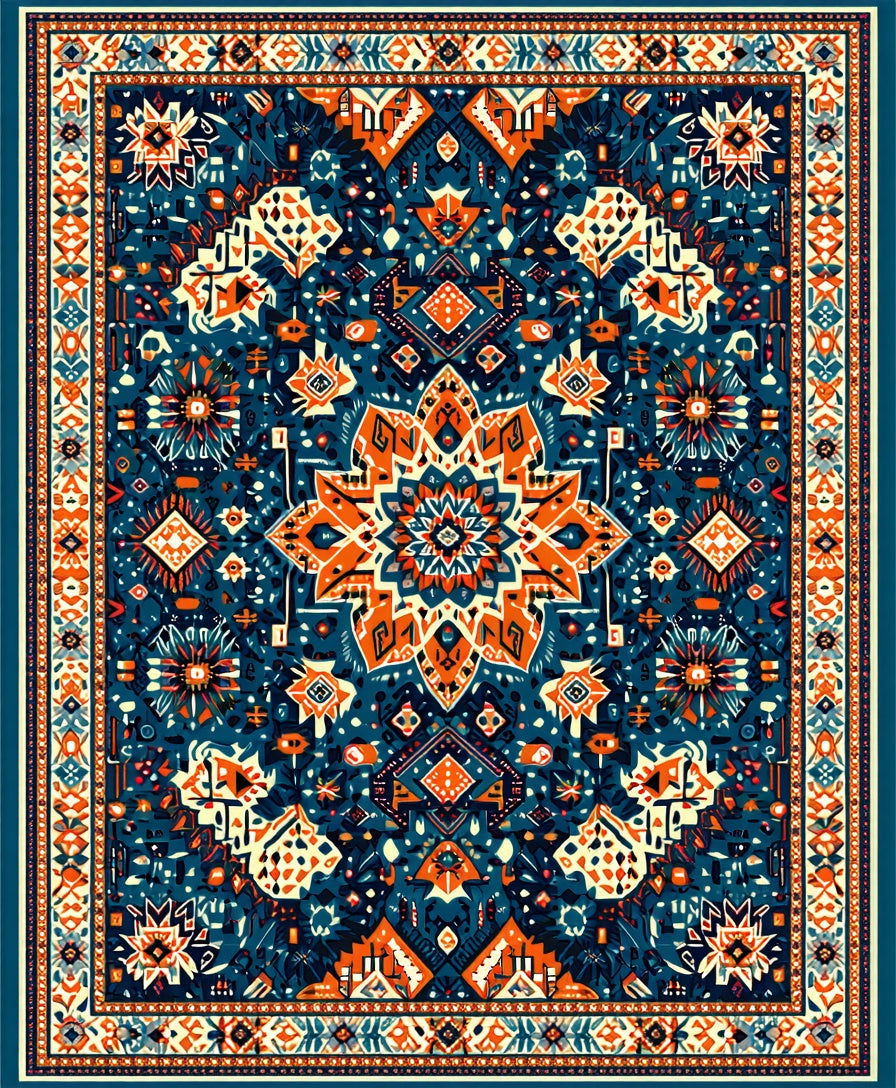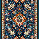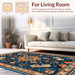 Flatwoven High Traffic Area Rug, Retro Accent, Non Slip, Stain Resistant, Washable Area Rugs for Living Room, Bedroom (Blue) Overview: