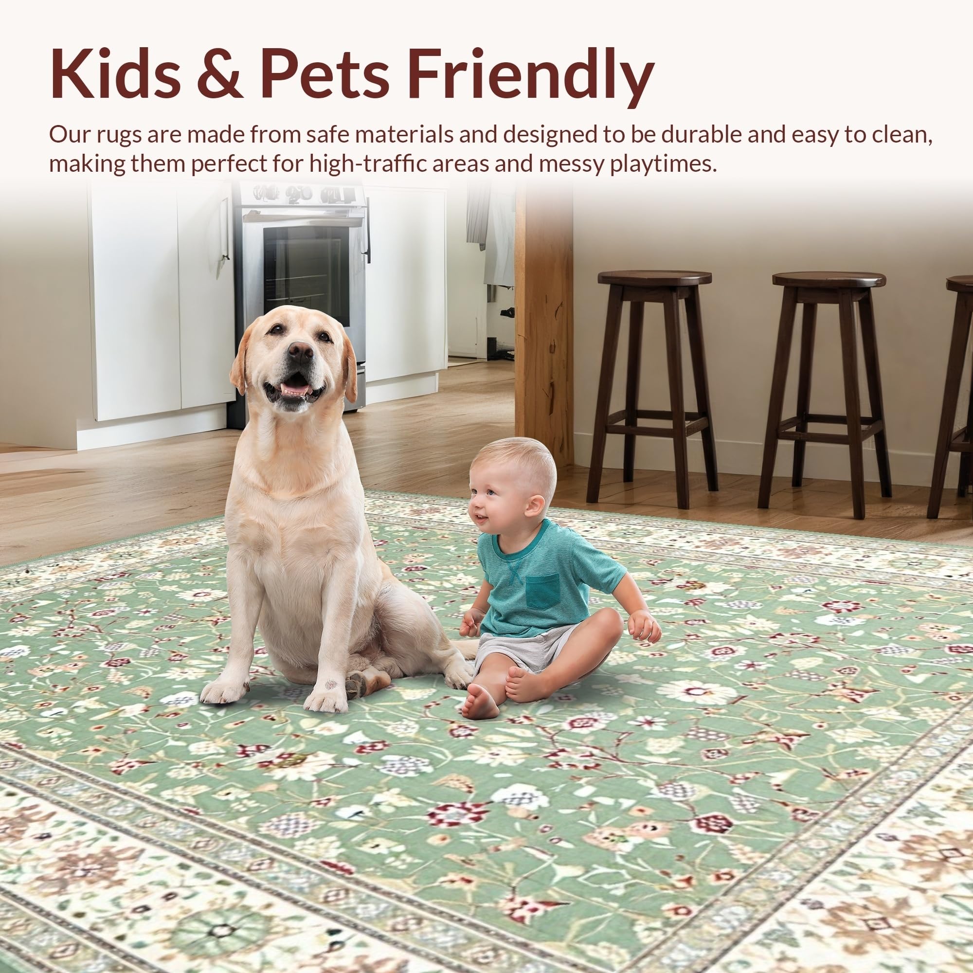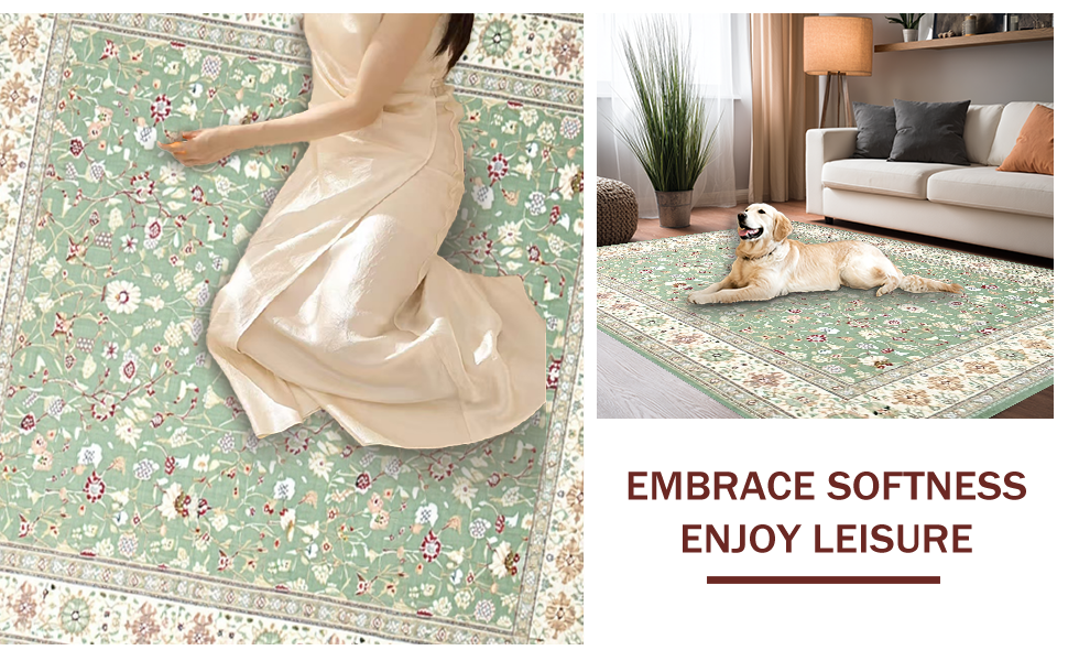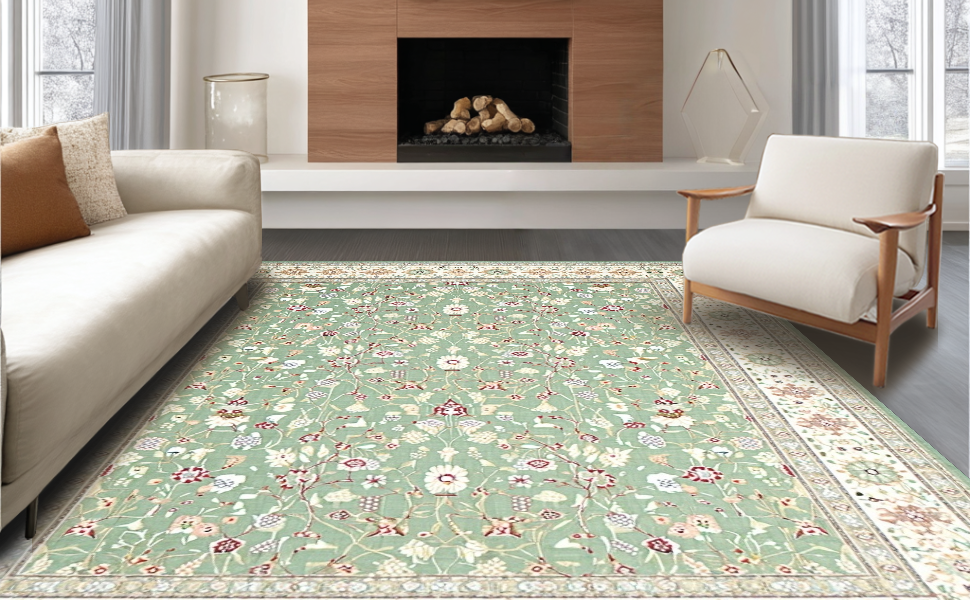 Ultra Soft Area Rug, Non Slip, Stain Resistant, Washable Area Rugs for Living Room, Bedroom, Cozy Sage Toned Nature Print(Green) Overview: