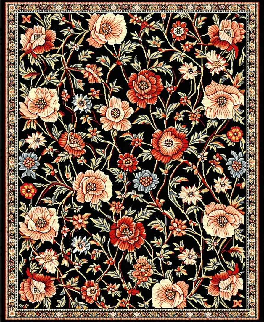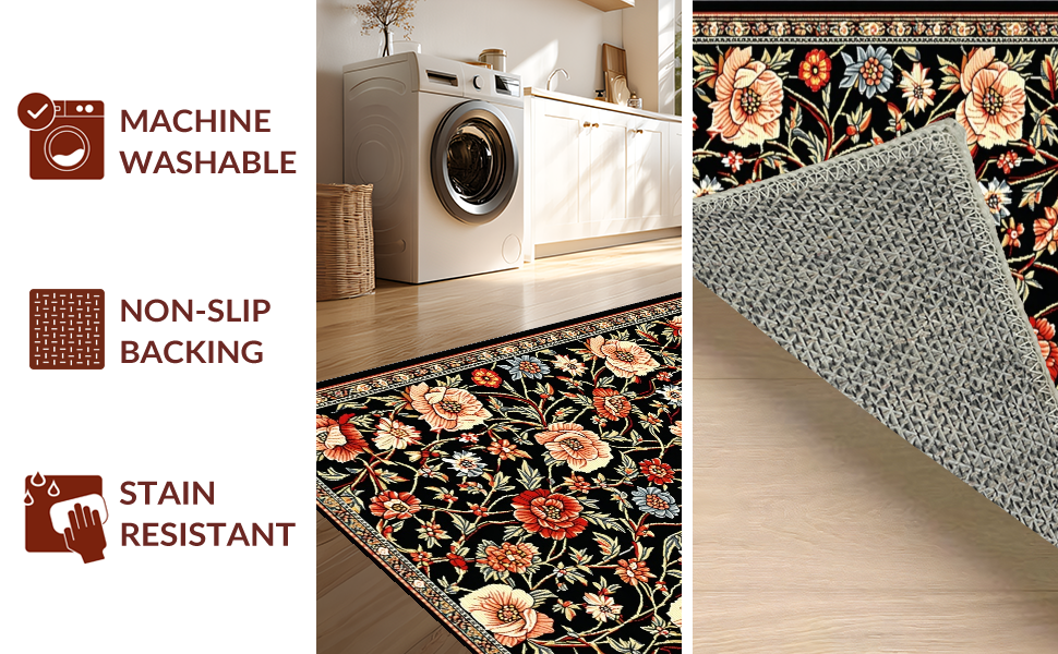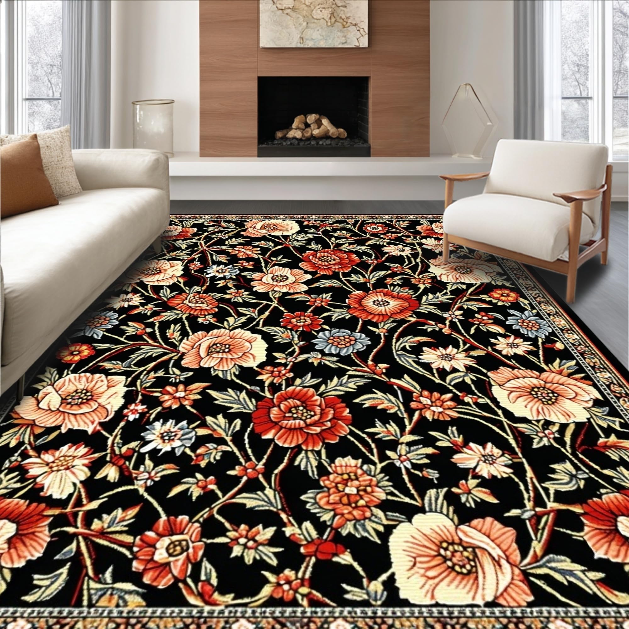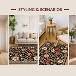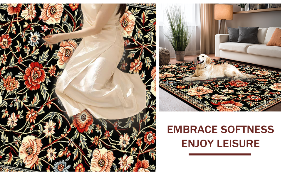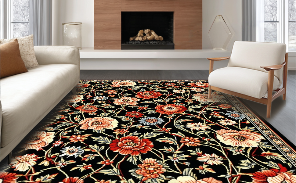 Ultra Soft Area Rug, Non Slip, Stain Resistant, Washable Area Rugs for Living Room, Bedroom, Cozy Soft Floral Aesthetic(Black) Overview: