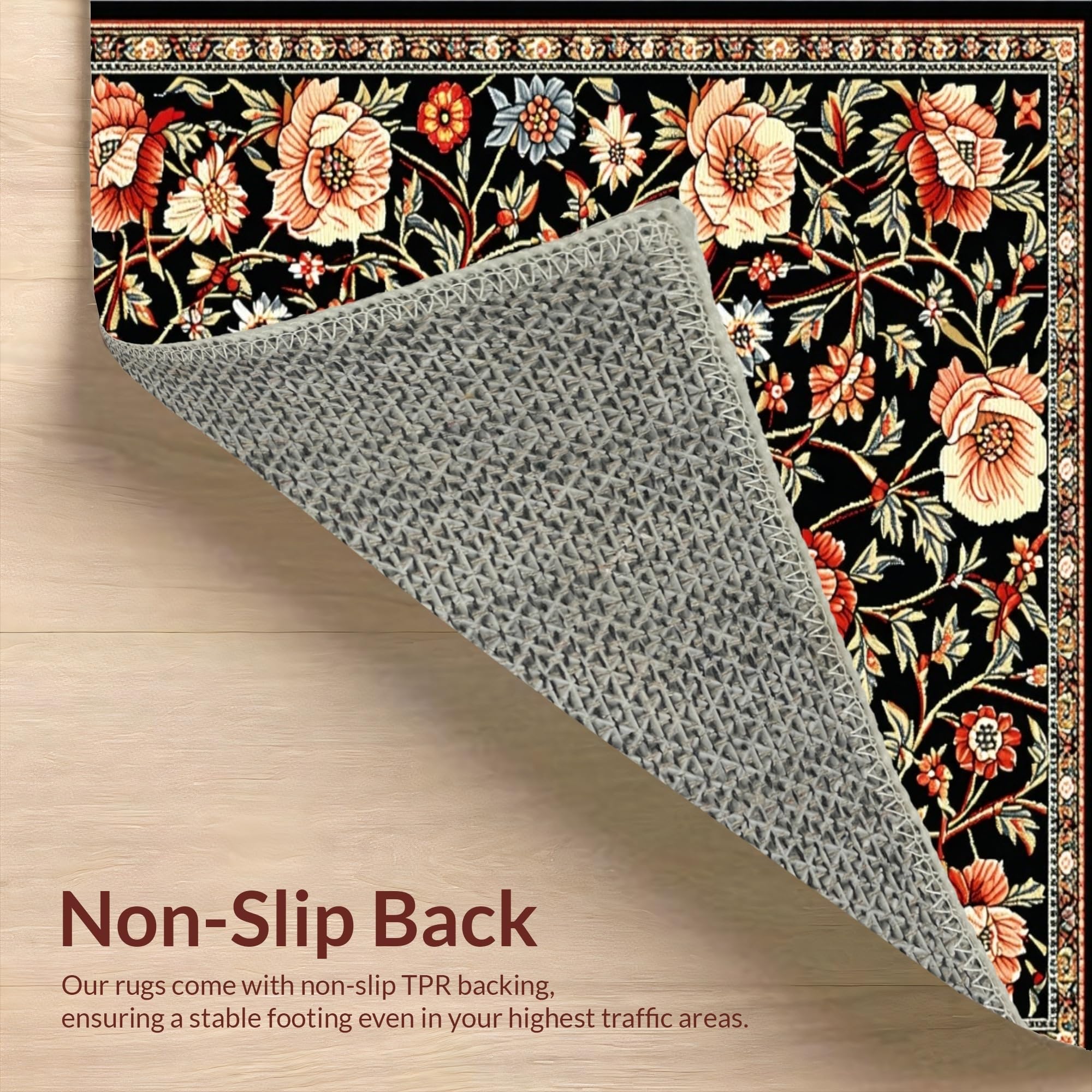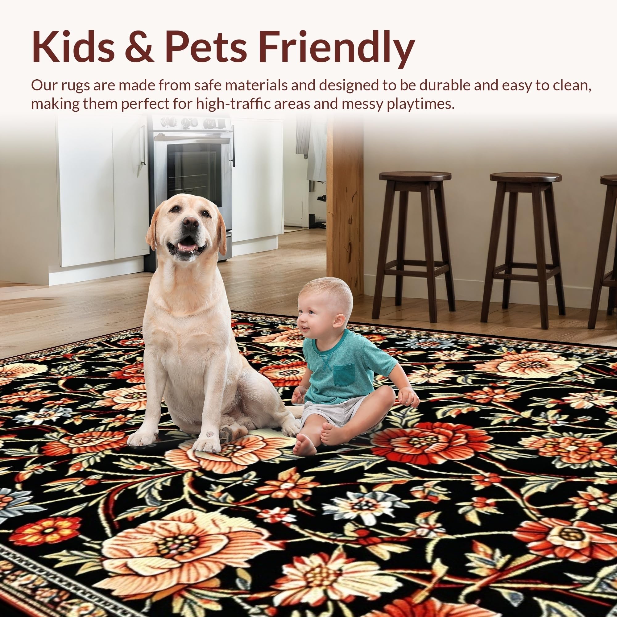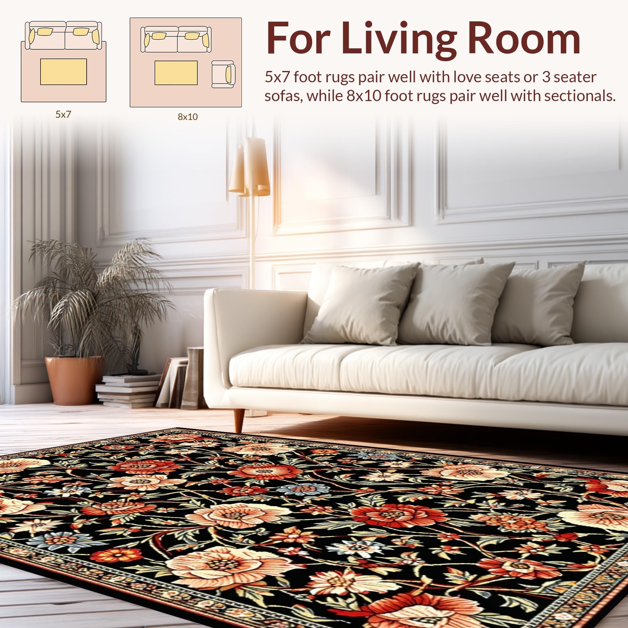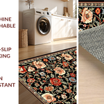 Ultra Soft Area Rug, Non Slip, Stain Resistant, Washable Area Rugs for Living Room, Bedroom, Cozy Soft Floral Aesthetic(Black) Overview: