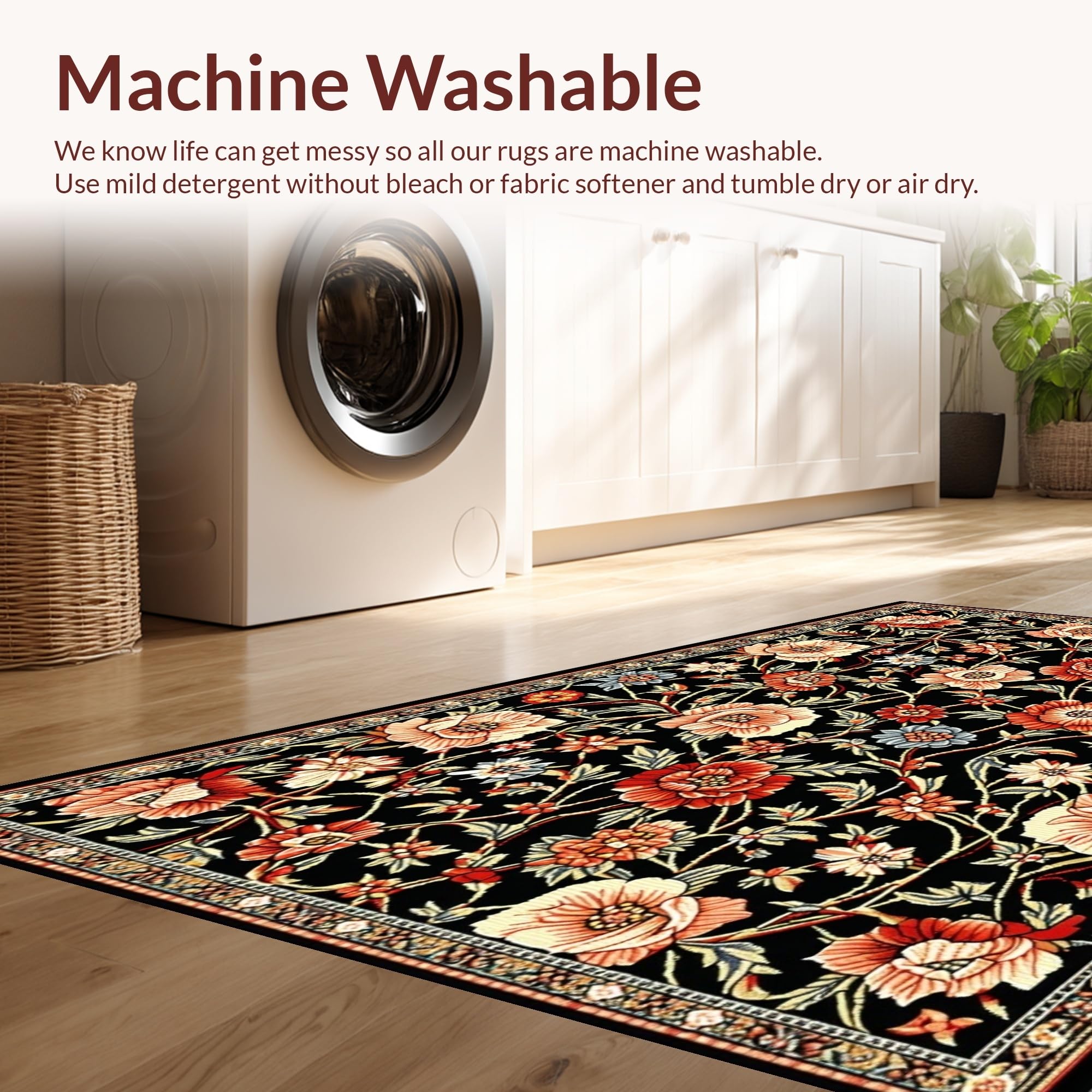 - Machine Washable: Our rugs can be easily thrown in the wash machine.