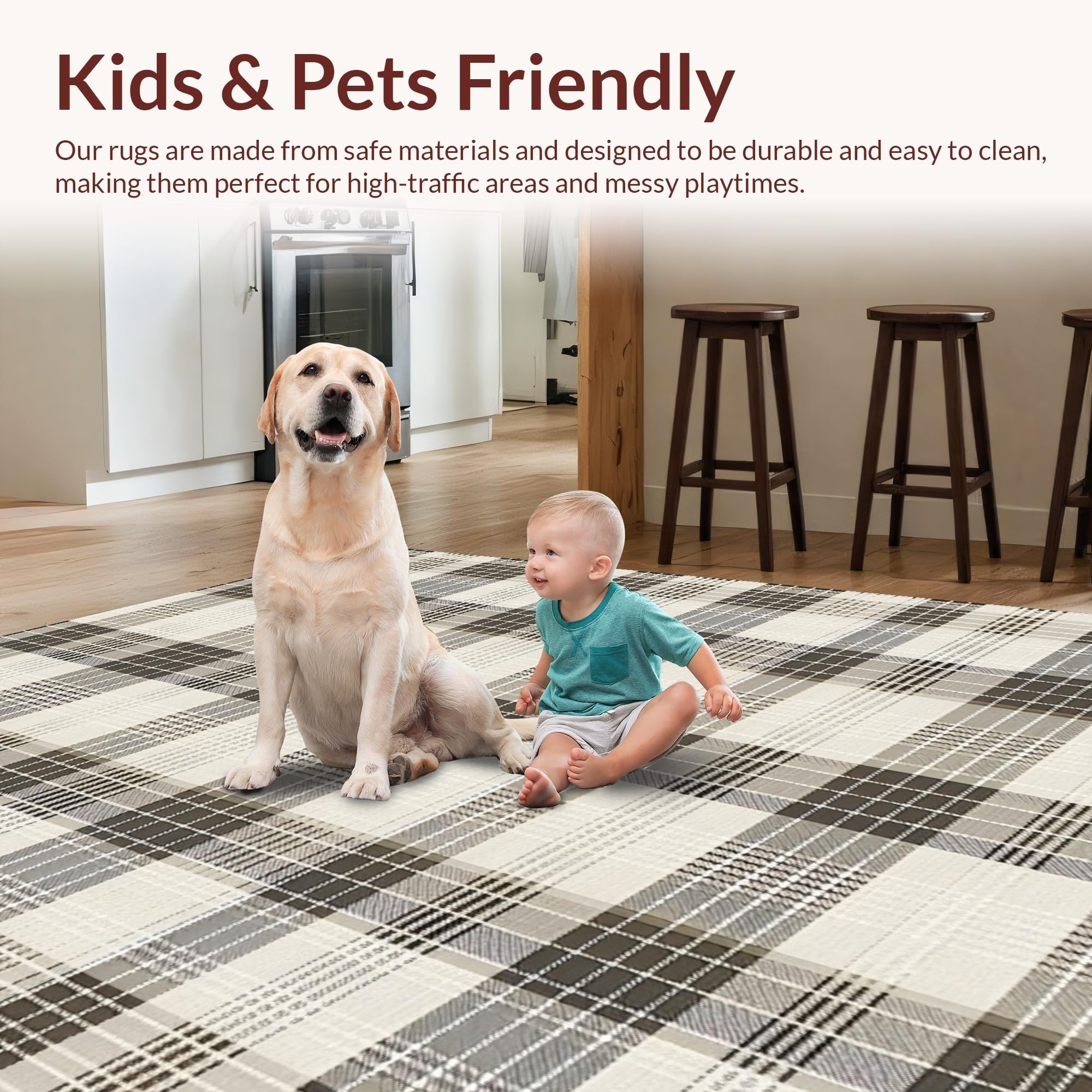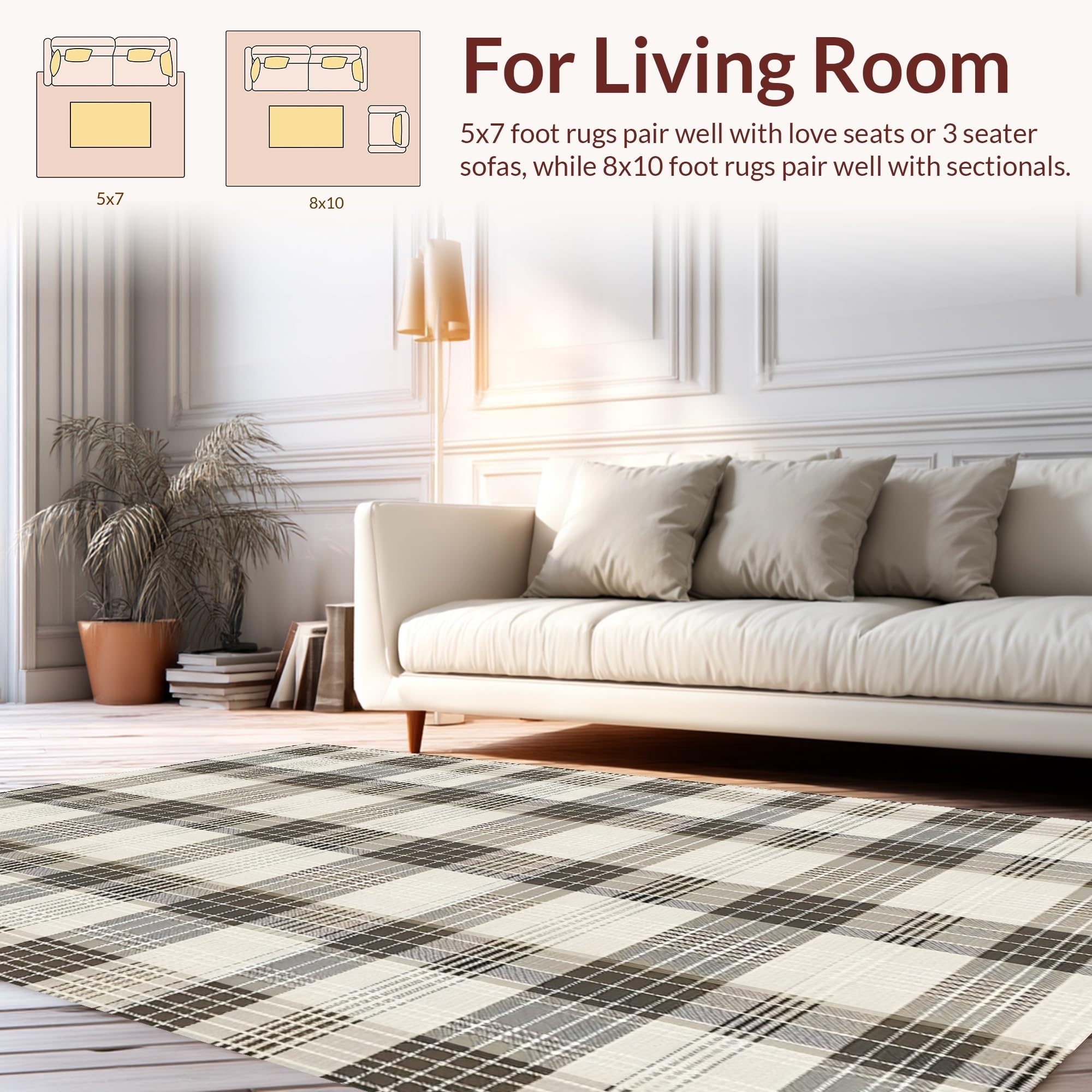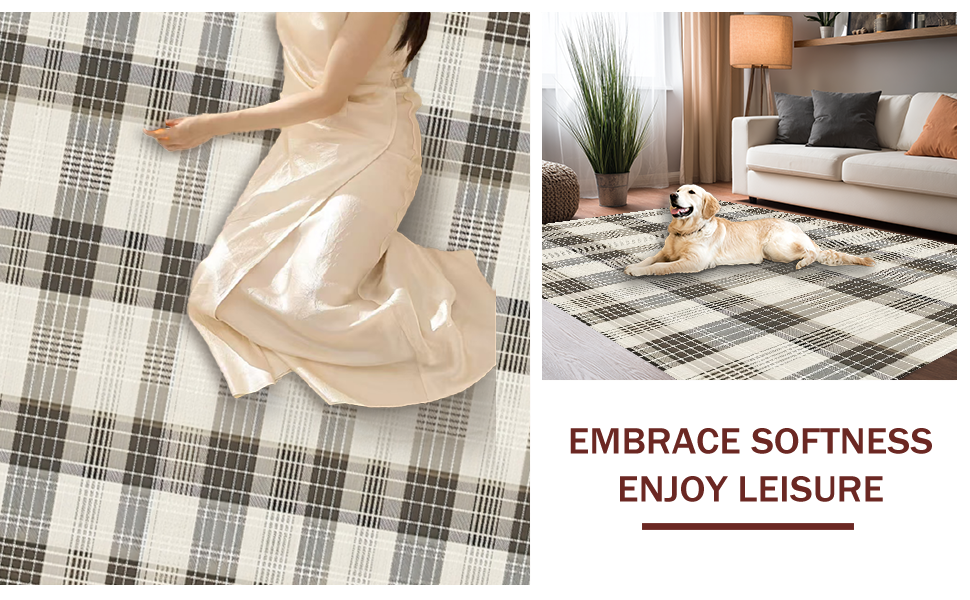 Ultra Soft Area Rug, Non Slip, Stain Resistant, Washable Area Rugs for Living Room, Bedroom, Cozy Soft-Toned Checkerboard Style(Gray) Overview: