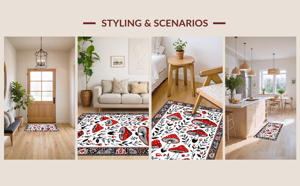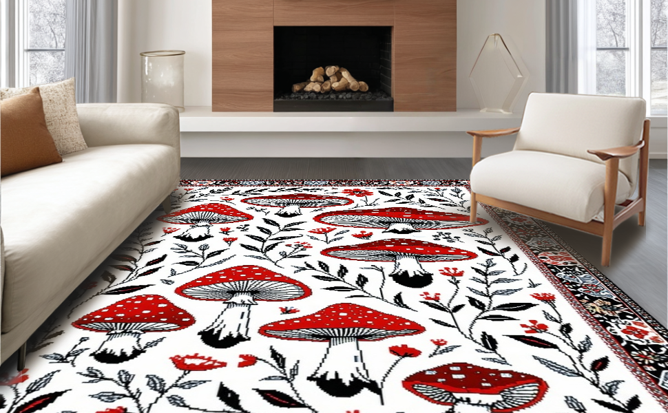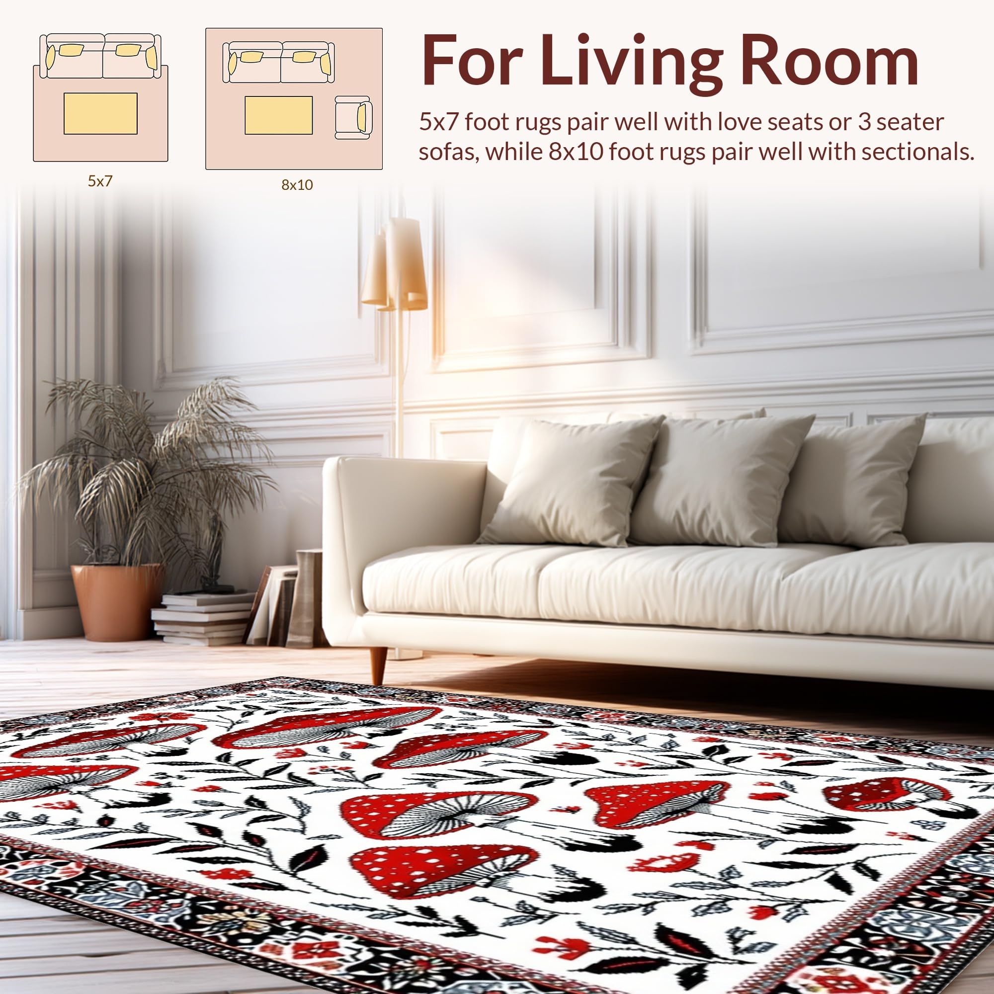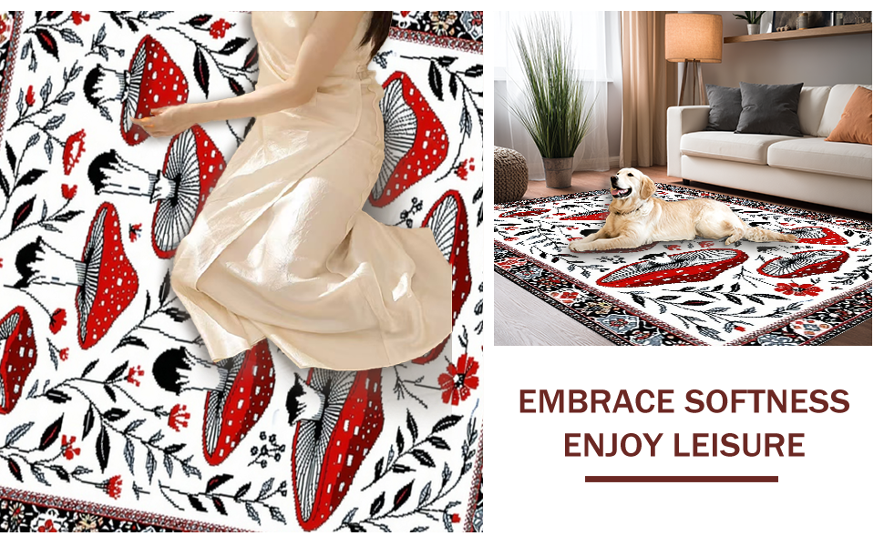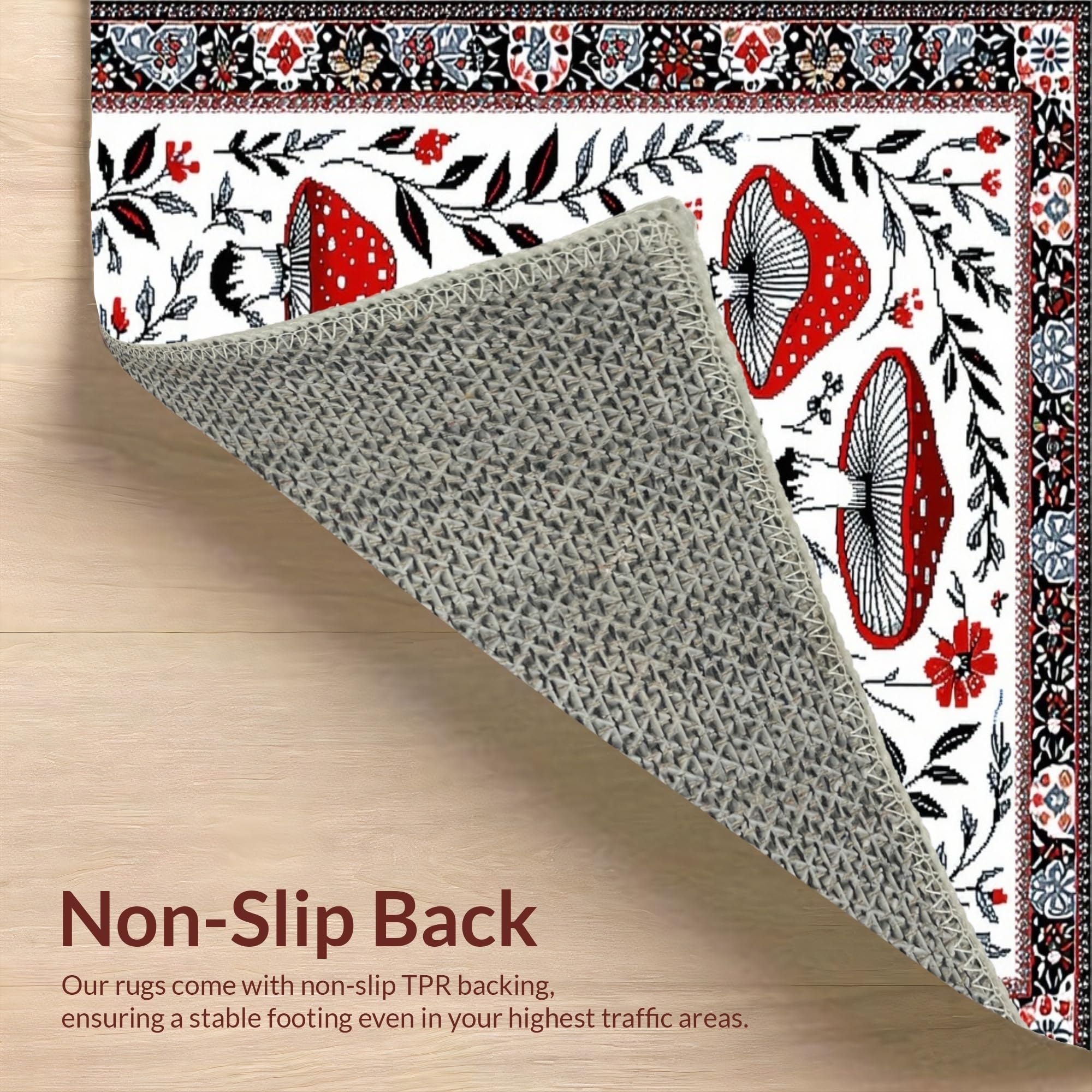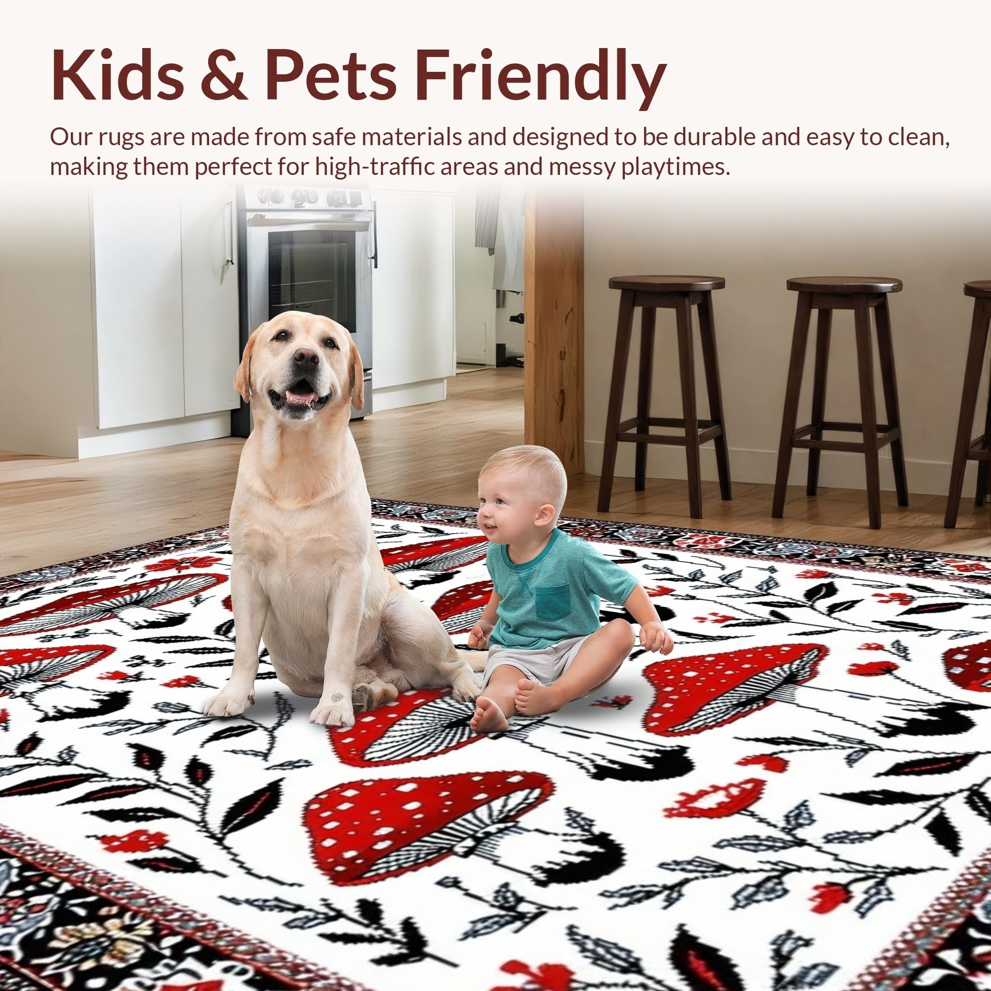 Ultra Soft Area Rug, Non Slip, Stain Resistant, Washable Area Rugs for Living Room, Bedroom, Cozy Textured Floral Elements(Red) Overview: