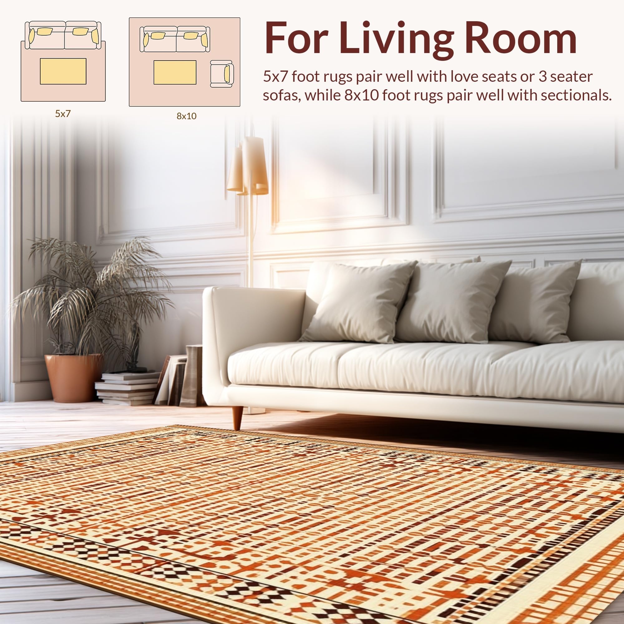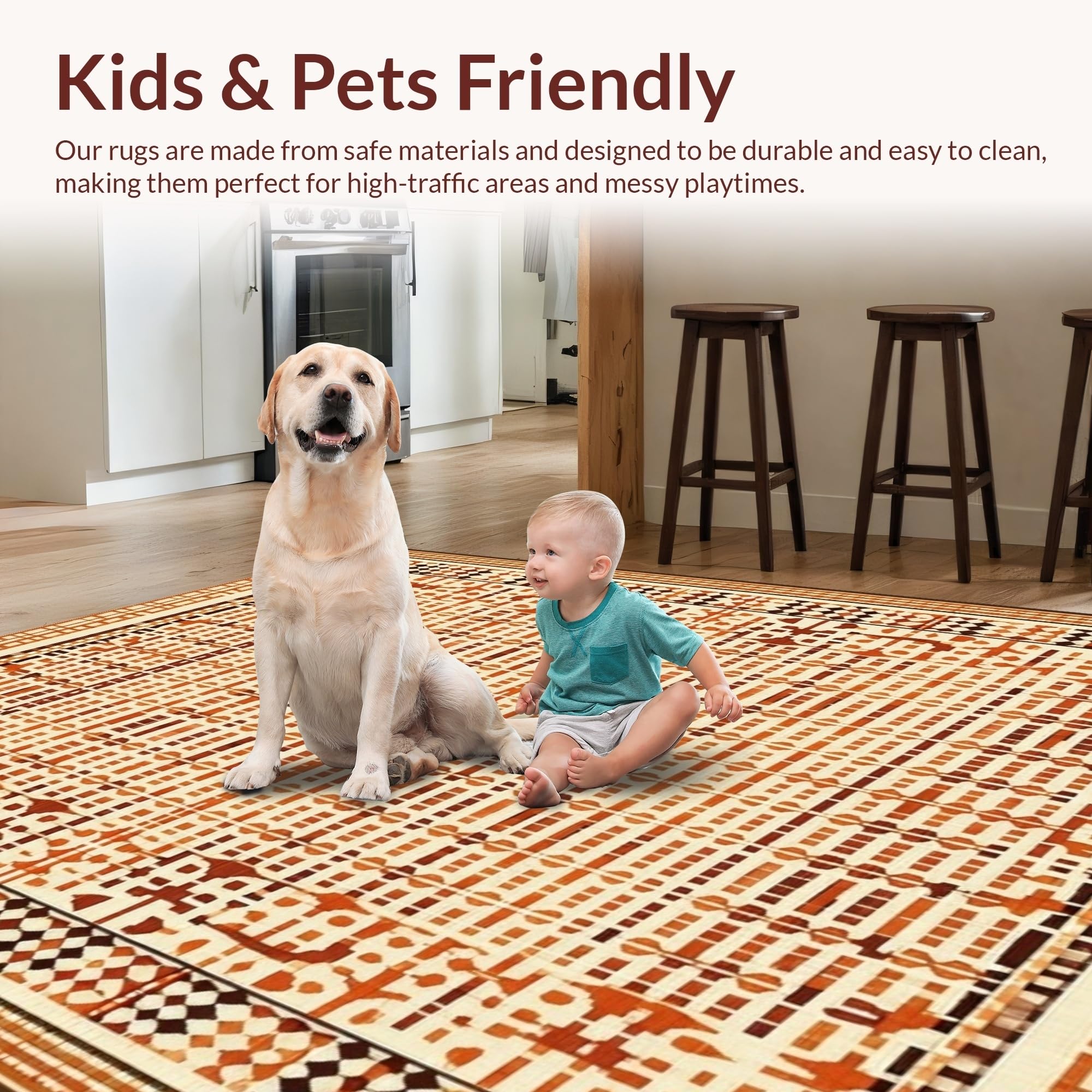Ultra Soft Area Rug, Non Slip, Stain Resistant, Washable Area Rugs for Living Room, Bedroom, Cozy Textured Ogee Style Runner(Beige) Overview: