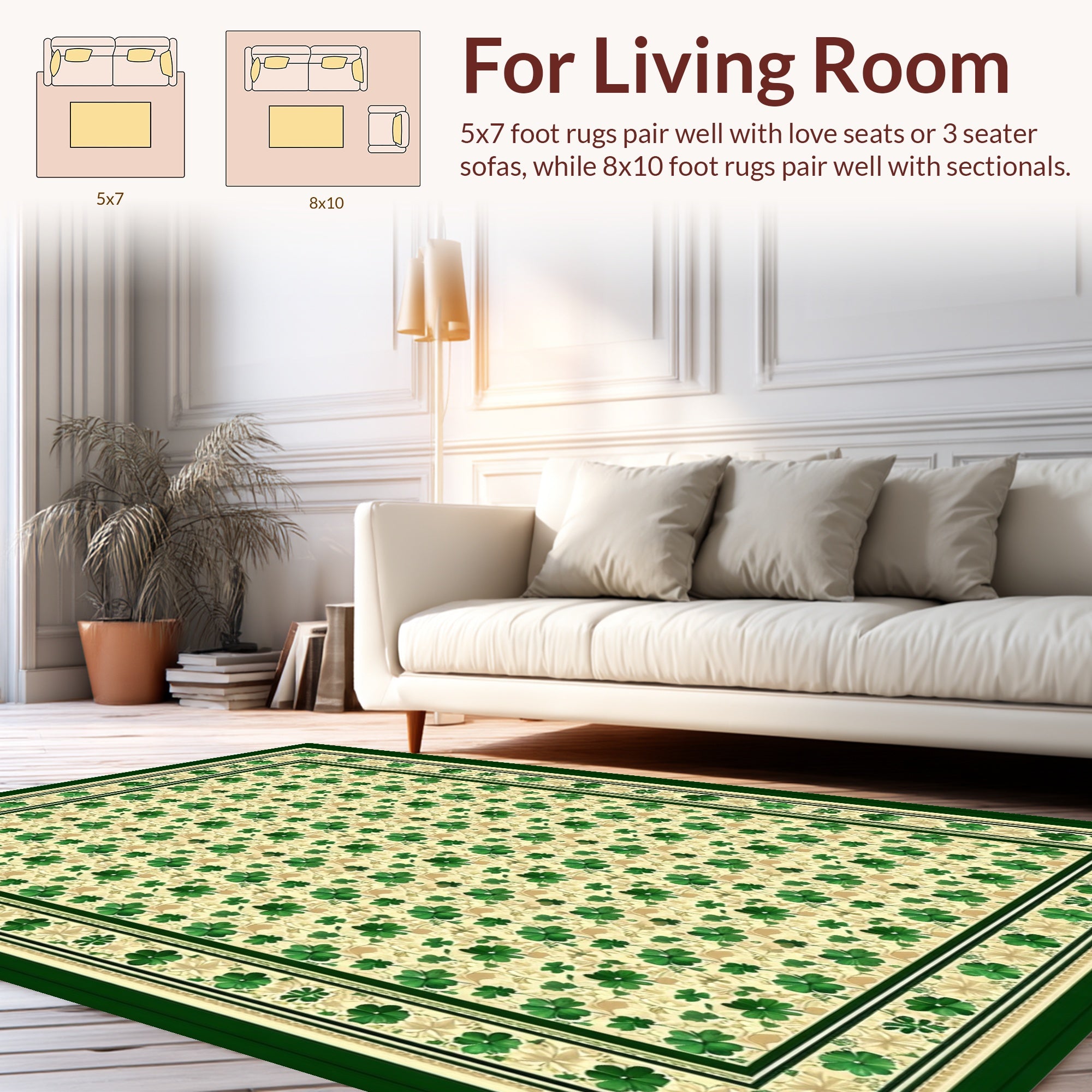 Flatwoven High Traffic Area Rug, Transitional Floral Aesthetic, Non Slip, Stain Resistant, Washable Area Rugs for Living Room, Bedroom (Green) Overview: