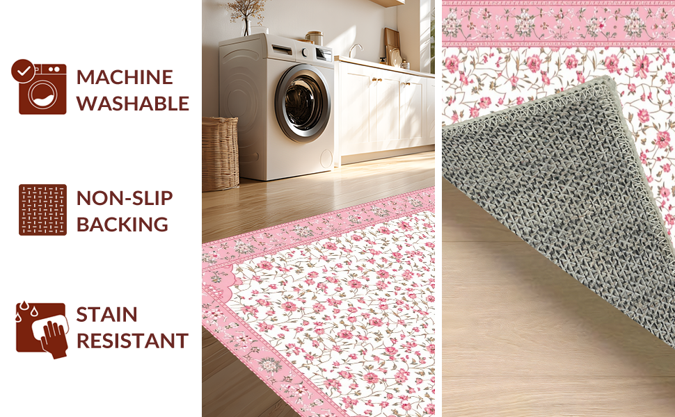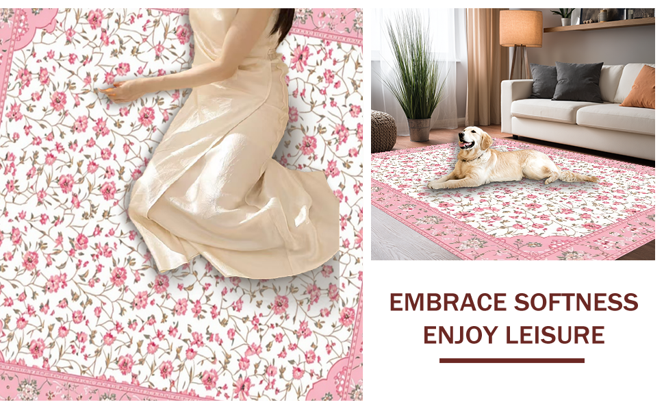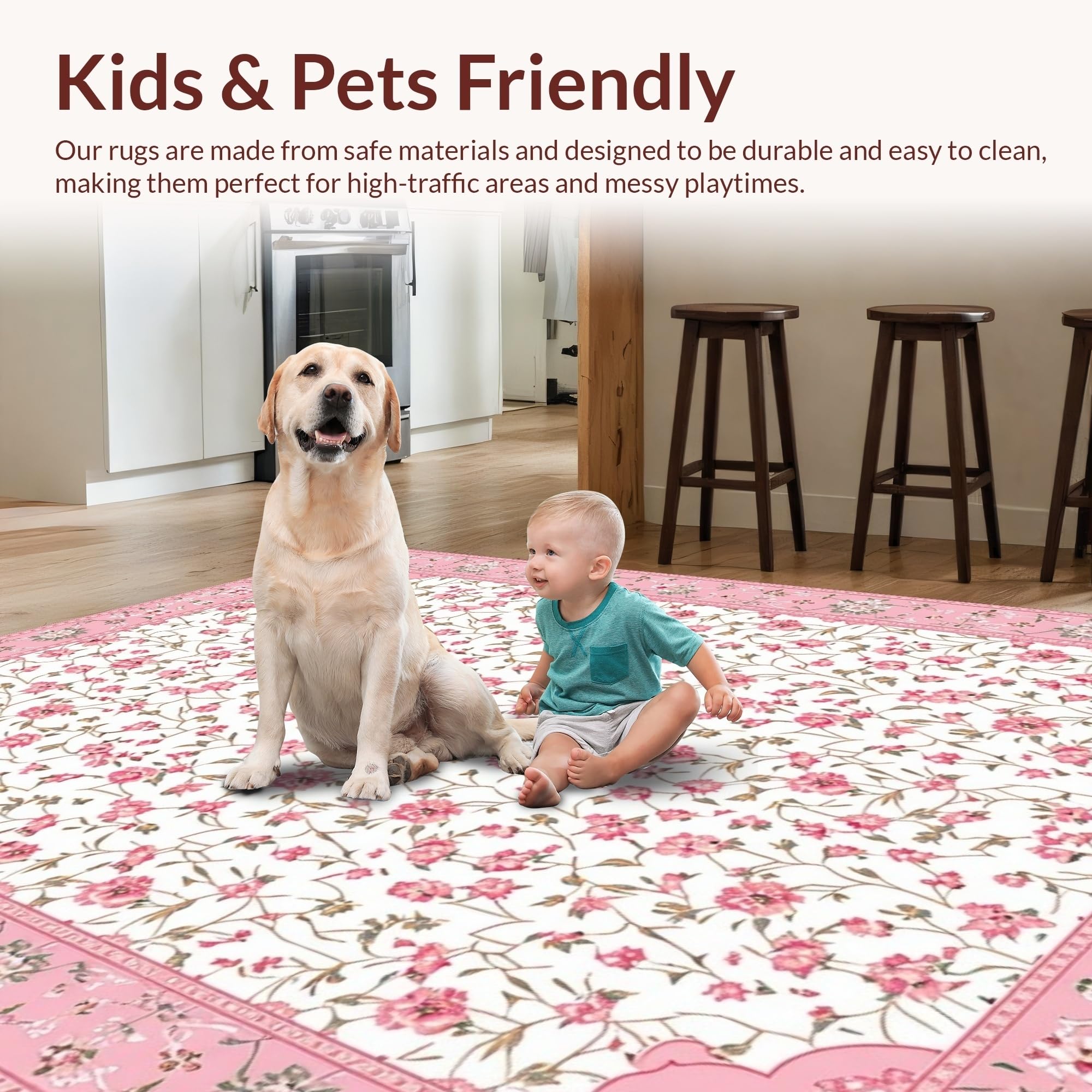Ultra Soft Area Rug, Non Slip, Stain Resistant, Washable Area Rugs for Living Room, Bedroom, Cozy Vintage Blossom Motif(Pink) Overview: