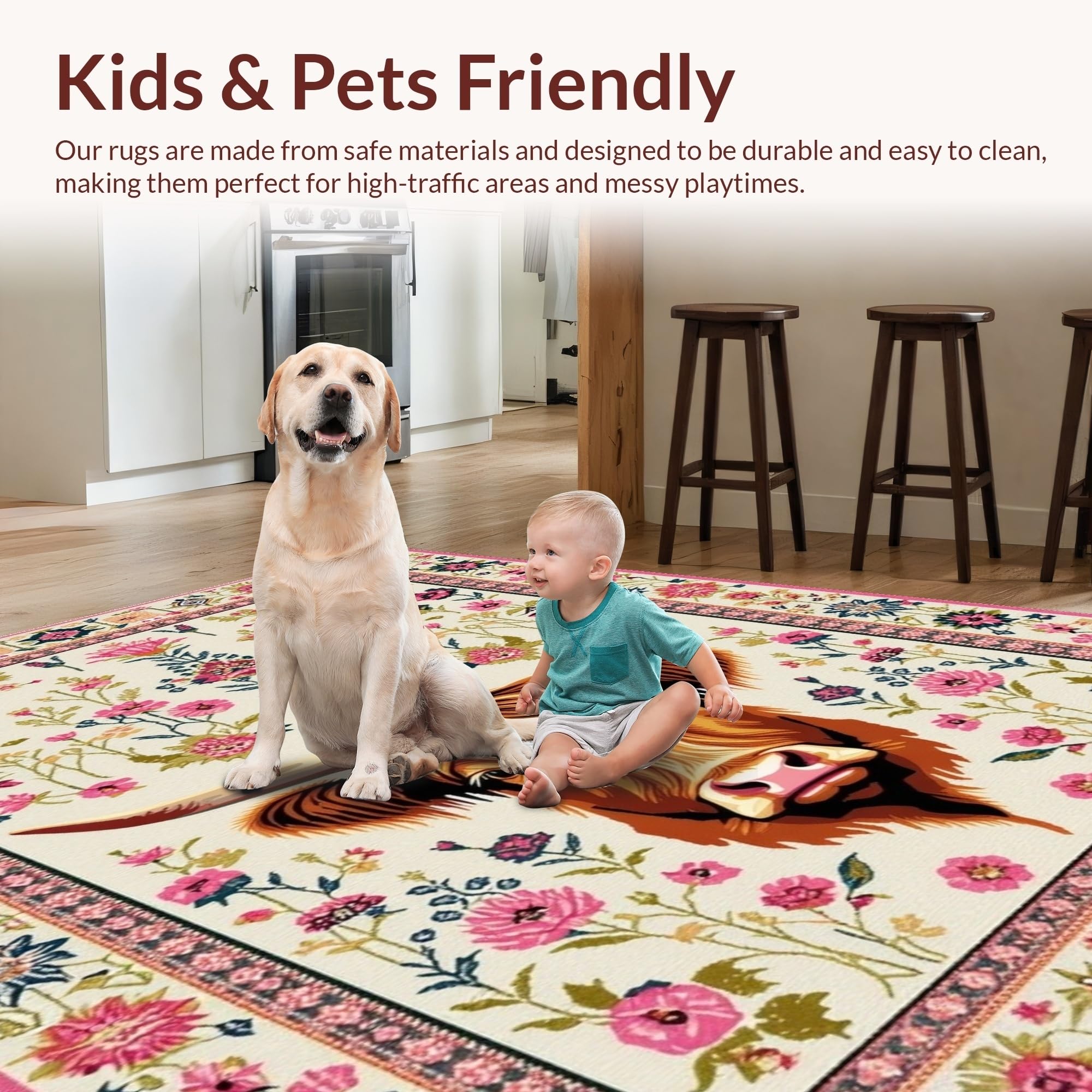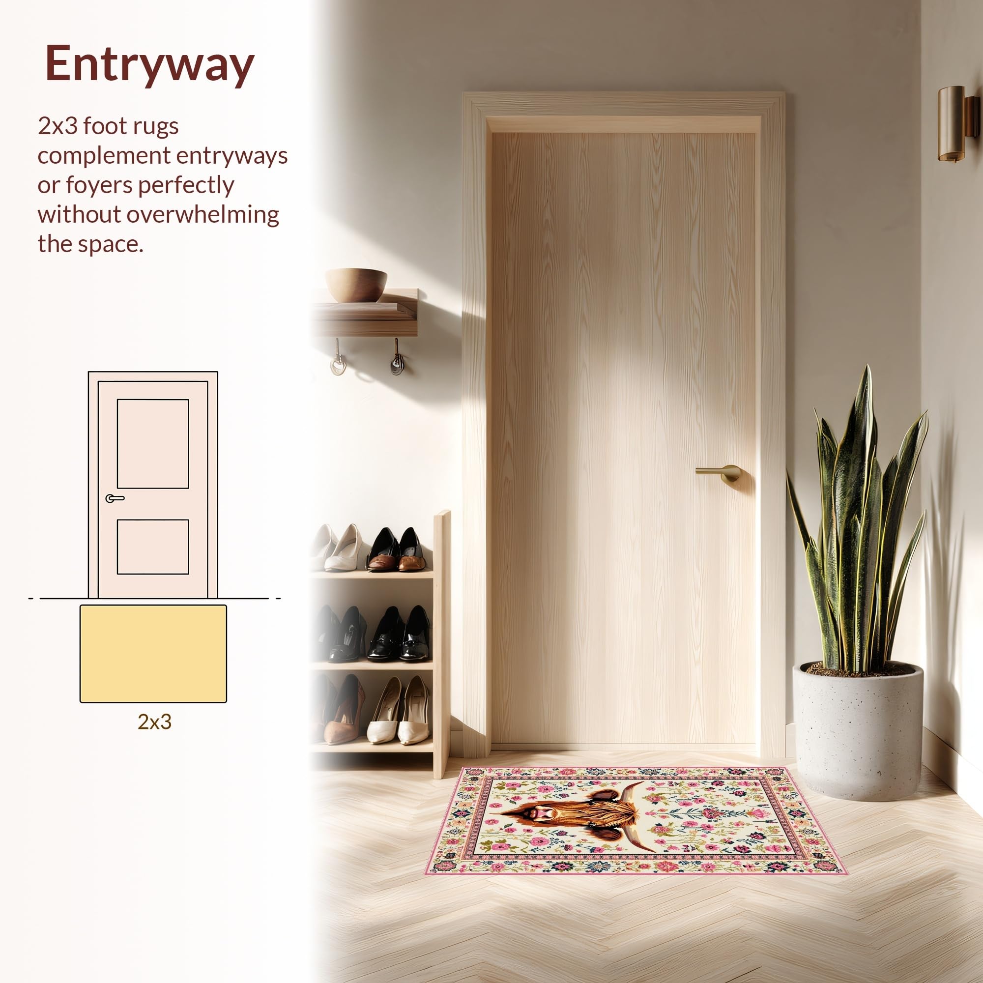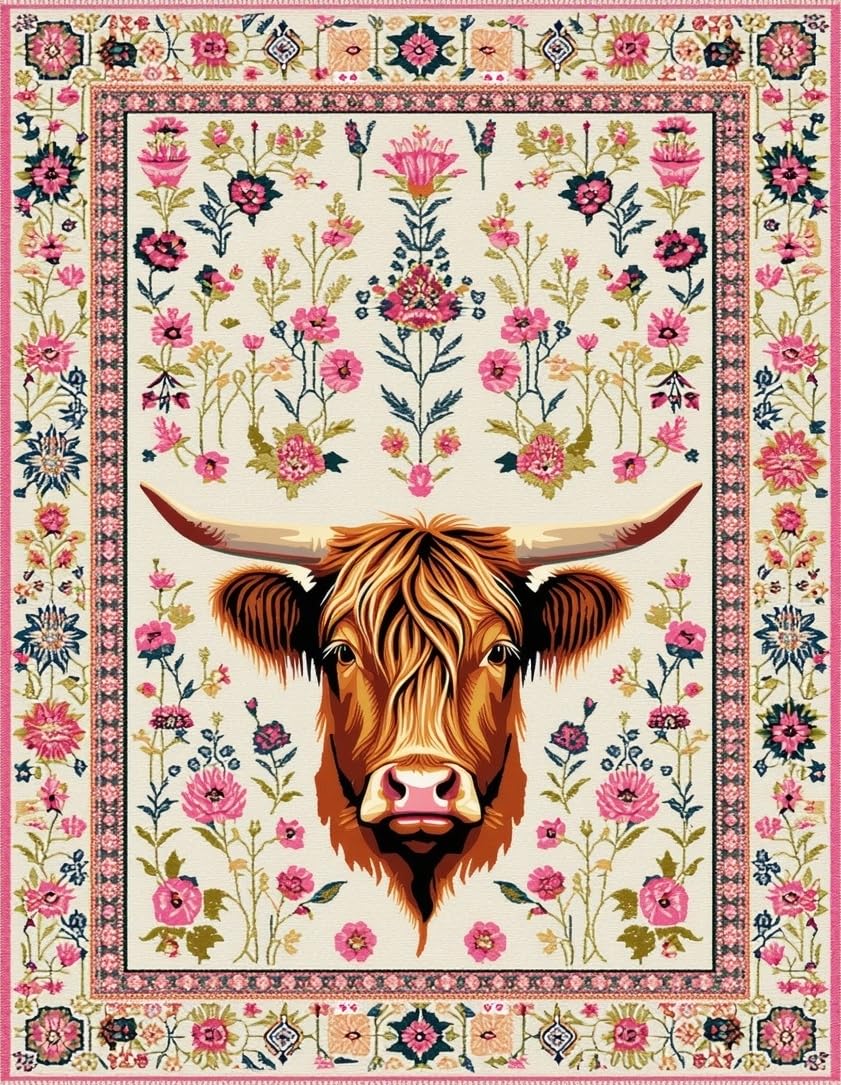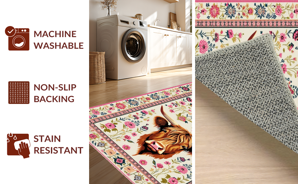 Ultra Soft Area Rug, Non Slip, Stain Resistant, Washable Area Rugs for Living Room, Bedroom, Cozy Vintage Cattle Graphics(Beige) Overview: