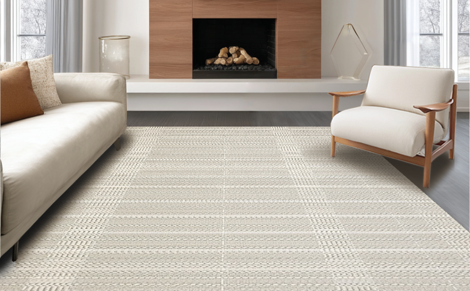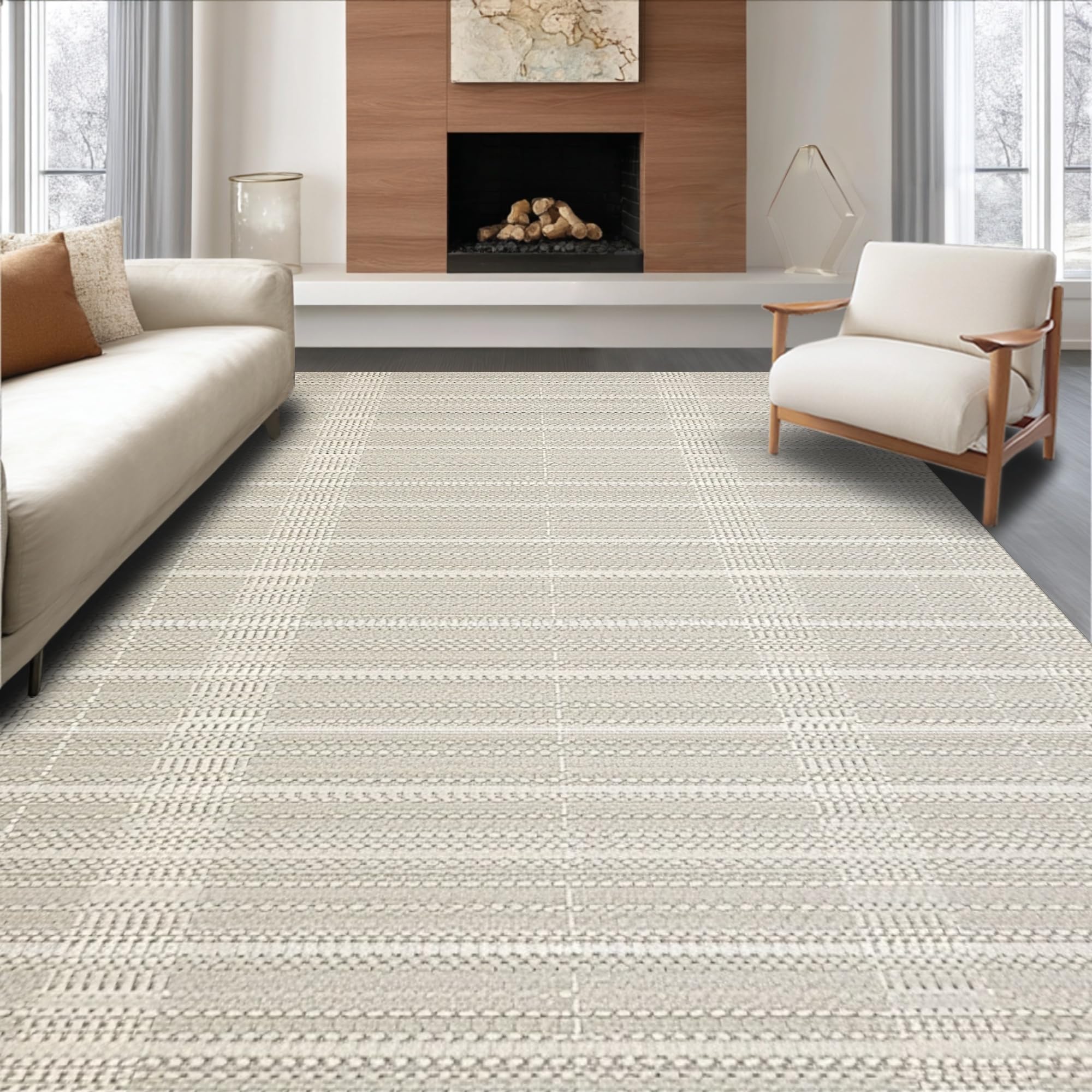 Ultra Soft Area Rug, Non Slip, Stain Resistant, Washable Area Rugs for Living Room, Bedroom, Cozy Vintage Lattice Arrangement(Beige) Overview: