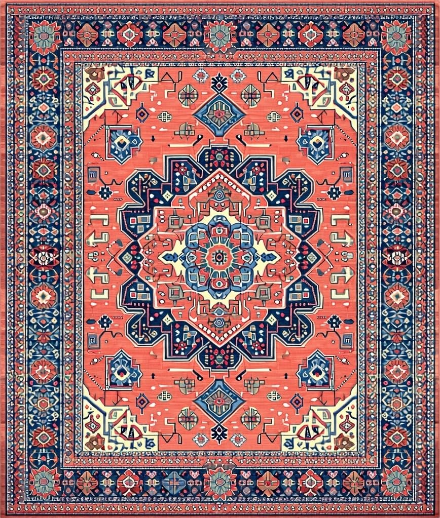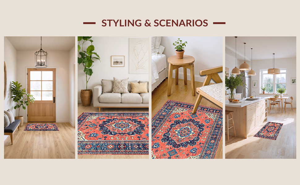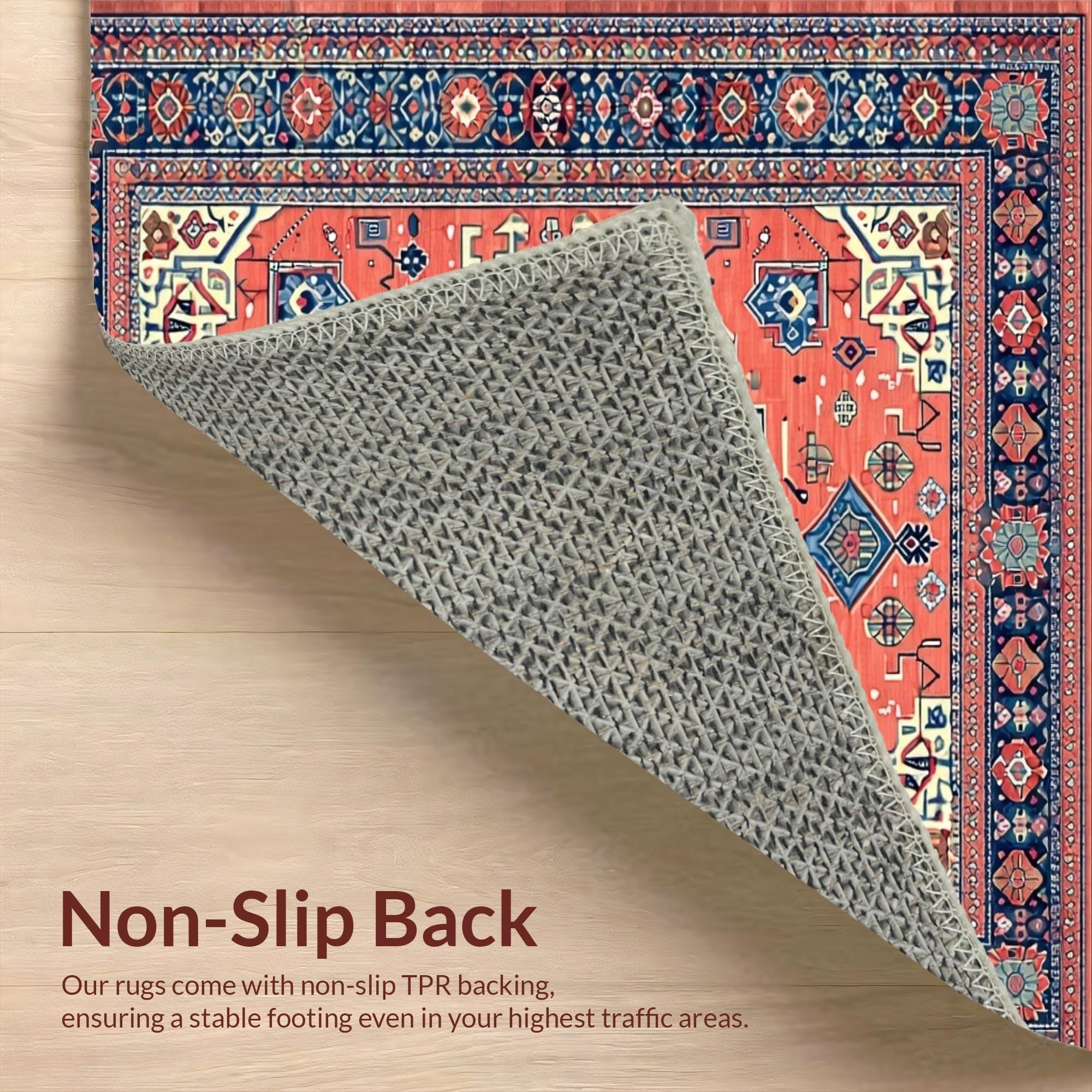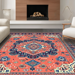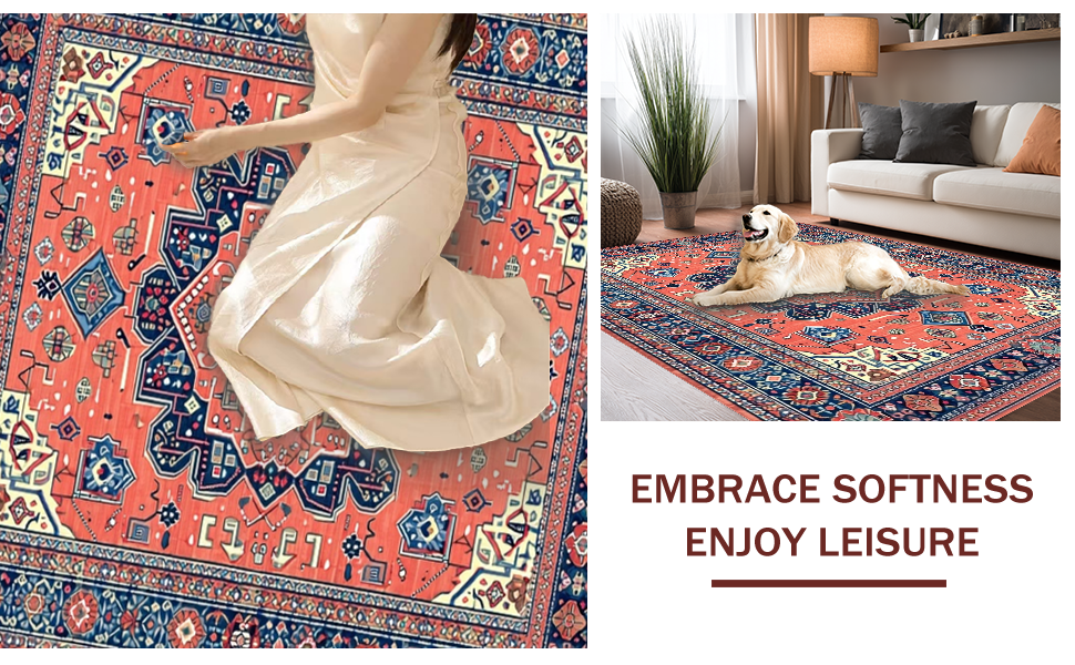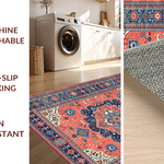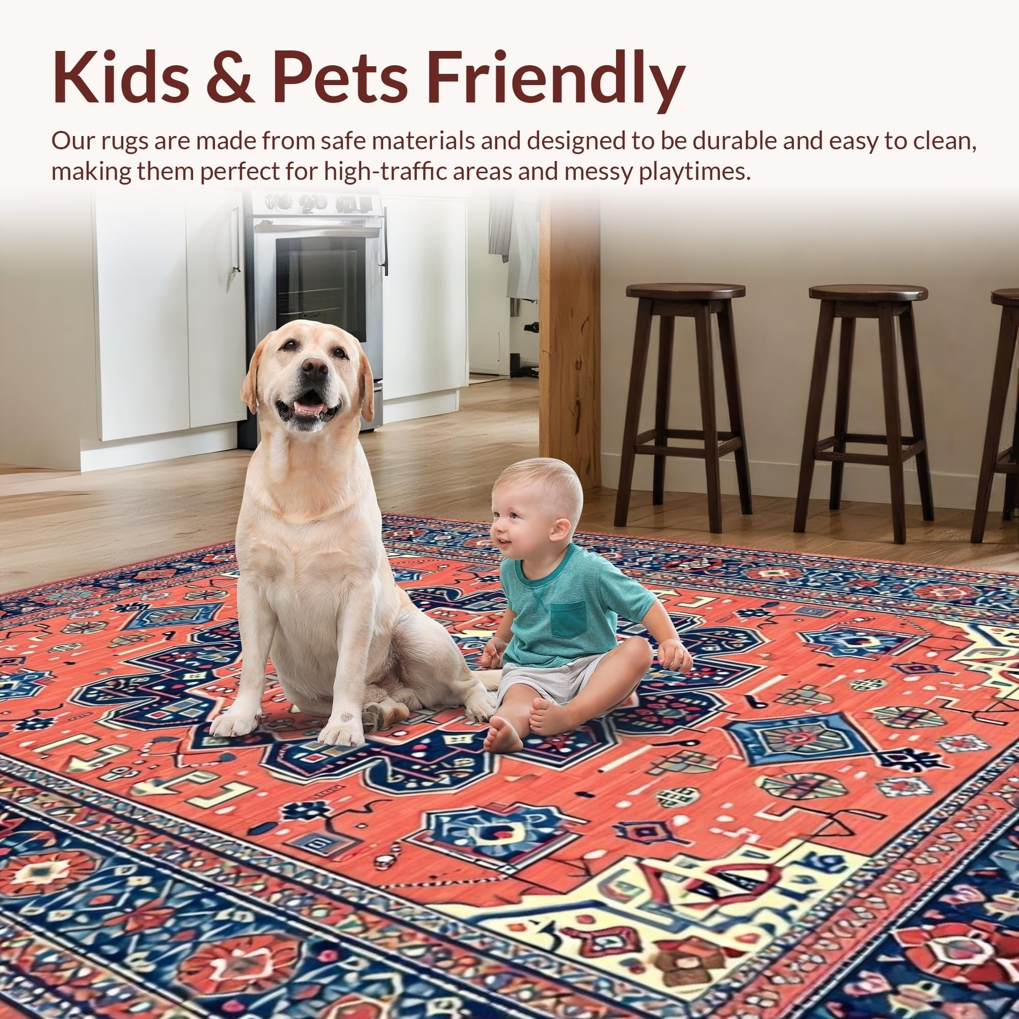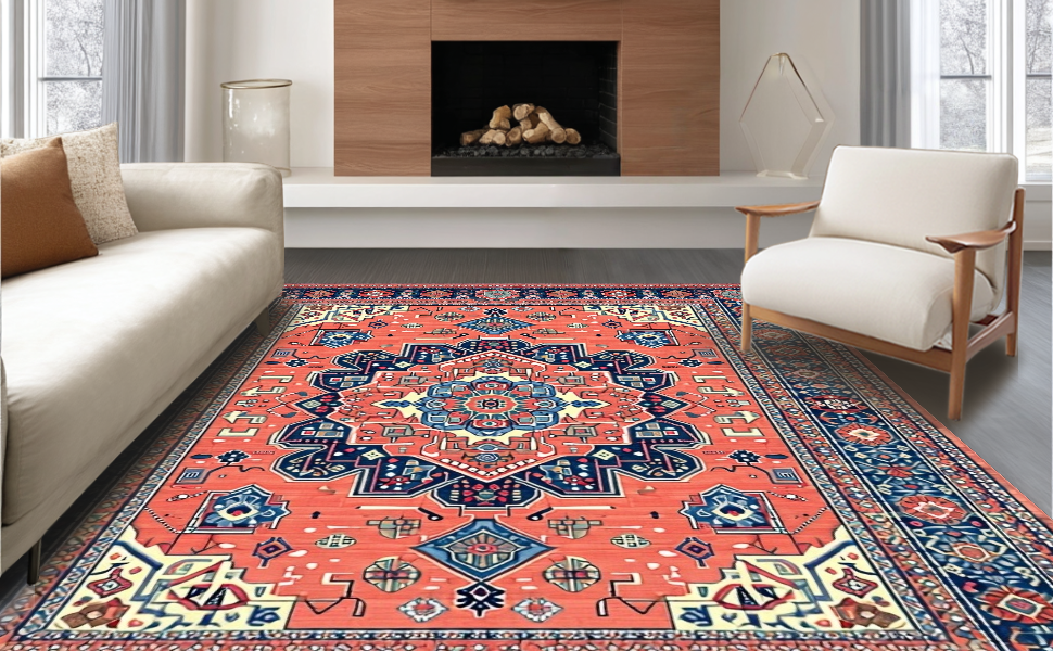 Ultra Soft Area Rug, Non Slip, Stain Resistant, Washable Area Rugs for Living Room, Bedroom, Cozy Vintage Ogee Design Vibe(Red) Overview: