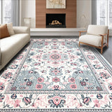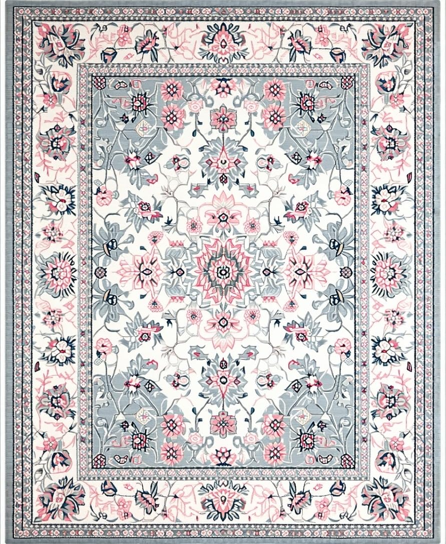 Ultra Soft Area Rug, Non Slip, Stain Resistant, Washable Area Rugs for Living Room, Bedroom, Cozy Vintage Symmetrical Visuals(White) Overview:
