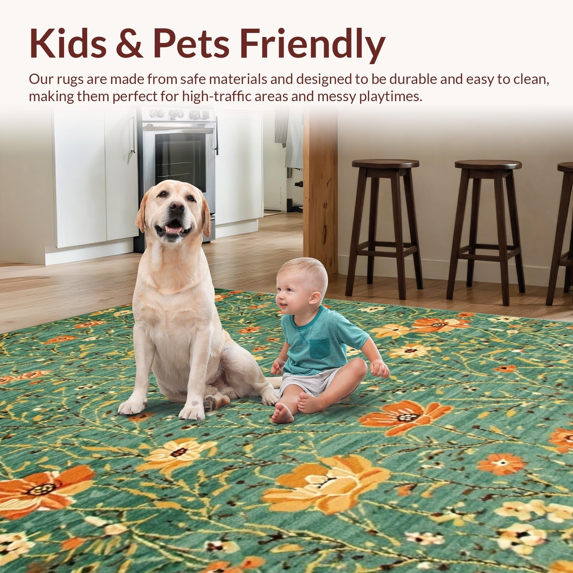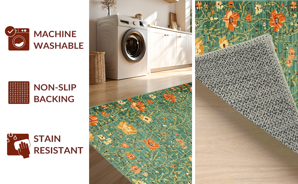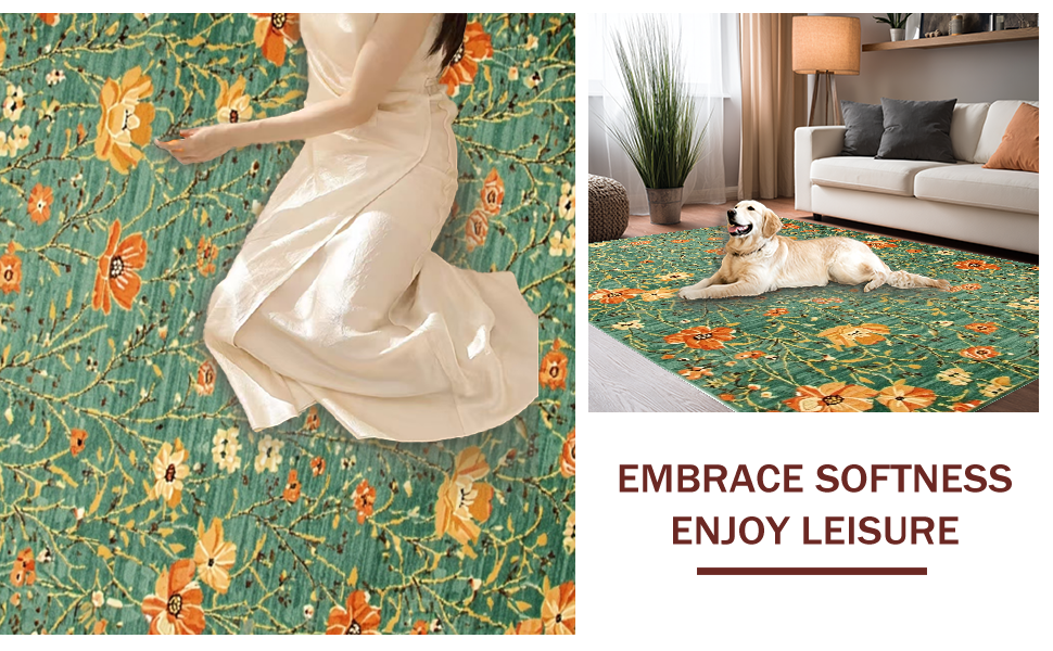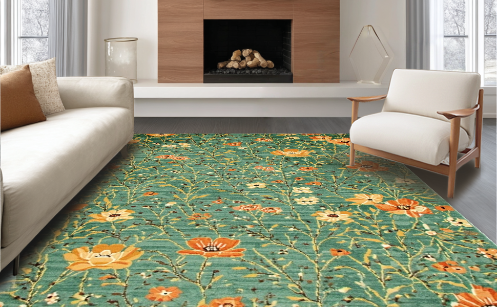 Ultra Soft Area Rug, Non Slip, Stain Resistant, Washable Area Rugs for Living Room, Bedroom, Cozy Warm Organic Design(Green) Overview: