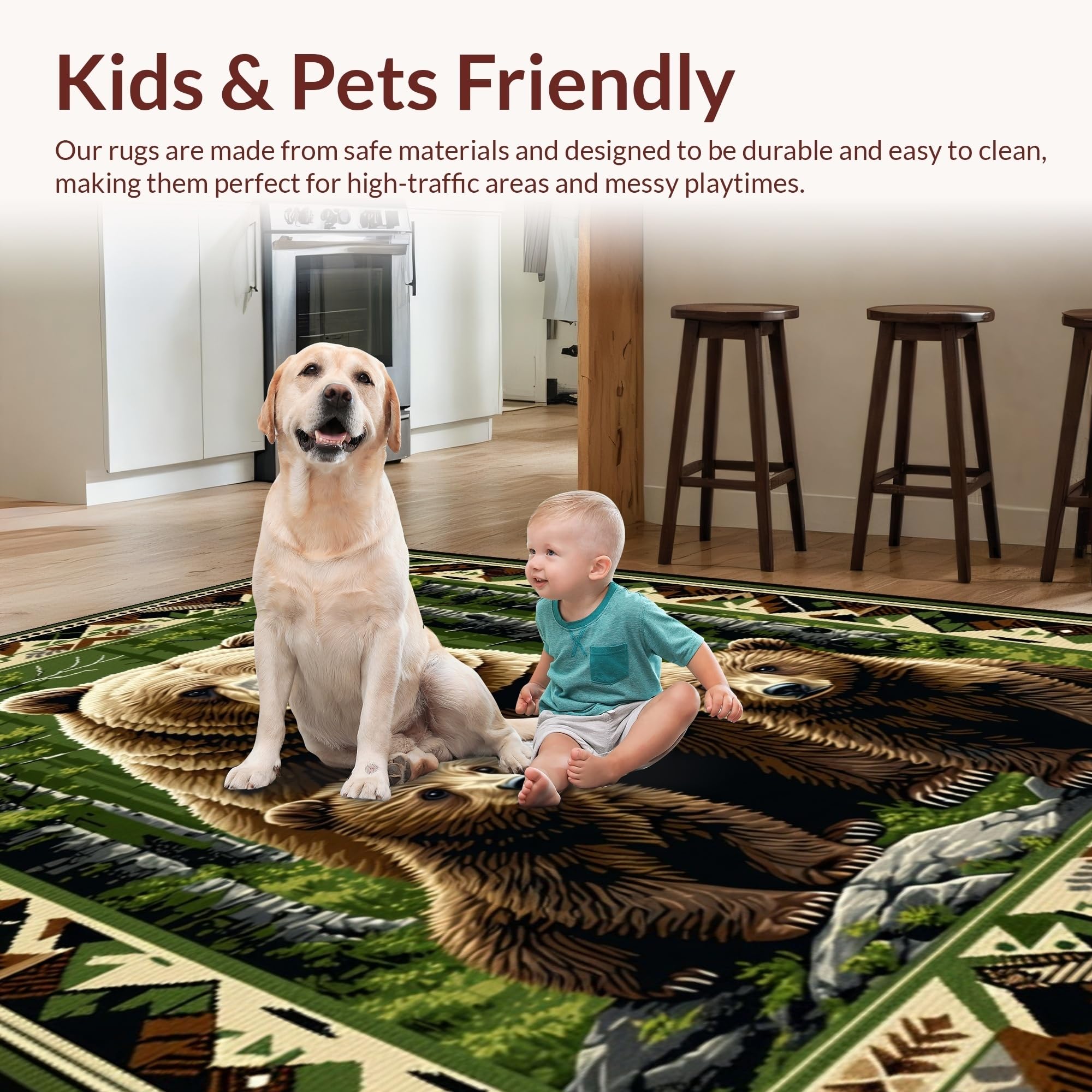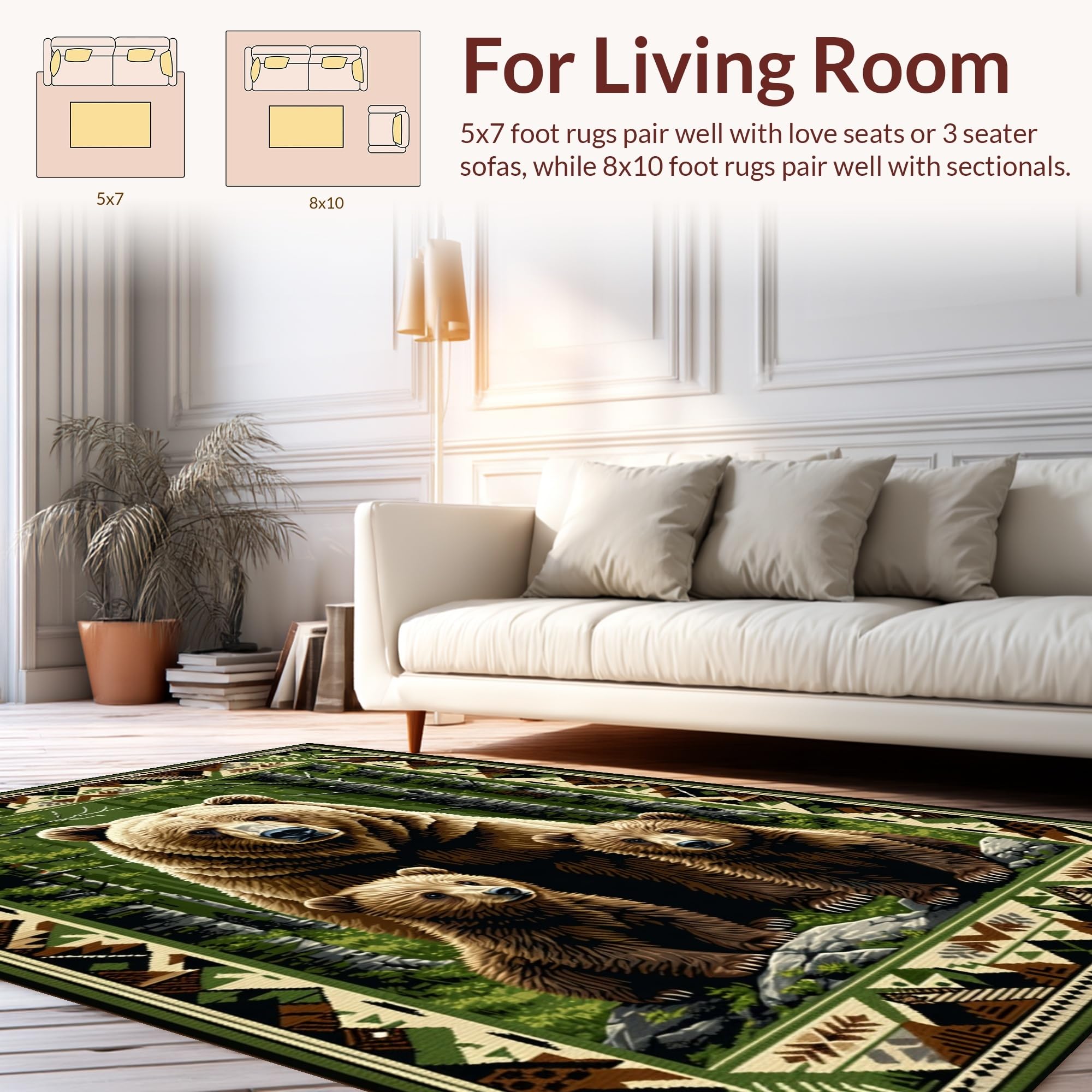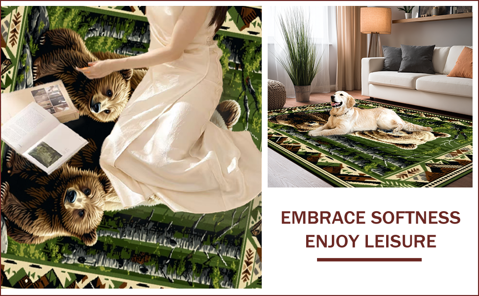 Ultra Soft Area Rug, Non Slip, Stain Resistant, Washable Area Rugs for Living Room, Bedroom, Cozy Winter Lodge Motif(Brown) Overview:
