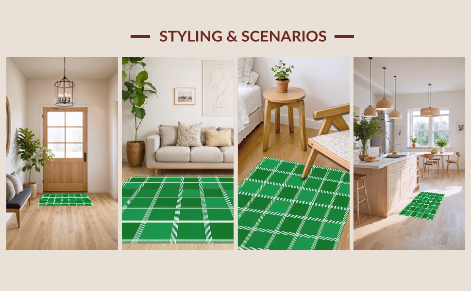 Ultra Soft Area Rug, Non Slip, Stain Resistant, Washable Area Rugs for Living Room, Bedroom, Cozy Winter-Themed Patterned Mat(Green) Overview: