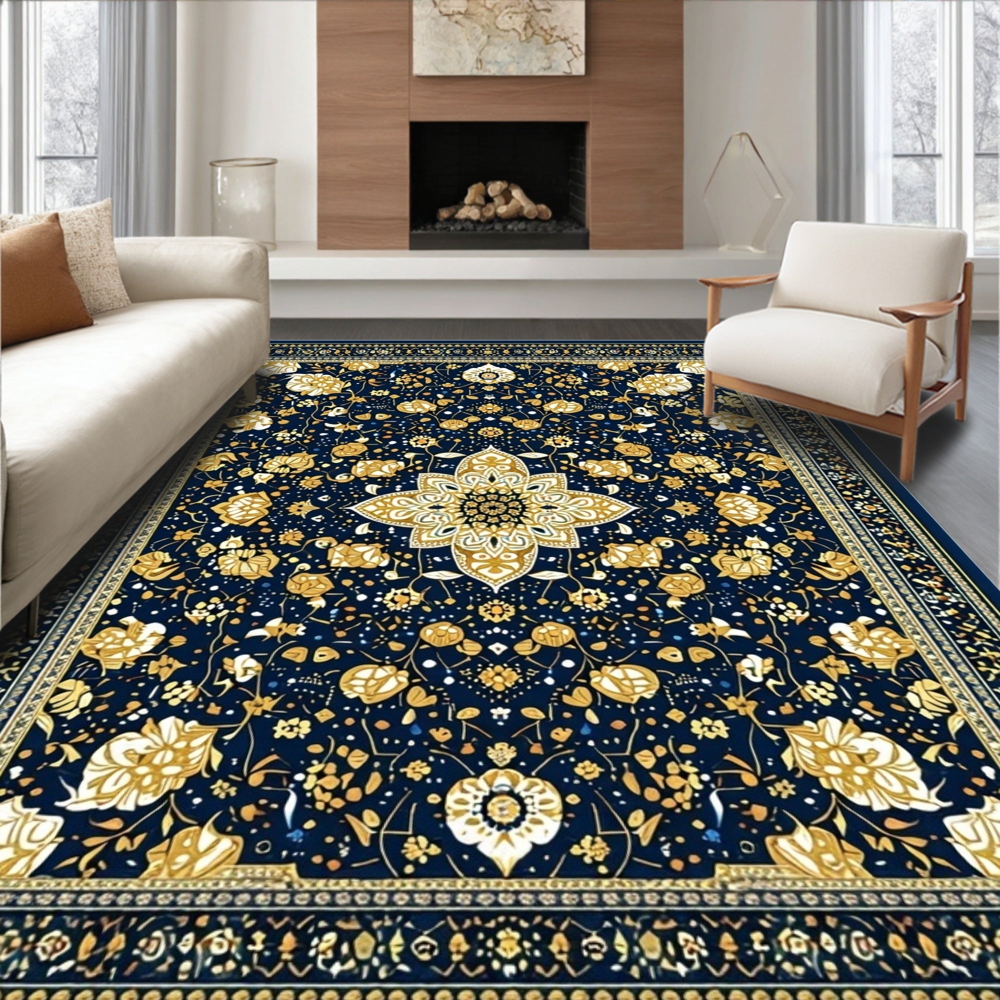 Ultra Soft Area Rug, Non Slip, Stain Resistant, Washable Area Rugs for Living Room, Bedroom, Cream and Beige Large(Blue) Overview: