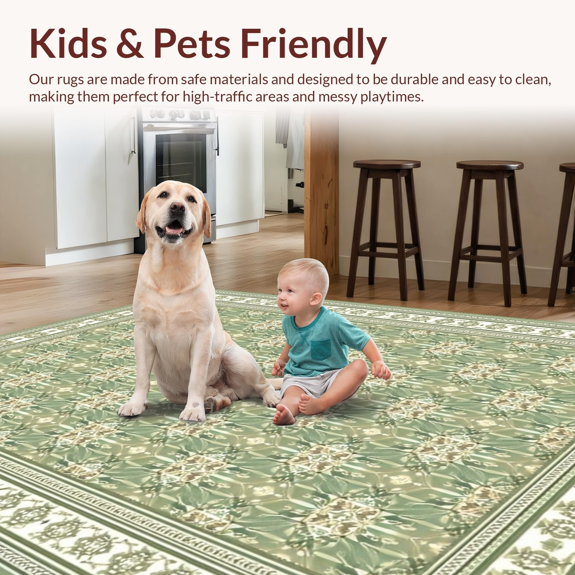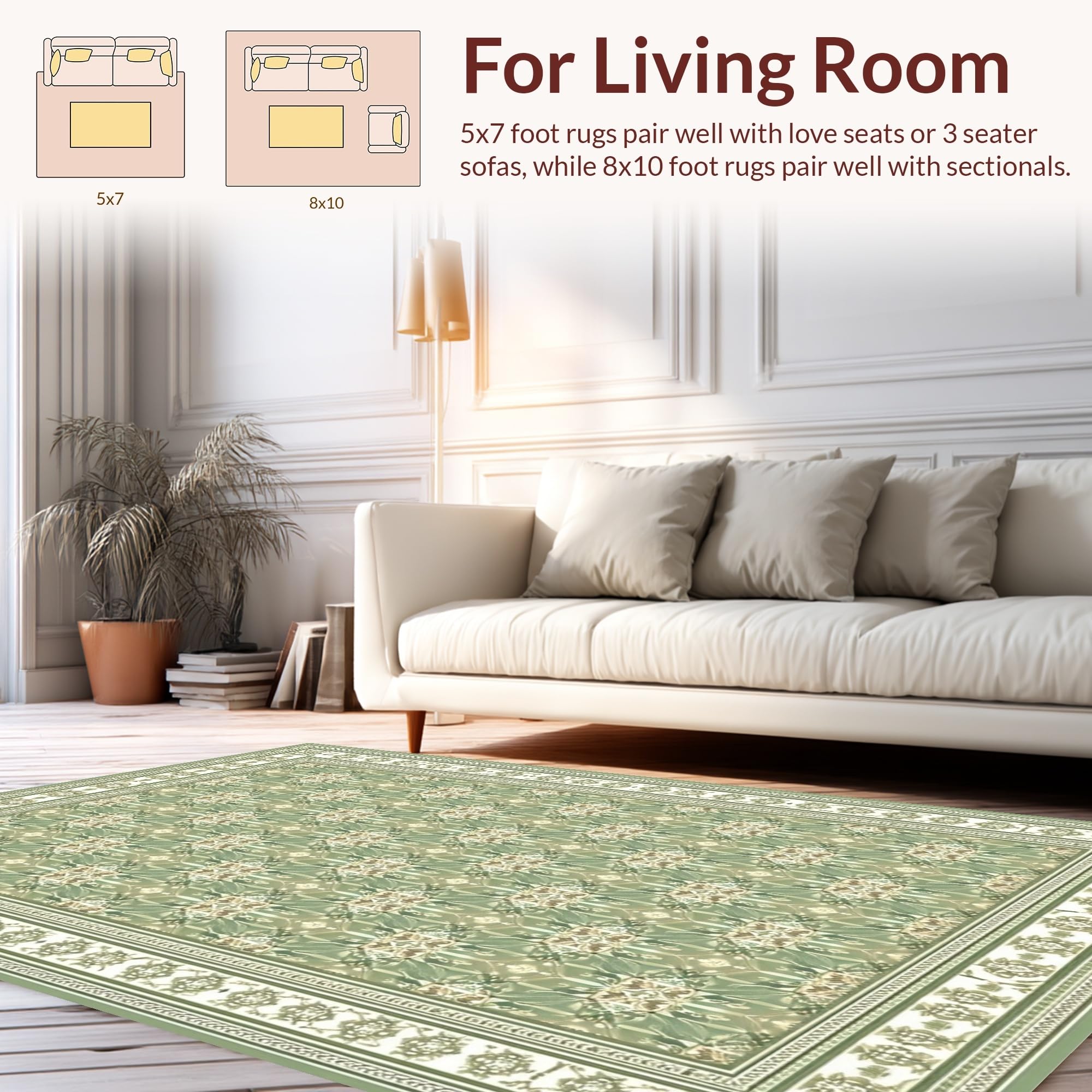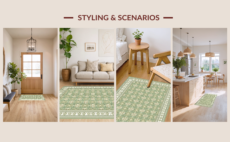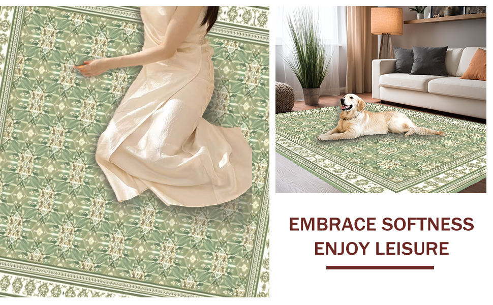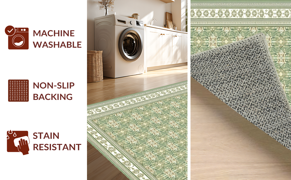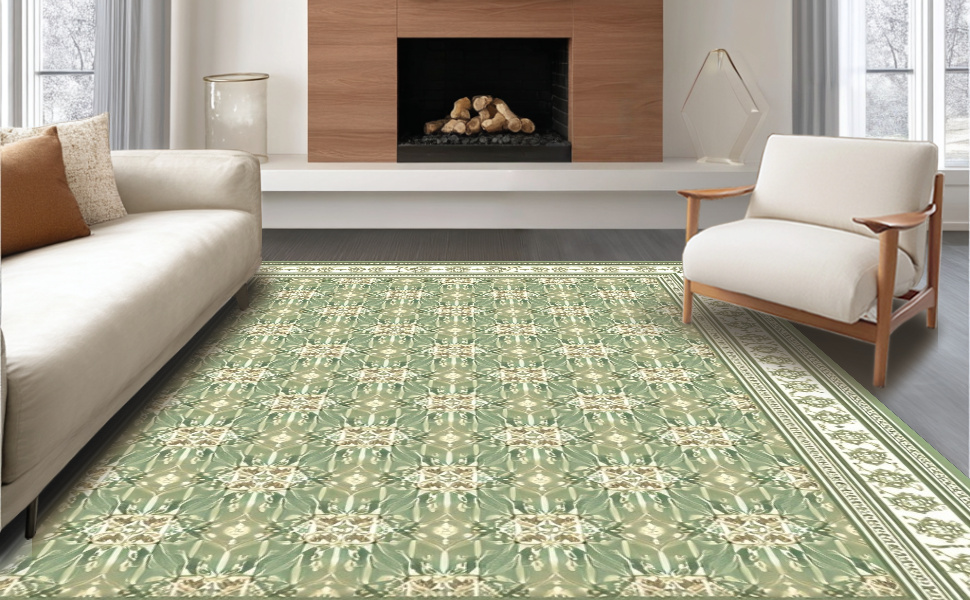 Ultra Soft Area Rug, Non Slip, Stain Resistant, Washable Area Rugs for Living Room, Bedroom, Cream Motif Vintage Inspired Aesthetic(Green) Overview: