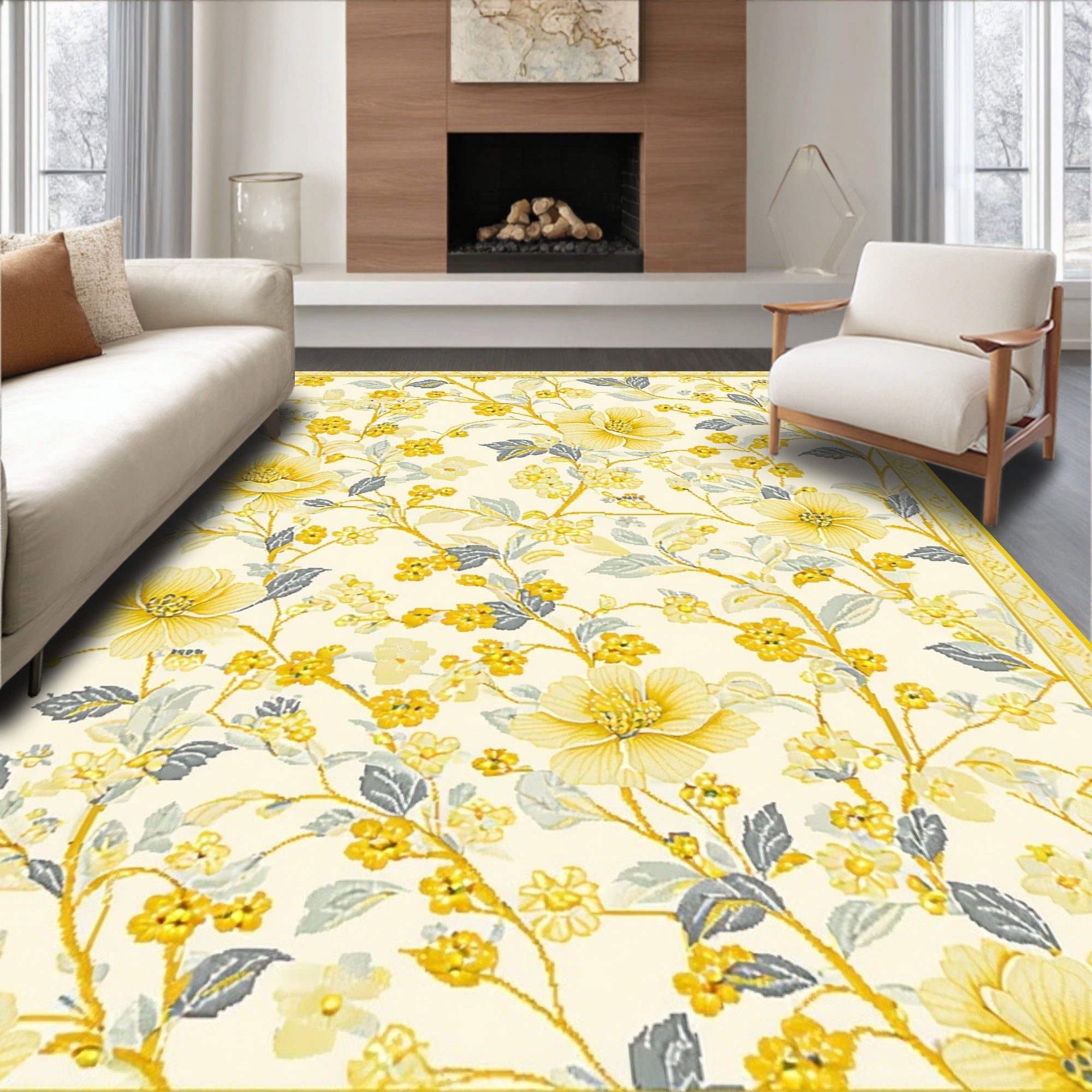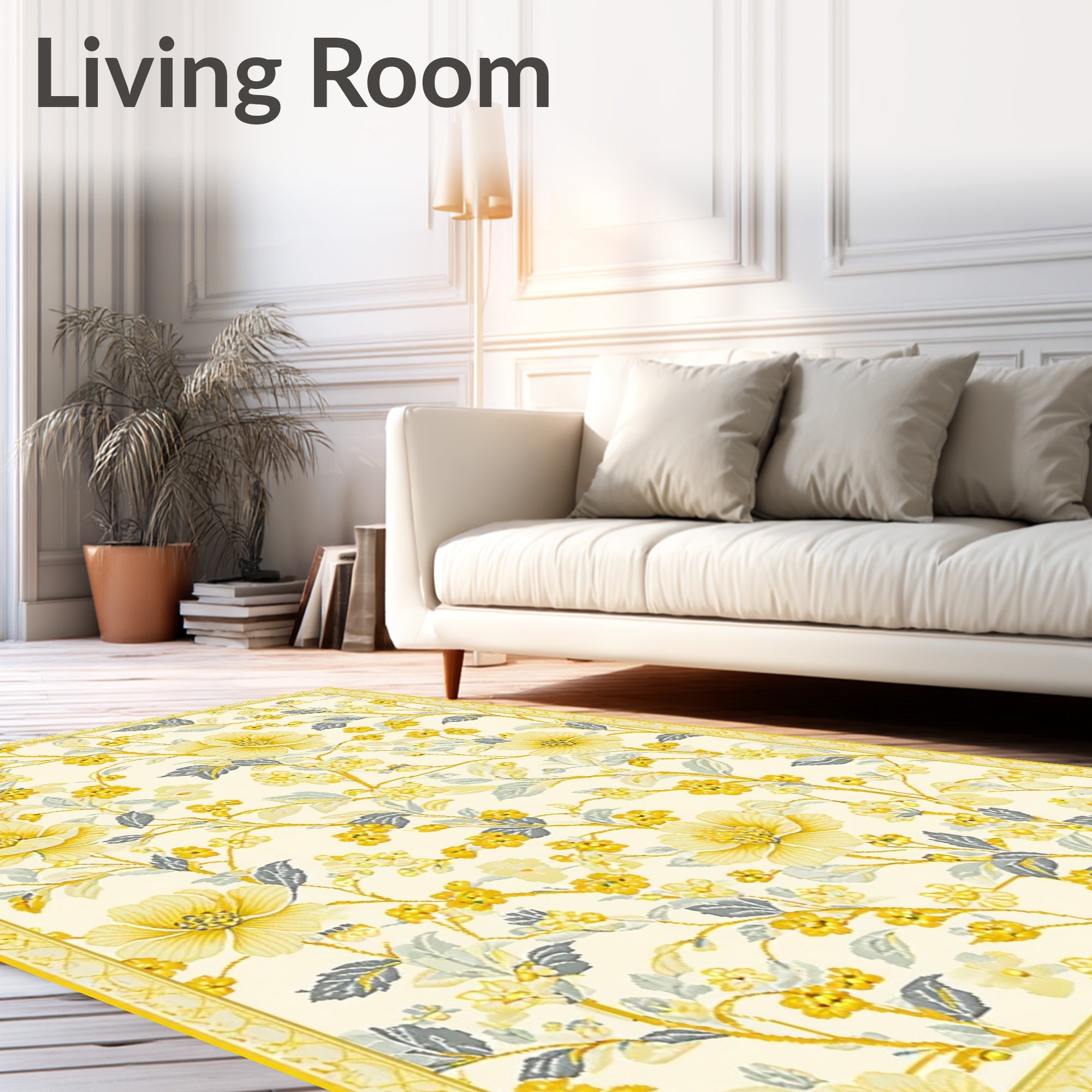 Ultra Soft Area Rug, Non Slip, Stain Resistant, Washable Area Rugs for Living Room, Bedroom, Cream Scallop Abstract Floral Area Whimsical Style(Yellow) Overview:
