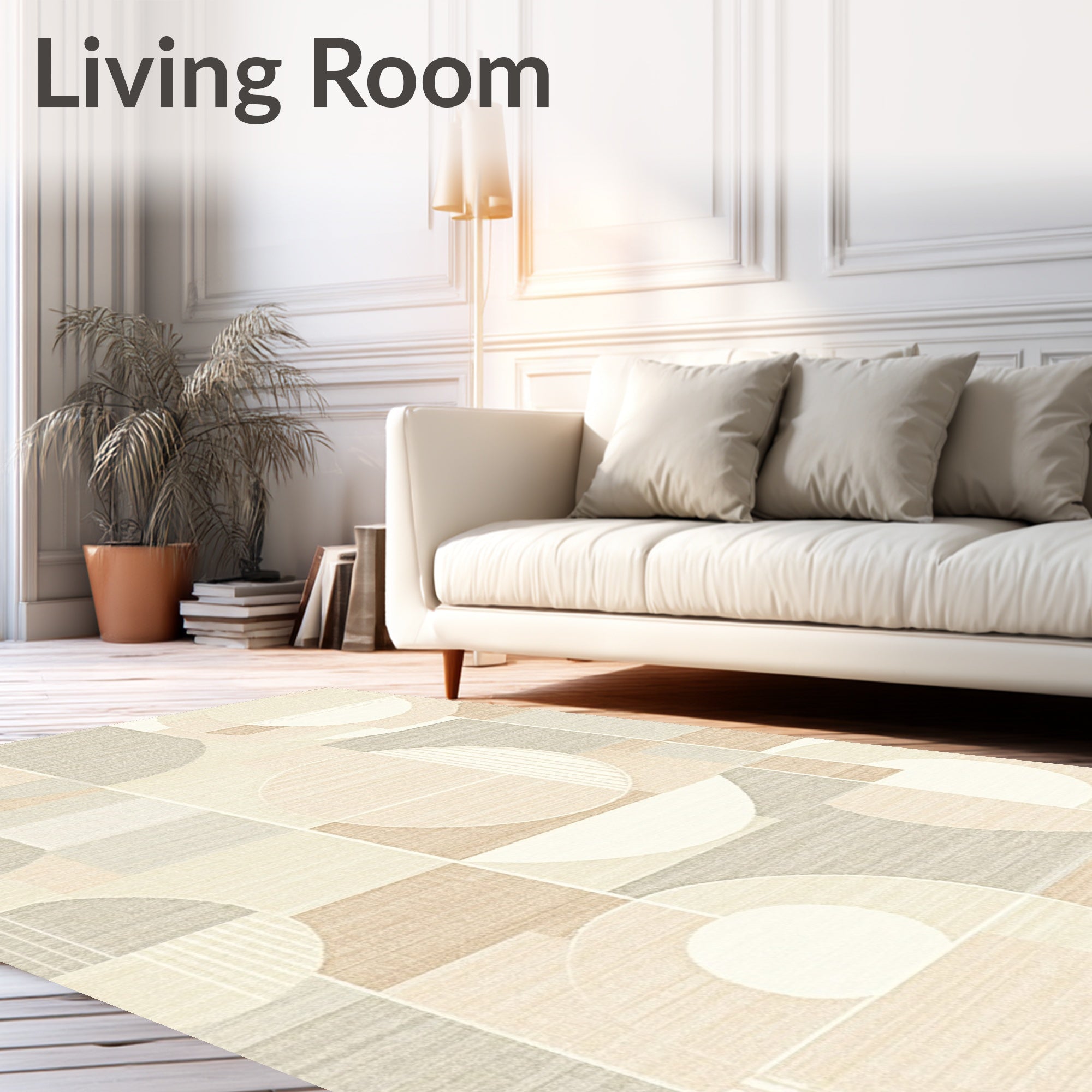 Ultra Soft Area Rug, Non Slip, Stain Resistant, Washable Area Rugs for Living Room, Bedroom, Creamy Beige Area Modern Circle Design for Cozy Ambiance(Beige) Overview:
