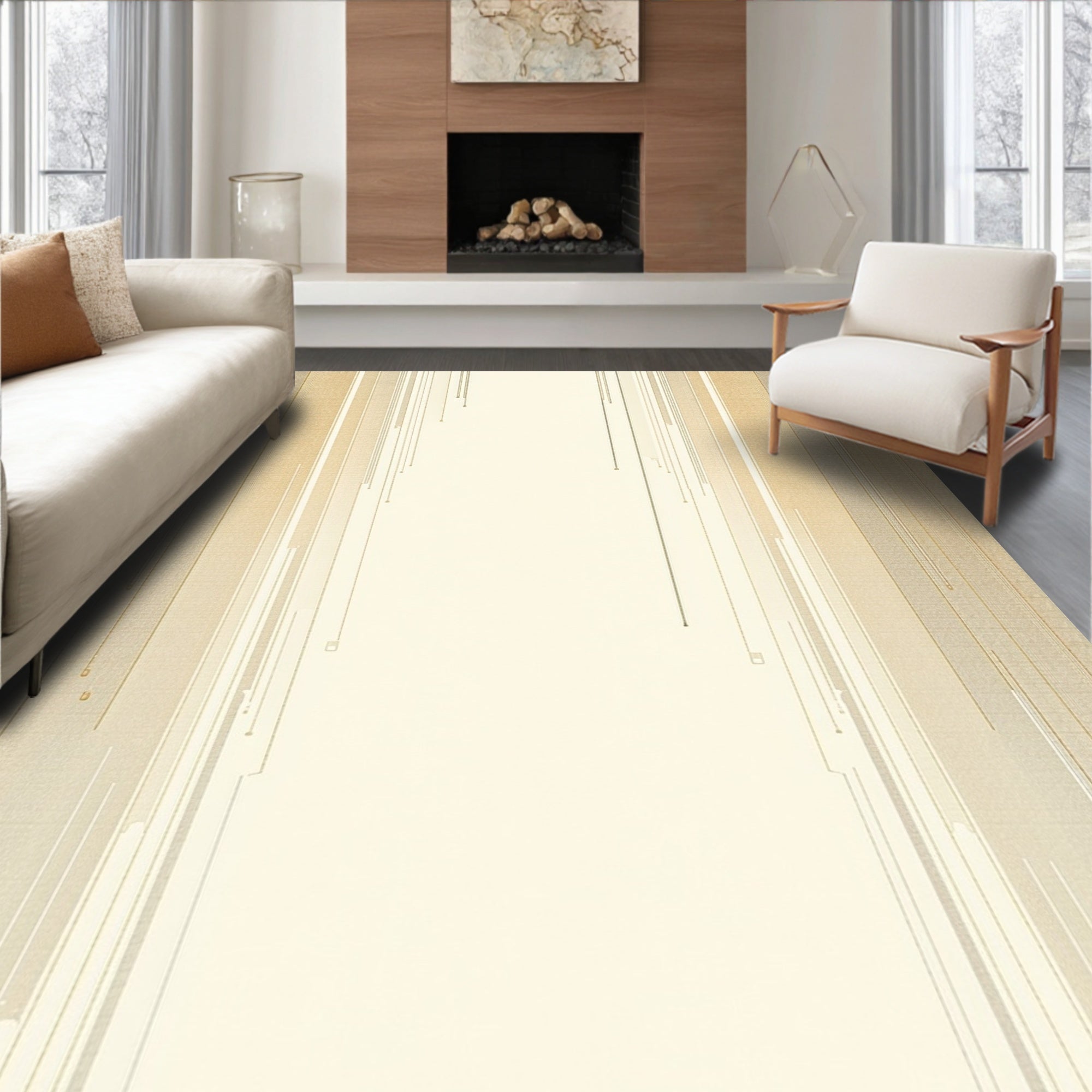 Creamy Cascade Beige Ombre Effect Accent Area(Beige)