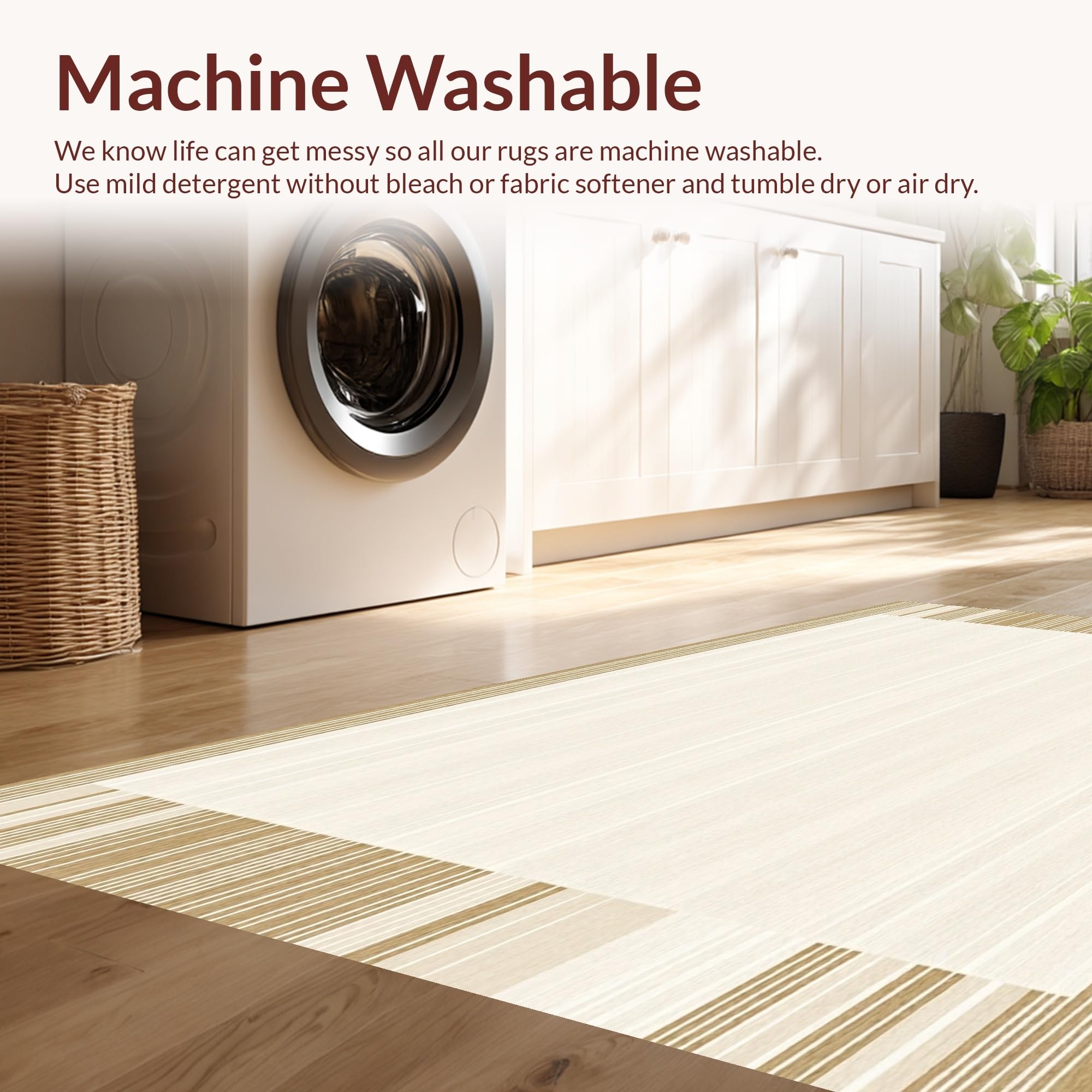 - Machine Washable: Our rugs can be easily thrown in the wash machine.