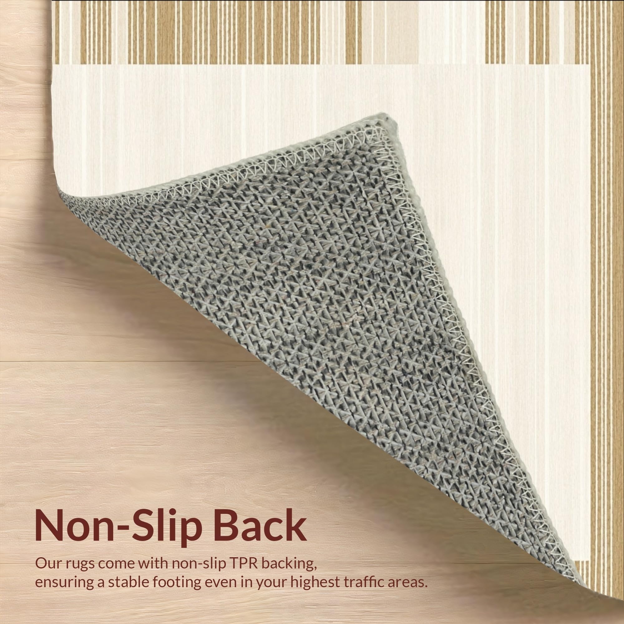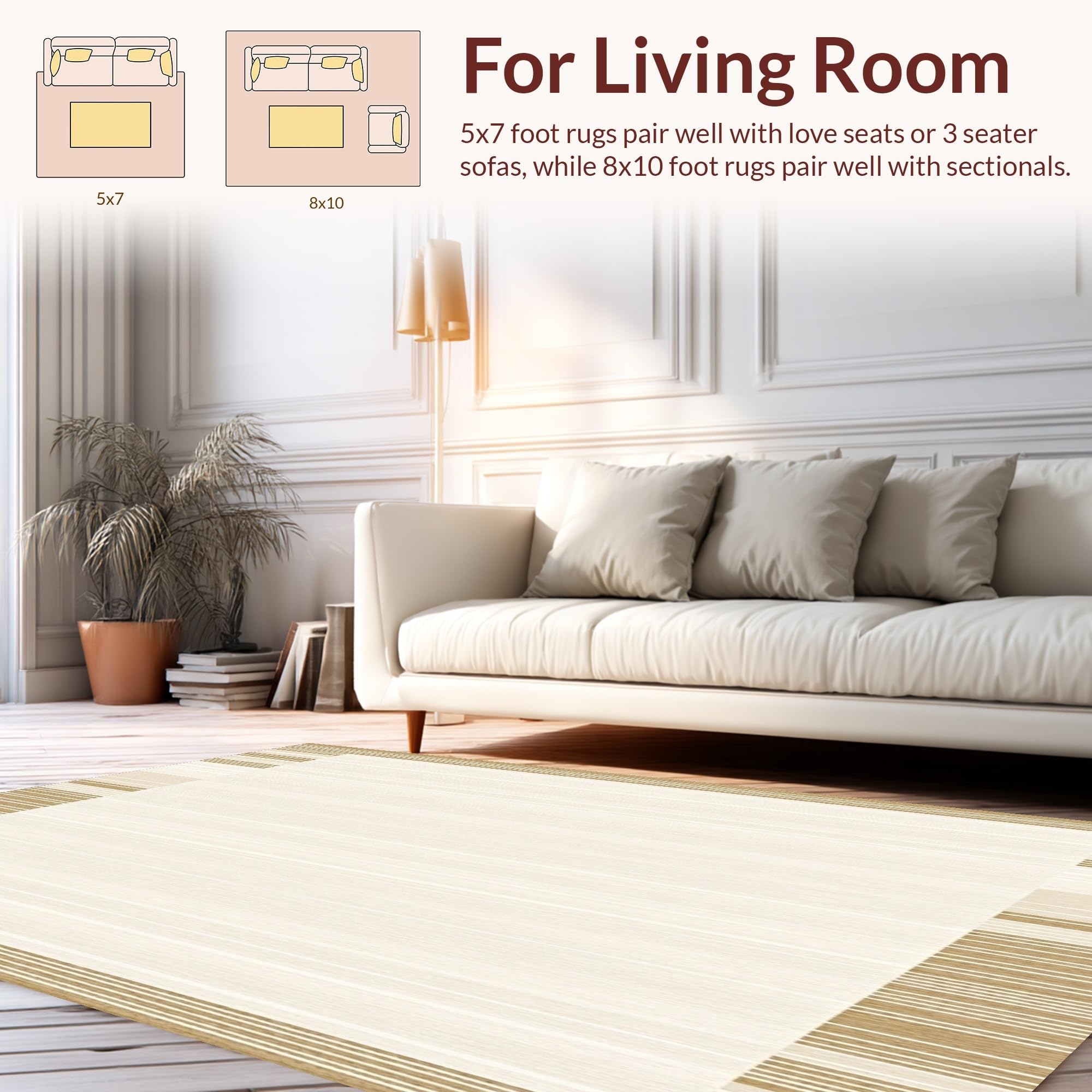 Ultra Soft Area Rug, Non Slip, Stain Resistant, Washable Area Rugs for Living Room, Bedroom, Creamy Tan with Subtle Linear Texture and Solid Warm Shade(Beige) Overview: