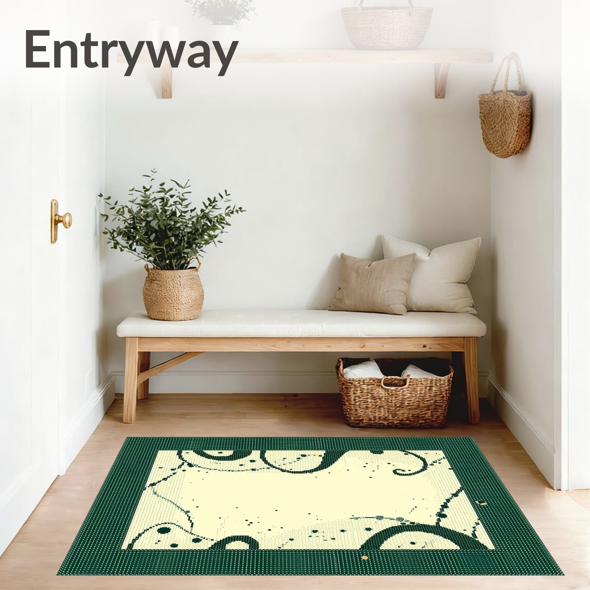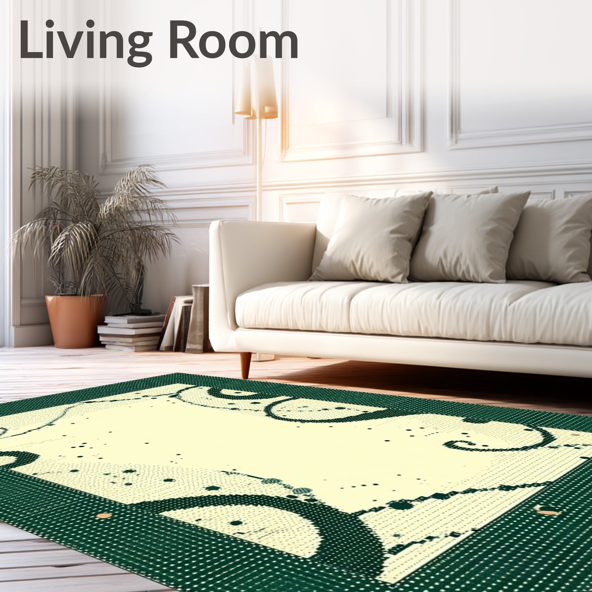 Ultra Soft Area Rug, Non Slip, Stain Resistant, Washable Area Rugs for Living Room, Bedroom, Creative Activity with Beige Foundation and Dynamic Green Swirl Accents(Beige) Overview: