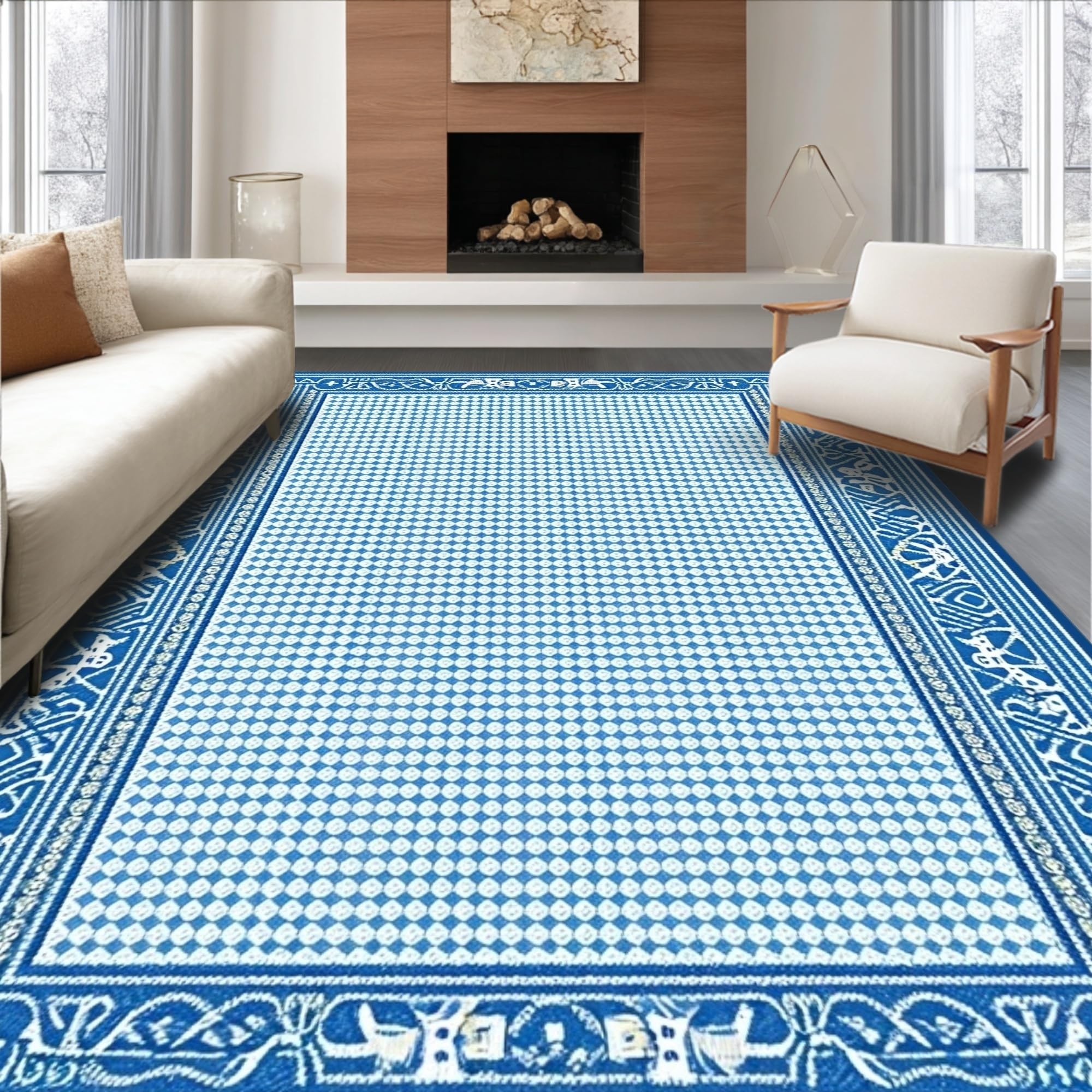 Ultra Soft Area Rug, Non Slip, Stain Resistant, Washable Area Rugs for Living Room, Bedroom, Creative Nursery Alphabet Motif(Blue) Overview: