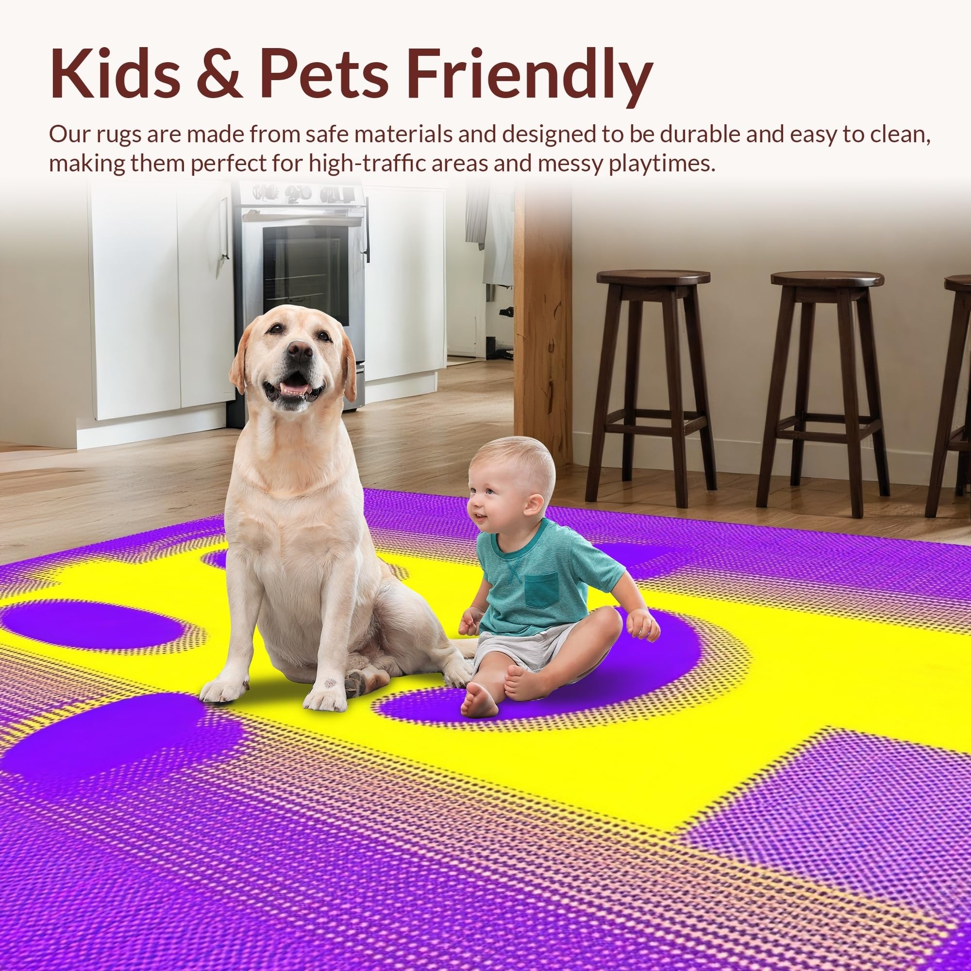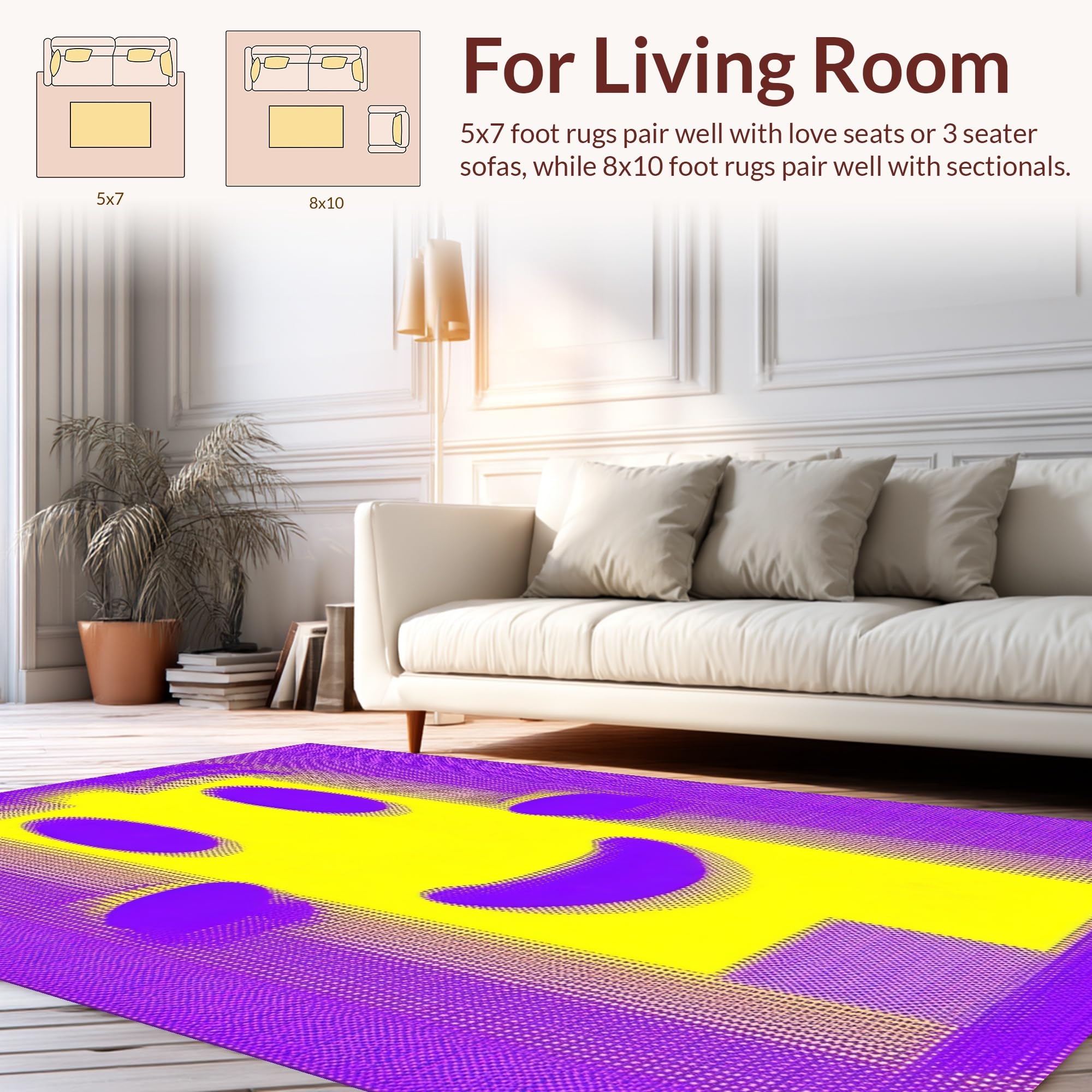 Ultra Soft Area Rug, Non Slip, Stain Resistant, Washable Area Rugs for Living Room, Bedroom, Creative Psychedelic Patterned Decor(Yellow) Overview: