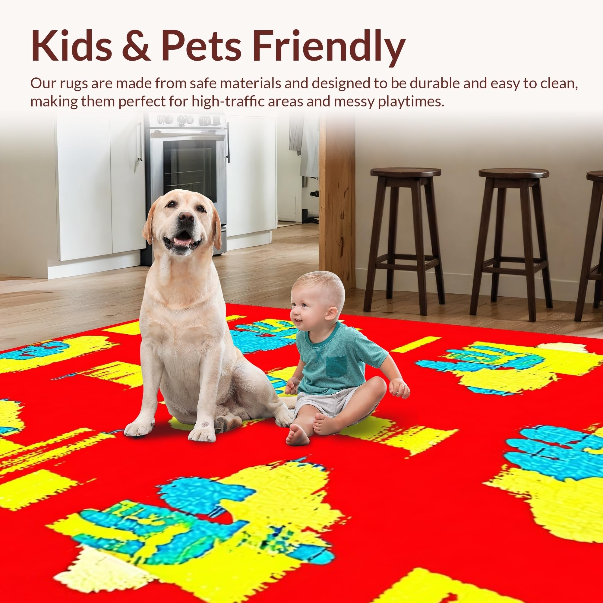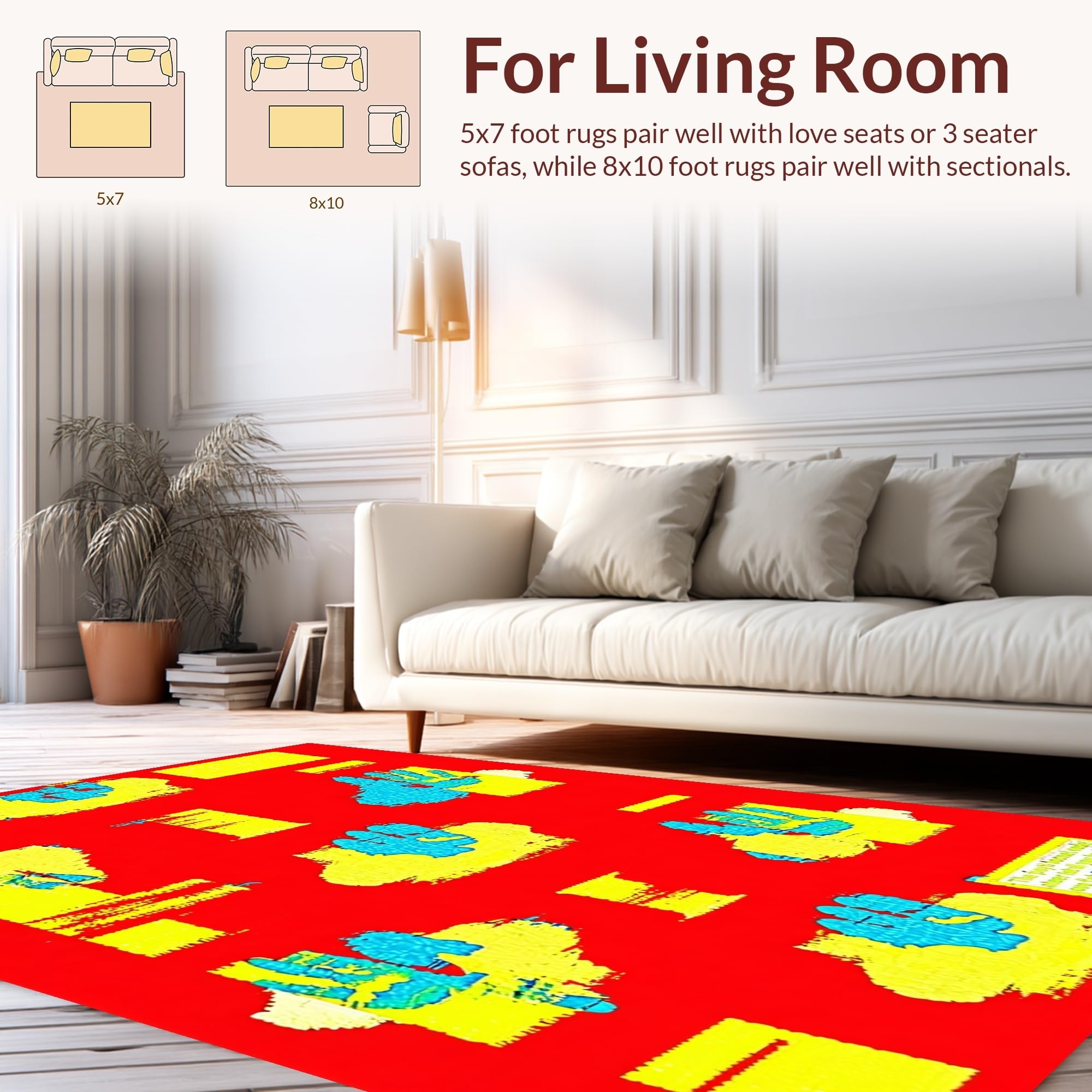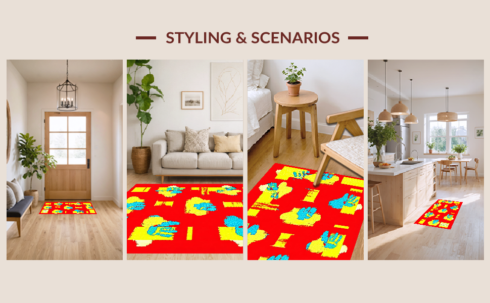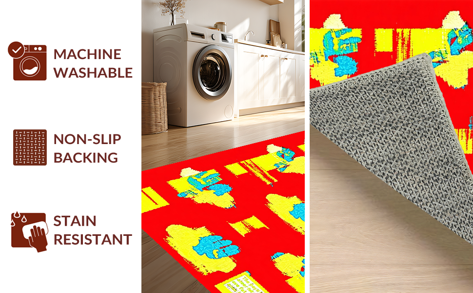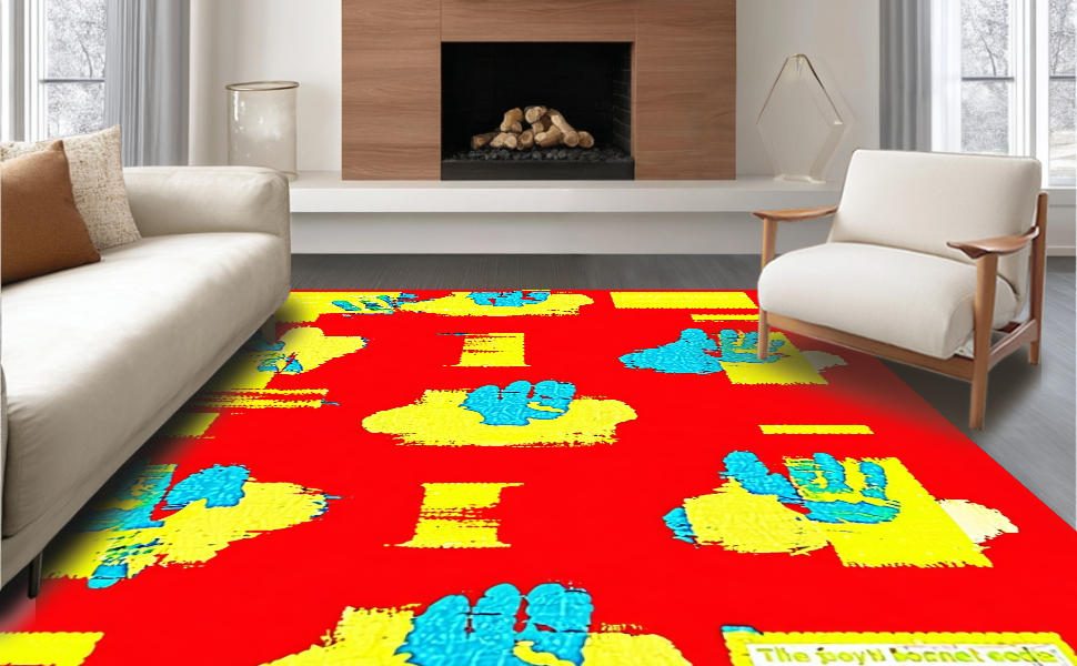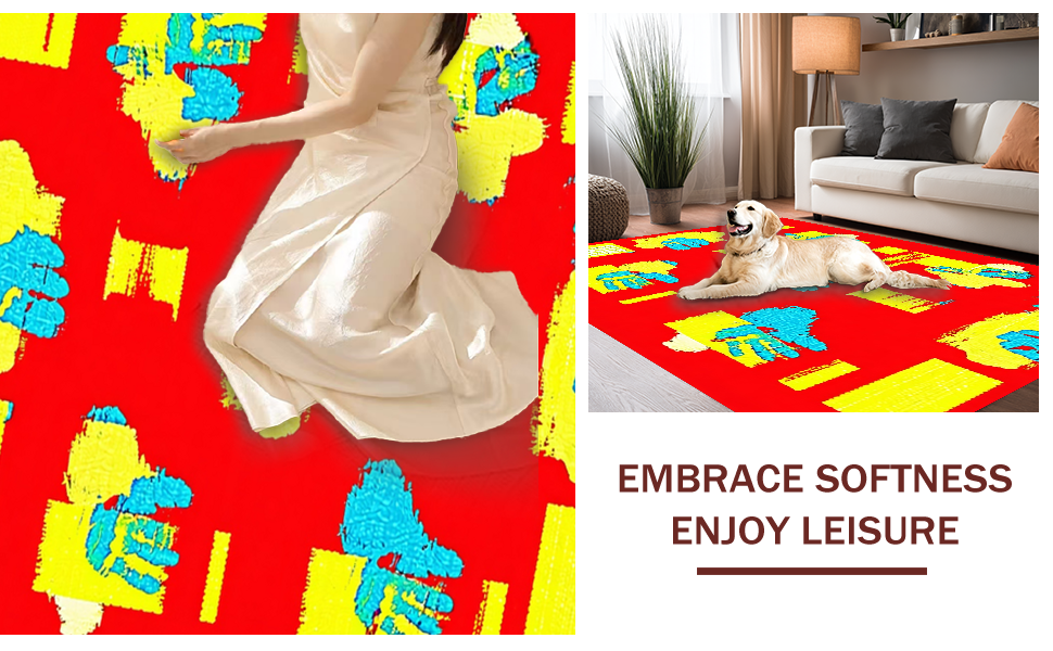 Ultra Soft Area Rug, Non Slip, Stain Resistant, Washable Area Rugs for Living Room, Bedroom, Creative Youthful Expression Motif(Red) Overview:
